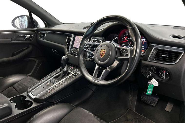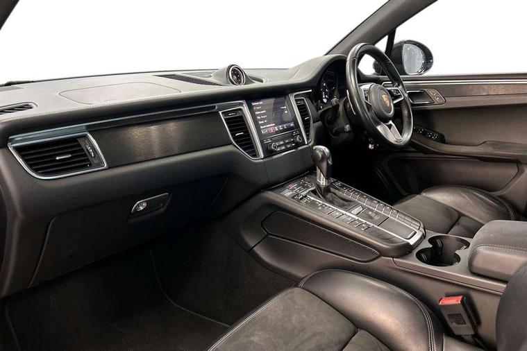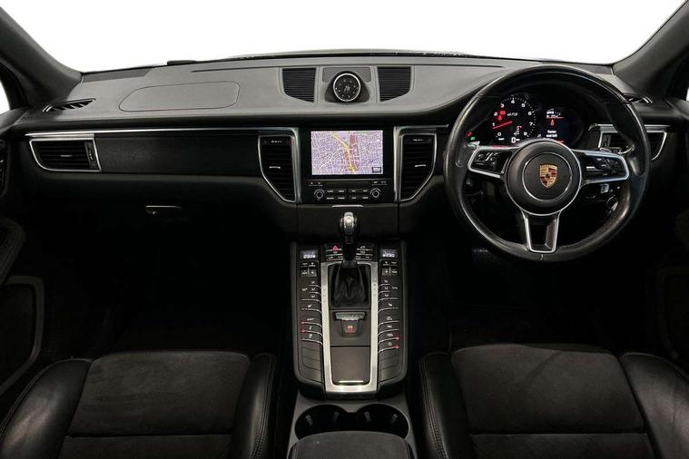 Brake pad wear sensors front and rear, External temperature gauge, Front/rear park distance control, Instrument cluster with high-resolution 4.8-inch TFT colour display, Mobile telephone preparation, Off-road button, On board computer, PCM navigation module, Porsche communications management, Porsche Connect Plus, Power tailgate, Service interval indicator, Sports button in centre console, 75 litre fuel tank, Porsche stability management (PSM), Connect Plus with Apple CarPlay, wireless internet access, Carfinder, Remote Vehicle Status and Remote Services, DAB Digital radio, USB interface in rear, 2 speed front wipers + intermittent wipe, Adaptive brake lights, Automatic headlights, Black side window trim, Colour coded bumpers, Electric front and rear windows + anti trap + one touch, Electric/heated/folding door mirrors, Headlamp cleaning system, Heat insulating laminated glass, Heated rear window with auto timer, Heated washer jets, Intermittent rear wash/wipe, LED daytime running lights, LED fog lights, Painted side air intakes, Rain sensor, Tinted LED tail lights, Towbar preparation, Trailer Stability Programme, Welcome home function, 3 zone climate control, 4 12v Sockets, 4 way adjustable front head restraints, 40:20:40 split folding rear bench seat, Active carbon filter, Air quality sensor, Automatic air recirculate, Clothes hooks on front seat backrests, Folding rear centre armrest, Front and rear cupholders x 2, Front armrest, Front reading lights, Ignition Lock illumination, Illuminated air conditioned glovebox, Illuminated centre console storage, Illumination of luggage compartment, Isofix system on outer rear seats, Pollen filter, Rear headrests, Rear reading lights, Retractable Loadspace Cover, Retractable luggage net, Steering wheel gearshift paddles, Storage bins on all doors, Storage compartments in cargo area side walls, Sport design pack with side skirts - Macan, 3 point automatic seatbelts, 3 point rear seatbelts, ABS+ABD, ASR, Curtain airbags, Electronic parking brake, Front seat belts warning, Front seatbelt pretensioners + load limiters, Front side airbags, Full size driver and passenger airbags, Height adjustable front seatbelts, Hill hold control, Manual passenger airbag deactivation function, Motor Slip Regulation (MSR) - Engine Drag Torque Control, PTM (Porsche Traction Management), Red painted brake calipers, Two tone horn, Tyre pressure monitoring system, Alarm system, Electronic transponder immobiliser, Remote central locking, Trim strip in silver, Wheel centres with full colour Porsche crest,