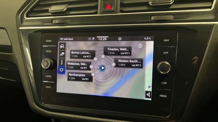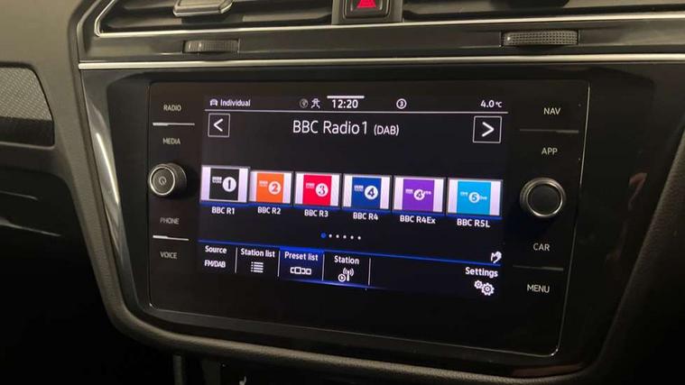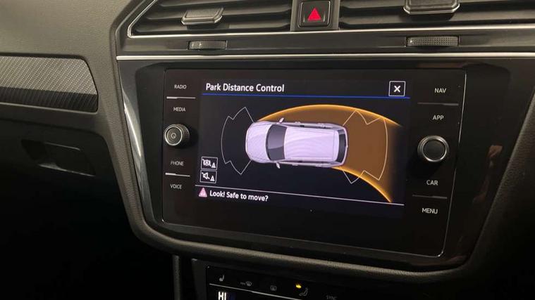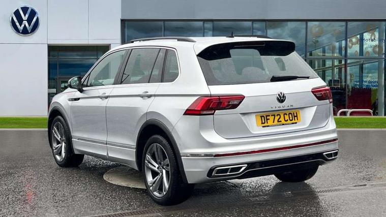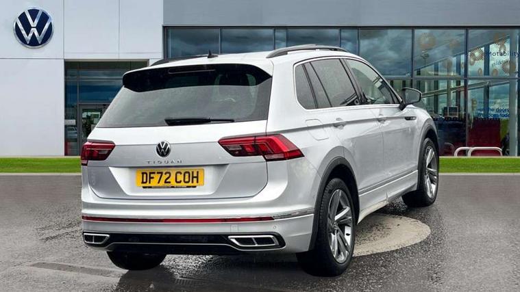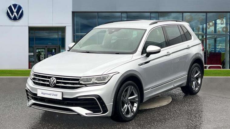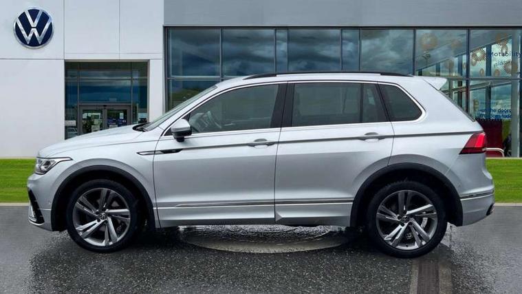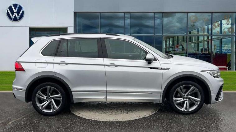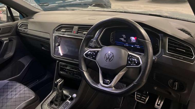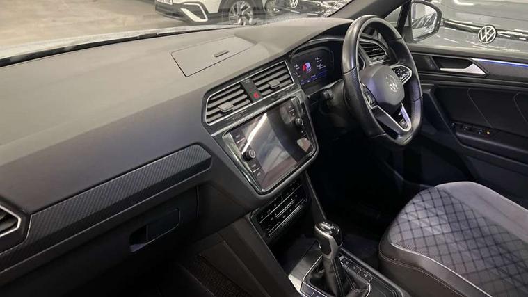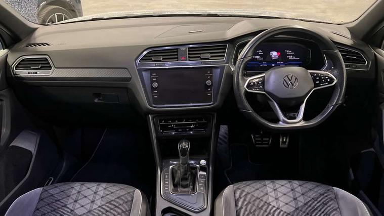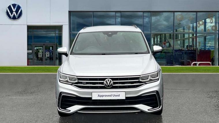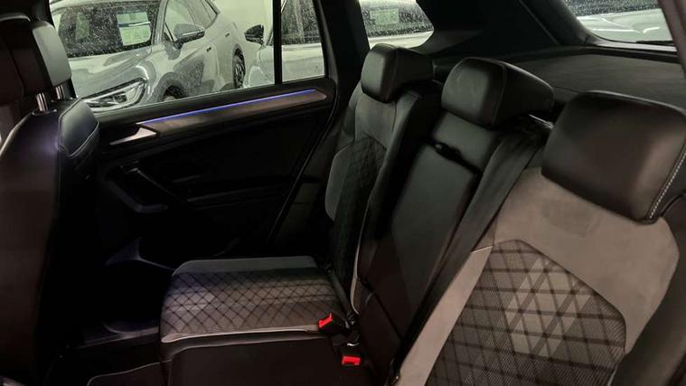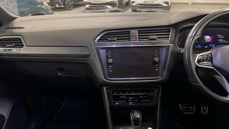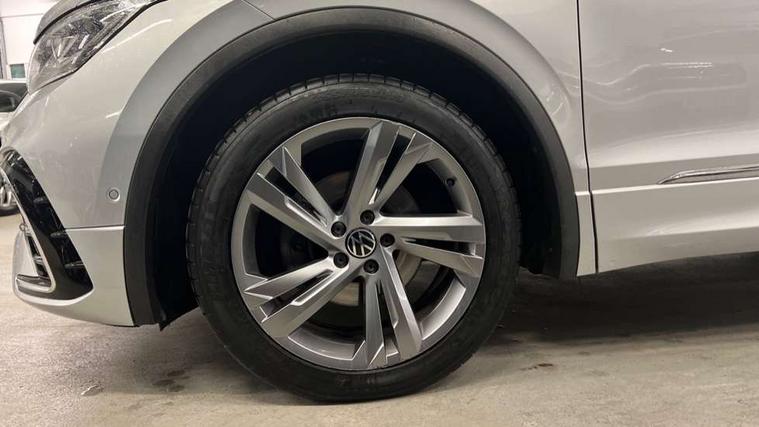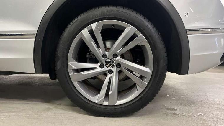 Adaptive cruise control ACC stop and go including speed limiter, App-Connect incl. App-Connect Wireless for Apple CarPlay and Android Auto, Bluetooth phone integration system, Comfort drive travel assist, Digital cockpit pro, Driver alert system, Driver profile selection, Dynamic road sign display, eCall emergency call system, Electromechanical speed sensitive power steering, Emergency assist, Front and rear parking distance sensors, Instrument cluster mph speedometer Great Britain, Lane keeping system Lane Assist, Lights on warning, Multifunction front facing camera, Outside temperature display, Premium multifunction display with multi colour display, Preparation for subsequent activation Navigation feature Discover Media includes Streaming and Internet, Remote control boot opening, Rev counter, Service interval indicator, Speed limit display, Start/stop system with regenerative braking, Tailgate/trunk lid unlocking from outside, Trip computer, Warning sound and light for doors and tailgate open, Battery regeneration during braking, Sports suspension, 8 Speakers, Digital radio reception DAB+, Diversity antenna for FM reception, Radio, Auto dimming interior rear view mirror, Automatic headlight control system, Body colored bumpers in R-Line style, Body colored exterior mirror housings, Body colour door handles, Chrome moldings on the side windows, Coming/leaving home lighting function, Dynamic headlight range control, Front and rear electric windows, Heated rear window, High level 3rd brake light, Laminated safety glass windshield, heat and sound insulating, LED headlamps with LED separate daytime running light and dynamic cornering light, LED rear combination lamps, LED rear number plate lights, License plate carrier in front and rear, Poor weather light and cornering light, Power adjustable, folding and heated door mirrors with surround lighting, front passenger exterior mirror lowering function, Privacy glass for rear side windows and rear window, R Line body kit, R Line side sills, Rain sensor, Rear exhaust tailpipe, Rear fog lamp, Rear side wing doors, Rear spoiler in R style, Rear windscreen washer and wiper with interval delay, Side and rear windows in heat insulating glass, Trailer Stability Programme, Unique R Line badging, Windscreen wipers/ intermittent wipe + 4 position delay, 12V outlet in center console rear and in luggage compartment, 12V outlet in front and tray, 2 LED front reading lights, 2 LED rear reading lights, 3 bench rear seats in 2nd row, 3 rear headrests, Air Care Climatronic 3 zone automatic climate control with enhanced air filter and controls in the rear, Art Velours greyson sports cloth upholstery, Backrest release for left front seat, Black headlining, Brushed stainless steel pedals and footrest, Carpet mats in front and rear with decorative stitching in Gray, Climate control unit rear with touch function, Door and side trim panel in foam film, insert in leatherette, Driver + front passenger lumbar support, Front footwell illumination, Front scuff plates in aluminum with R-Line logo, Front seats head restraints (x-adjustment), Height adjustable front seats, Height/reach adjust steering wheel, Isofix Preparation 2 Rear child seats, Leather gear knob, Rear bench seat asymetrically split folding, longitudinally movable and folding with load-through hatch and center armrest, Remote unlocking for rear seat backrest, Single front passenger seat, Sun visors with illuminated vanity mirrors, Top front comfort seats, Winter pack - Tiguan, 3 point seat belt for centre rear seats, 3 point seat belts with seat belt pretensioners for the outer rear seats, Curtain airbags for front and rear passengers, Driver/Front Passenger airbags, Drivers knee airbag, Electronic parking brake with auto hold, Electronic Stability Control with driver steering recommendation, ABS, ASR, EDL, EDTC and trailer stabilization, Front assist with autonomous emergency braking (for Adaptive Cruise Control ACC up to 130 mph), Front disc brakes, Front passenger airbag deactivation, Front side airbags, Height adjustable front 3 point seatbelts + pretensioners, Manual child proof rear door locks, Pedestrian monitoring system, Proactive passenger protection system in combination with front assist, Rear disc brakes, Two tone horn, Tyre pressure loss indicator, Warning sound and light for front seat belts if unfastened, Warning triangle, Anti theft alarm system with interior monitoring, backup horn and towing protection, Anti theft wheel bolts, Electronic engine immobiliser, Keyless locking and starting system keyless access with safelock, Chrome elements on the mirror switch power window switches and door pulls, Decorative inserts Carbon Gray for dashboard and front door trim panels, Interior door handle in matte chrome, 19" Valencia alloy wheels with AirStop tyres, Tool kit, Tyre mobility kit Includes 12V compressor and tyre sealant,