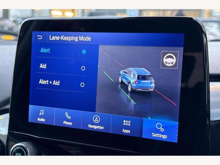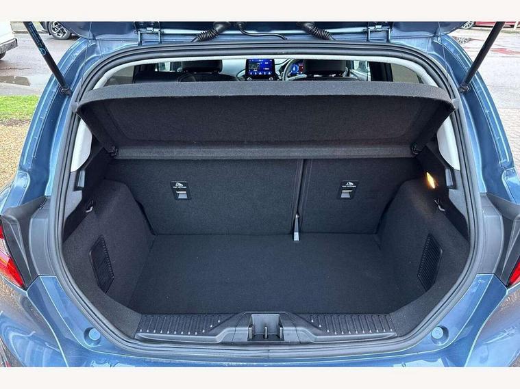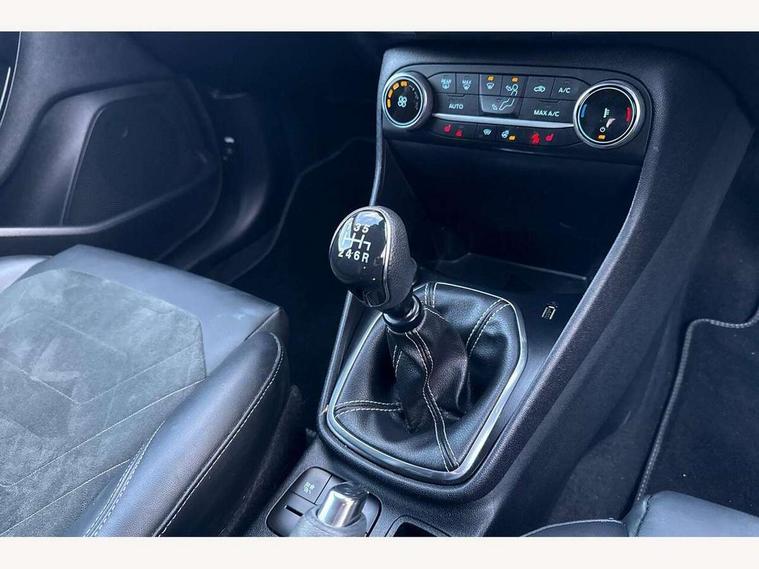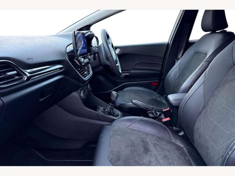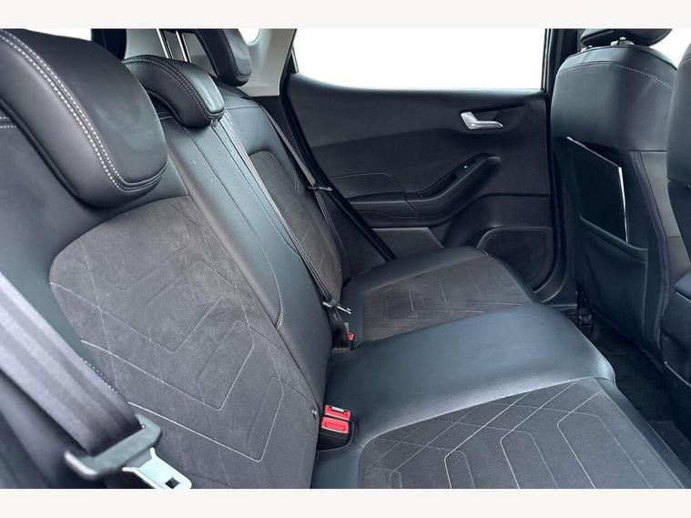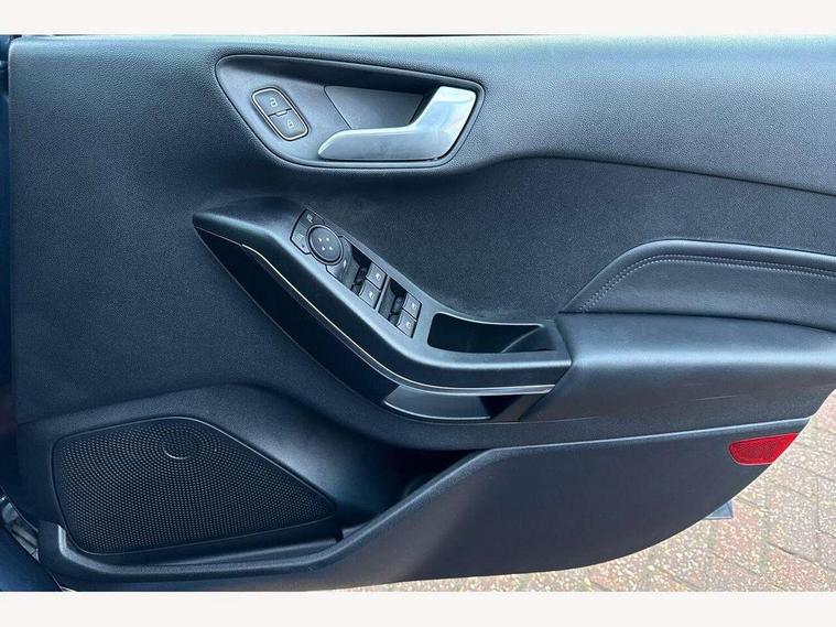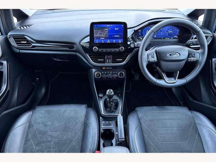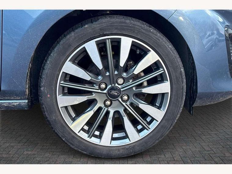 4.2" TFT instrument cluster screen, Bluetooth system, Electric power steering, Ford easy fuel, Rear parking distance sensors, Selectable drive modes (Normal, Sport, Track), Traffic sign recognition, Trip computer, 2 USB ports, Auxiliary input socket, B&O Premium audio system with 8" touchscreen, 10 speakers, 360 degree sound system, Ford SYNC 3 navigation system and Ford pass connect, DAB Digital radio, Steering wheel mounted controls, Auto high beam, Body colour bumpers, Body colour door handles, Body colour rear spoiler, Body coloured electrically operated and heated door mirrors with side indicators, Chrome beltline trim, Chrome front grille, Chrome lower window surround, Cornering front fog lights, Electric front windows/one touch facility, Electric rear windows, LED Night signature to rear lights, Power foldable door mirrors with puddle lights, Quickclear heated windscreen, Rain sensing wipers and auto dimming rear view mirror, Rear privacy glass, Rear wiper, 3 spoke leather trimmed steering wheel with audio control, 60/40 split folding rear seat, Adjustable head restraints, Boot carpet, Centre console with opening armrest, 2x cupholders, 12v and USB, Chrome inner door handles, Drivers and Passenger lumbar support, EATC - Electronic Auto Temperature control, Footwell illumination, Front floor mats in velour, Front map reading lights, Front seat and rear pockets, Height adjustable passenger seat, Illuminated glovebox, Leather gaiter, LED ambient lighting, Load area light, Luxury woven headliner, Manual 4-way driver seat adjust, Overhead console with sunglasses holder, Pollen filter, Rake/reach adjustable steering wheel, Sensico partial premium upholstery, Sensico wrapped steering wheel, NCAP Pack - Fiesta, 3 point seatbelts on all rear seats, ABS+EBA, Curtain airbags, Driver and passenger airbags, Drivers knee airbag, Electronic stability control with hill start assist, Front passenger airbag deactivation, Front side airbags, Seatbelt warning, Two tone horn, Tyre pressure monitoring system, Ford keyfree system with Keyless entry and keyless start, MyKey system, Remote central locking & engine immobiliser, Thatcham Cat.1 alarm, 17" 8 spoke alloy wheels,
