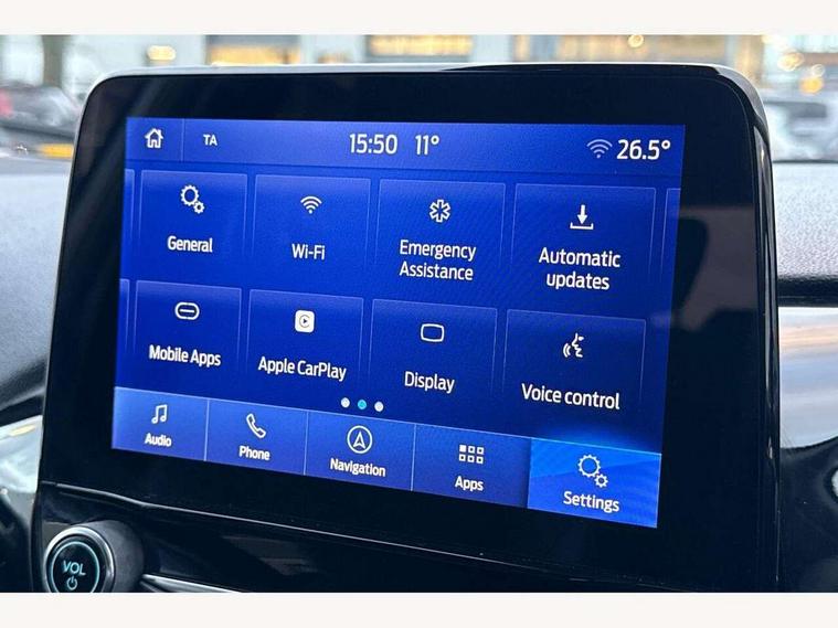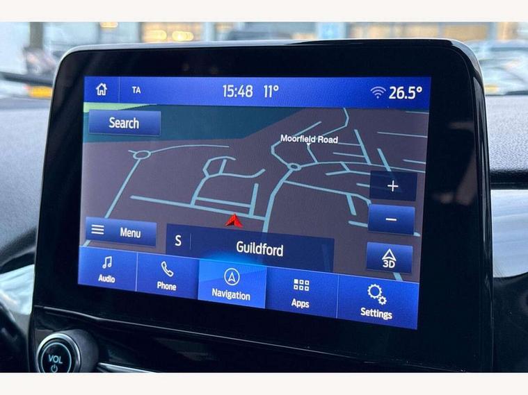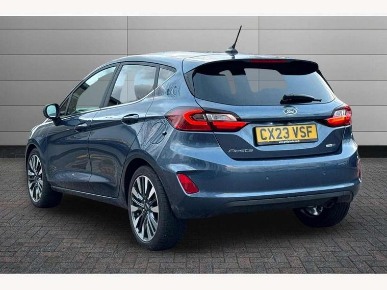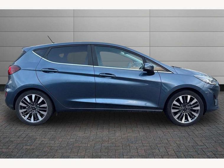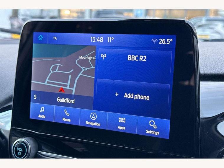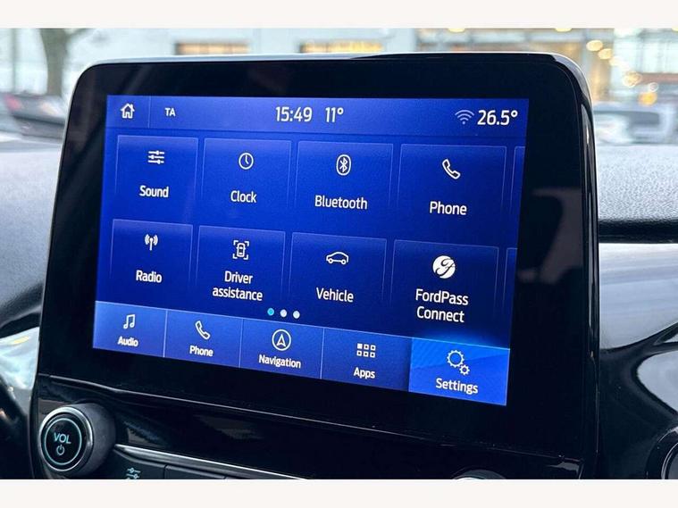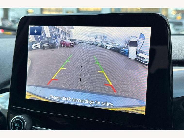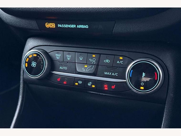 4.2" TFT instrument cluster screen, Bluetooth system, Electric power steering, Ford easy fuel, Rear parking distance sensors, Selectable drive modes (Normal, Sport, Track), Traffic sign recognition, Trip computer, 2 USB ports, Auxiliary input socket, B&O Premium audio system with 8" touchscreen, 10 speakers, 360 degree sound system, Ford SYNC 3 navigation system and Ford pass connect, DAB Digital radio, Steering wheel mounted controls, Auto high beam, Body colour bumpers, Body colour door handles, Body colour rear spoiler, Body coloured electrically operated and heated door mirrors with side indicators, Chrome beltline trim, Chrome front grille, Chrome lower window surround, Cornering front fog lights, Electric front windows/one touch facility, Electric rear windows, LED Night signature to rear lights, Power foldable door mirrors with puddle lights, Quickclear heated windscreen, Rain sensing wipers and auto dimming rear view mirror, Rear privacy glass, Rear wiper, 3 spoke leather trimmed steering wheel with audio control, 60/40 split folding rear seat, Adjustable head restraints, Boot carpet, Centre console with opening armrest, 2x cupholders, 12v and USB, Chrome inner door handles, Drivers and Passenger lumbar support, EATC - Electronic Auto Temperature control, Footwell illumination, Front floor mats in velour, Front map reading lights, Front seat and rear pockets, Height adjustable passenger seat, Illuminated glovebox, Leather gaiter, LED ambient lighting, Load area light, Luxury woven headliner, Manual 4-way driver seat adjust, Overhead console with sunglasses holder, Pollen filter, Rake/reach adjustable steering wheel, Sensico partial premium upholstery, Sensico wrapped steering wheel, NCAP Pack - Fiesta, 3 point seatbelts on all rear seats, ABS+EBA, Curtain airbags, Driver and passenger airbags, Drivers knee airbag, Electronic stability control with hill start assist, Front passenger airbag deactivation, Front side airbags, Seatbelt warning, Two tone horn, Tyre pressure monitoring system, Ford keyfree system with Keyless entry and keyless start, MyKey system, Remote central locking & engine immobiliser, Thatcham Cat.1 alarm, 17" 8 spoke alloy wheels,