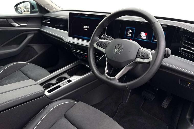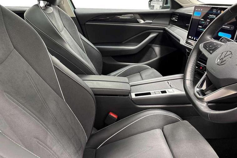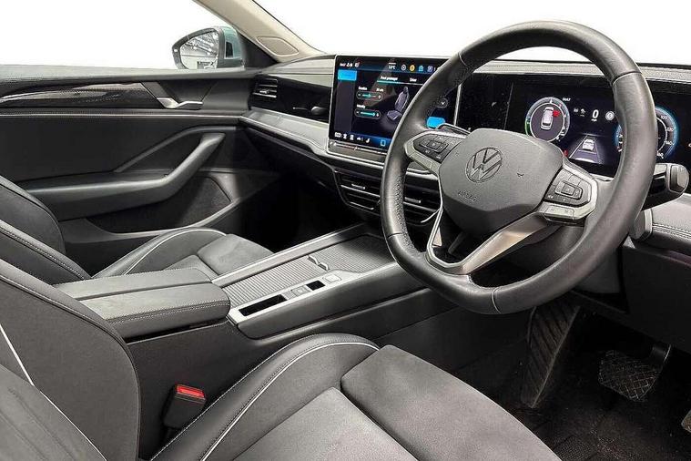 2 x Front USB-C ports, 2 x USB-C charging sockets on the centre console in the rear, charging capacity up to 45W, Adaptive cruise control, Advanced driver attention and drowsiness monitor, Chat GPT function for IDA voice assistant, Digital cockpit pro 10.25" high resolution, Discover media navigation system includes streaming and internet, Dynamic road sign display, E-Sim card for online connectivity, eCall emergency call service, Electronic engine sound, Full electric tailgate operation, Inductive smartphone charging without external antenna connection, Memory feature for park assist, Oncoming vehicle braking when turning including swerve support, Park assist with park distance control, Predictive speed limiter, Preparation for We connect and We connect plus, Wireless app connect, Battery 340 A (58 Ah), Front wheel drive, Petrol Particulate Filter, 8 Speakers, Auto dimming interior rear view mirror, Automatic headlights, Body colour bumpers, Body colour door handles, Heat insulating glass in side and rear windows, LED third brake light, Rain sensor, Rear side wing doors, Rear wiper, Welcome light with surround lighting, 3 seat bench in 2nd row, 3 zone air care climatronic with rear air conditioning control panel, Front + rear carpet mats, Front head restraints, Isofix child seat preparation, easy-fit (for two outer rear seats, and front passenger seat), compatible with I-size, Luggage compartment cover, power operated, Single front passenger seat, Standard pedal cluster, Sun visors with illuminated vanity mirrors for driver and front passenger, Sunblind for rear side windows, Three rear head restraints, Unsplit rear seat bench, split folding backrest, Infotainment package plus - Passat Estate, Park and comfort pack - Passat Estate, 3x3 point rear seat belts, ABS (Anti locking brake system) includes BAS (Brake assist) and EBD (Electronic brake pressure distribution), Autonomous emergency braking front assist with pedestrian and cyclist monitoring, Disc brakes in front, Driver/Front Passenger airbags, Drivers knee airbag, Electronic parking brake with auto hold, ESC (Electronic stability control) + EDL (Electronic Differential lock) and ASR (Traction control), EDTC (Engine drag torque control), Extended safety system with proactive passenger protection system, Front passenger airbag deactivation switch, Hill hold function, Tyre pressure loss indicator, Warning triangle and first aid kit, Alarm with interior protection, Electronic engine immobiliser, Keyless locking and starting system keyless access with safelock, Aluminium decorative inserts, Tool kit for tyre mobility set, Trims for alloy wheels,