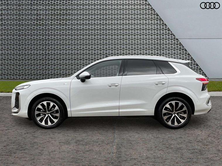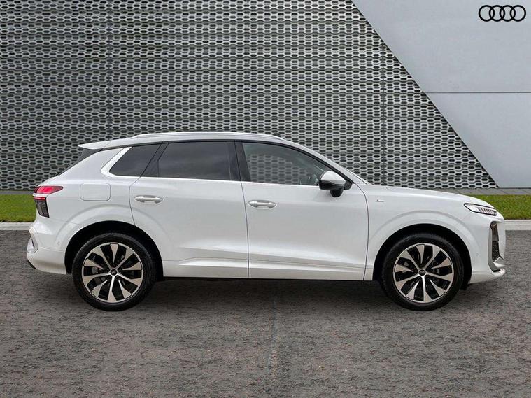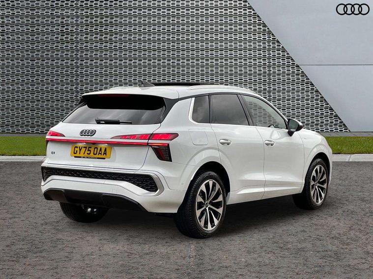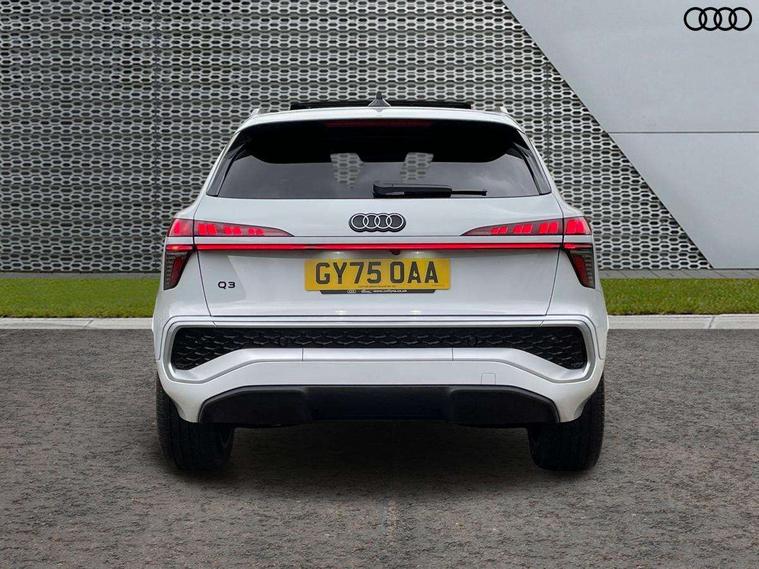 Adaptive cruise control, Audi connect emergency call and service, Audi connect remote and controls, Audi drive select (Balanced/Individual, effeciency, comfort and dynamic), Audi virtual cockpit plus - 11.9" display, Bluetooth interface, Camera based traffic sign recognition, Driver attention and fatigue monitor with driver monitoring, Front cross traffic assist, Lane departure warning with emergency assist, Panoramic curved display with 12.8" MMI navigation plus and MMI touch, Park assist plus with parking system and 360 display, Phonebox light with wireless charging, Reversing camera, Smartphone interface includes wireless Apple carplay/Android Auto, Start/stop system, Swerve assist and turn assist, Traffic sign based speed limiter, Voice control system with natural language interaction, Comfort suspension, Petrol Particulate Filter, 2 USB-C ports with charge and data functions, Audi sound system with 10 loudspeakers, subwoofer, 8 channel amplifier with 260 watts, DAB digital radio module, Acoustic glass for front door windows, Acoustic windscreen, Aluminium roof rails, Aluminium window trim, Audi Q3 lettering on the B-pillars, Auto dimming door mirrors, Auto dimming rear view mirror, Body colour door mirrors, Contrasting finish in volcano grey, Electrically folding, adjustable and heated door mirrors with integrated LED side indicators and kerb view function for passenger side, Full paint finish, Illuminated door sills with aluminium inserts at the front with S logo, LED daytime running lights, LED headlights plus with LED rear lights pro with continous light strip, illuminated Audi rings, rear, LED third brake light, Loading sill protector in stainless steel, Main beam assist, Privacy glass - dark tinted rear window, rear door and side windows, Projection light in the exterior mirrors - Projects a graphic element onto the ground, Q3 badging on the rear, Rain and light sensors, Rear side wing doors, Rear window, rear door windows and rear side windows in clear glass, Rear wiper, Sports bumpers, 3 seat bench in 2nd row, 3 spoke flat top and bottomed leather multi function sport steering wheel with gear shift paddles and "S" badging, 3-zone deluxe automatic air conditioning, 4 way lumbar support for the front seats - electric with horizontal and vertical adjustment in four directions, Black cloth headlining, Front and rear floor mats, Front and rear headrests, Front centre armrest, Heated front seats, Height and reach adjustable steering wheel, Interior storage compartment, Leather/artificial leather upholstery combination with S emblem + front sports seats, Luggage compartment lid, electrically opening and closing, Manual front seats with height adjustment, Rear seat bench plus with split folded 40:20:40, Single front passenger seat, Stainless steel pedals, Steering wheel operating unit, gloss black, Storage compartment in front centre console, Ambient lighting package pro - Q3, S line exterior styling pack - Q3, 3x3 point rear seatbelts, Convenience key with safelock, Driver and front passenger airbag with passenger airbag deactivation, Electromechanical parking brake, Electronic stabilisation control including ABS, ASR and EDL, First aid kit with warning triangle and high visibility vests, Front emergency brake assist, Hill hold assist, i - Size child seat mounting on the front passenger side and i - Size and top tether on the outer rear seats, Power operated child locks, Seatbelt monitoring, Three point automatic belts with belt tensioner and height adjustment, Tyre pressure loss indicator, Anti theft wheel bolts, Remote central locking, Thatcham approved category 1 anti theft alarm, Dark aluminium divergence inlay, Interior elements in dinamica microfibre, Interior trims in aluminium look, Tool kit and Jack,