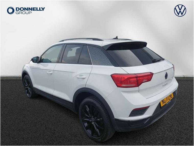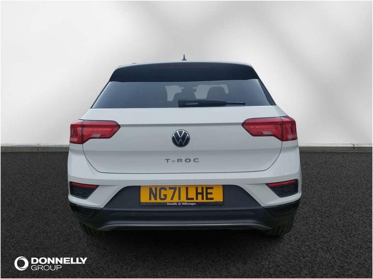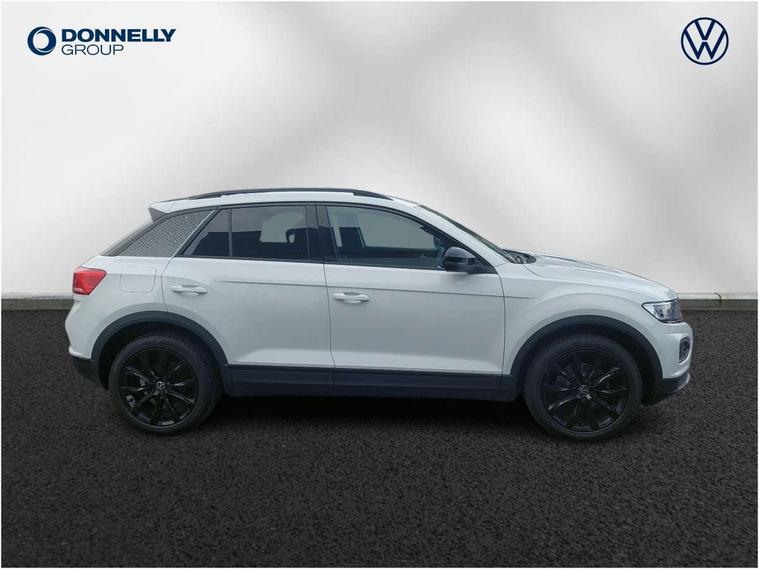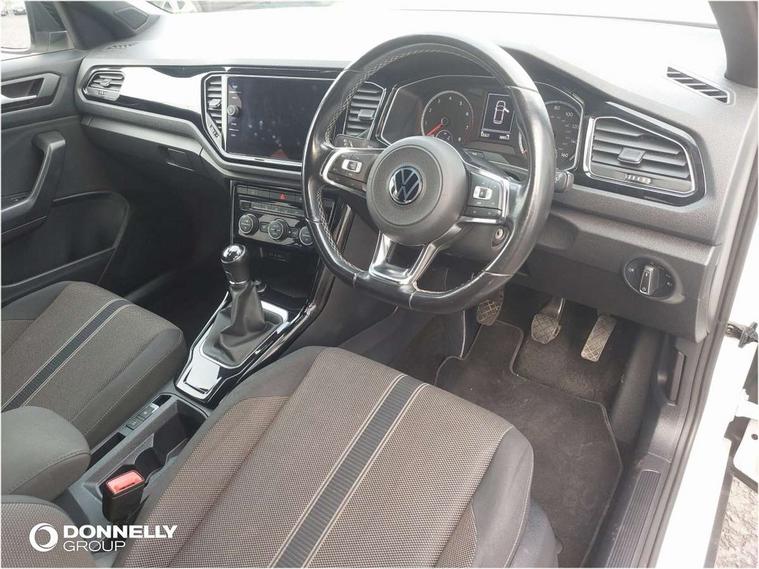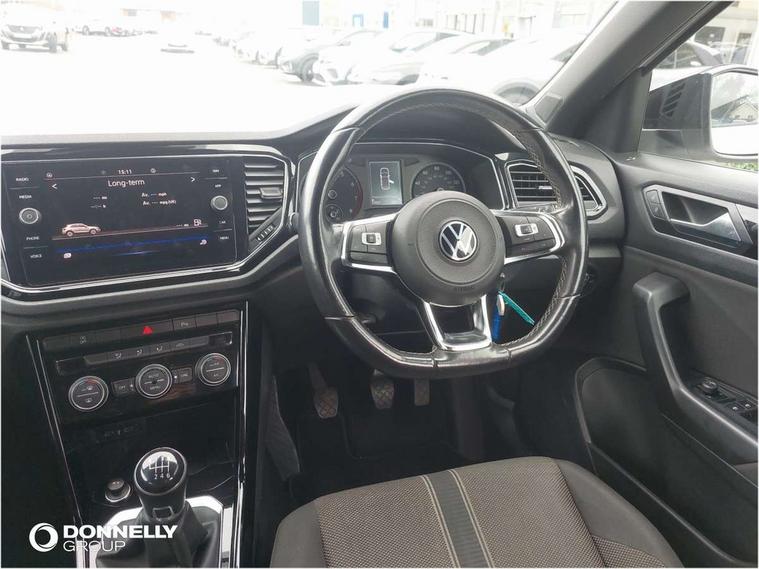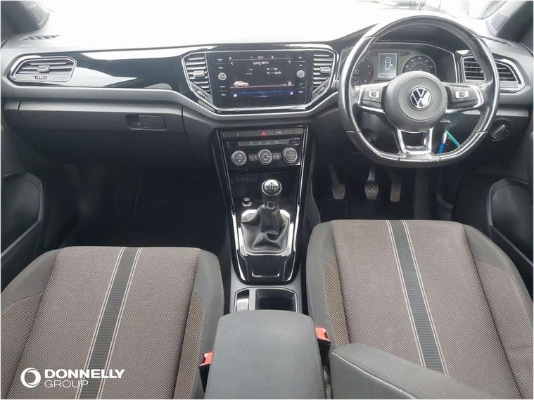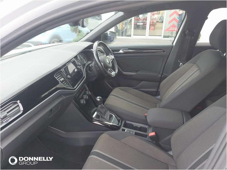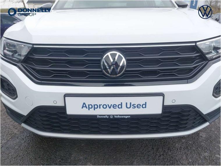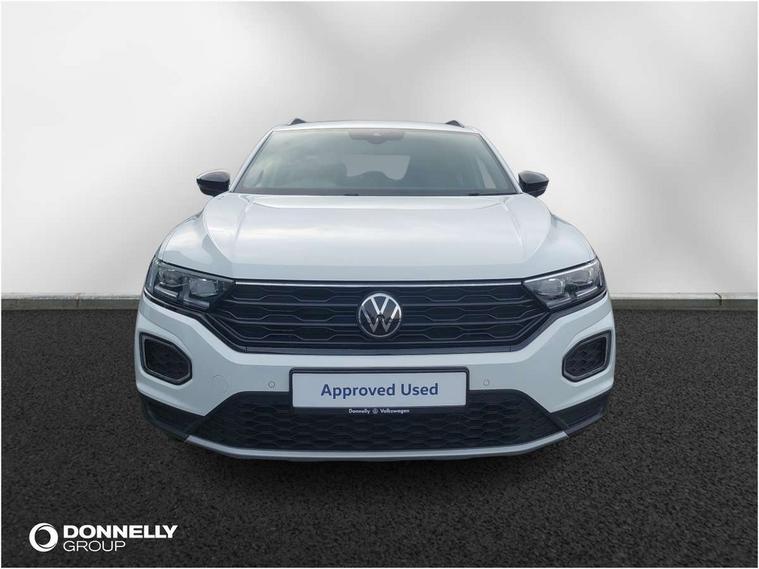 'Lights On' Reminder warning buzzer, Adaptive cruise control, Bluetooth telephone and audio connection for compatible devices, Car information display, Driver tips and journey analysis, Emergency call service, Lane assist with warning text instrument cluster, Modified key software - reduce switch off time for key status change to Long no motion, Multifunction camera, Multifunction computer with visual gear change recommendation for fuel consumption, Service interval indicator, Think blue trainer driver tips and journey analysis, Warning sound and light for doors and tailgate open, Warning sound and light for front seatbelts unfastened, Wireless app connect for apple carPlay, Battery regeneration during braking, Start/stop function with battery regeneration, DAB Digital radio, Diversity antenna for FM reception, Multi device interface (MDI) with USB connection, Music playback - MP3, WMA and AAC files, Premium USB cable in choice of either Apple or Android smartphone compatibility, SD card slot, Simultaneous pairing of 2 compatible mobile devices, Single CD player, glovebox mounted, SMS functionality - read, compose and send SMS messages using touch-screen display, Storage compartment with longitudinal and height adjustable in armrest and two rear air vents, Title and cover art display, USB-C Interface and USB charging socket, Auto dimming interior rear view mirror, Automatic coming/leaving home lighting function and daytime running lights, Automatic hazard lights activation under emergency braking, Black grained lower door protectors, Black grained wheel arches, Black roof rails, Body colour door handles, Body colour sports bumpers with silver metallic underbody fascia, Body coloured bumpers and radiator grille with chrome trim and front fog lamps with chrome bezel, Chrome trim on upper and lower radiator grille, Dusk sensor, Electrically foldable, adjustable and heated door mirrors with puddle lights and reverse activated kerb-view adjustment on passenger's door mirror, Exhaust tailpipes in black, External USB type C socket and charging sockets, Front and rear electric windows, Front windscreen wiper with intermittent wipe and 4 position delay, Fully galvanised body, Heated rear window, High level 3rd brake light, LED headlamps with automatic range adjustment and unique signature LED separate daytime running lights, LED rear number plate lights, LED tail lamp rear comination lamps, Privacy glass, Rain sensor, Rear tinted glass from B-pillar backwards approx 65% tinted, Rear wash/wipe with intermittent wipe setting, Trim strips on grille and vehicle side, Volkswagen roundel, 12V socket in centre console storage area, 3 rear head restraints, 4 load lashing points in luggage compartment, Black roof lining, Climate control - 2 zone electronic air conditioning with automatic air recirculation and allergy filter, Door and side trim panel, Drawer under drivers seat, Front centre armrest, Front cupholders x 2, Front seat back storage pockets, Glovebox, Height adjustable front seats, Height/reach adjust steering wheel, Instrument lighting, white adjustable panel illumination, Interior light in footwell, Isofix easy fit child seat preparation for 2 outer rear seats, LED interior light with switch off delay/dimmer and 2 front/rear LED reading lights, Load through provision with single cup holder when folded down, Luggage compartment cover, removable, Luggage compartment lighting, Split folding rear seat backrests with centre armrest, Storage compartment in left and right luggage area, Storage compartment in rear doors, Storage compartments in driver and front passenger doors, Sunvisors with illuminated vanity mirrors, Three spoke multi-function leather trimmed steering wheel and gearknob, White ambient lighting, Black decal on C-pillar pack - T-Roc, 3 rear three point seatbelts, ABS, Curtain airbags, Driver and front passenger safety-optimised head restraints, Drivers and front passengers airbags with passengers deactivation switch, Drivers seatbelt reminder, Electronic parking brake with auto hold, Electronic stability control (ESC) includes ASR, EDL, EDTC and trailer stabilisation function, Front assist with city emergency braking and pedestrian monitoring, Front seat side impact airbags, Predictive pedestrian protection, Rigid safety cell with front and rear crumple zones, Single tone horn, Three point height adjust front seatbelts + pretensioners, Tyre pressure loss indicator, Ventilated front and rear disc brakes, Volkswagen roadside assistance, Alarm with remote central locking and interior protection, Electronic engine immobiliser, Remote central locking with SAFELOCK, radio remote control with 2 remote control folding keys, Black decorative trims, Piano black decorative inserts in dash, centre console and door panel, 18" Arlo black diamond turned surface alloy wheels with low rolling resistance tyres and anti theft wheel bolts,