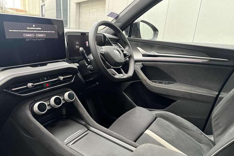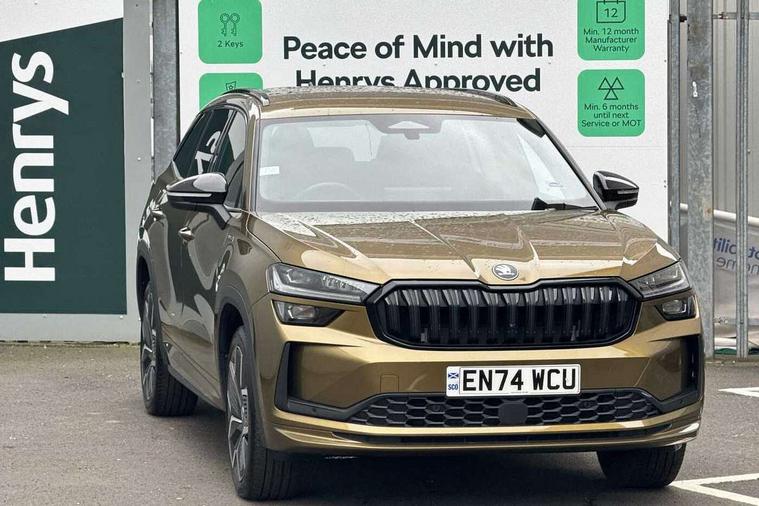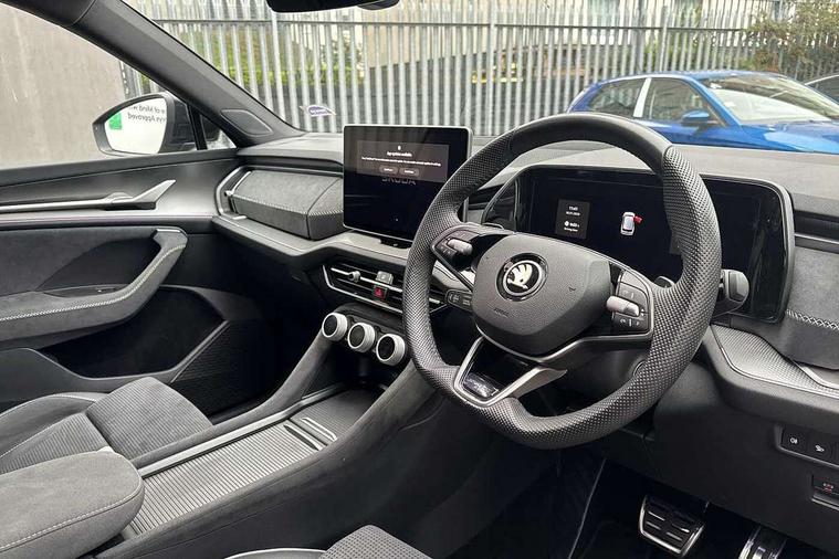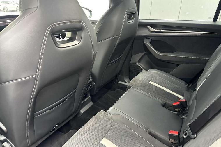 13" satellite navigation touchscreen display, Blind spot detection with door exit warning, Bluetooth system, ChatGPT functionality, Driver alert - Fatigue and drowsiness monitor, Dry display cleaner, Emergency call, Front and rear parking sensors, Front cross traffic assist, Lane assist, Off road modes, PAS, Rear traffic assist, Tailgate unlocking from outside, Traffic sign recognition, USB C Port x 2 in front centre console, Virtual Cockpit - 10.25" digital display, Voice control system, Wireless charging for two smartphones (15W) with cooling function, Wireless SmartLink for Apple CarPlay and Android Auto, Stop/start function, 2x USB-C in the rear, DAB Digital radio, Aero front windscreen wipers with intermittent function, Auto dimming rear view mirror, AWL (all weather lighting) and all weather light with cornering function, Black diffuser and decorative tailpipe with a unique dark chrome finish, Black roof rails, Black sports styling including front grille and window surrounds, Black wheel arch surrounds, Body colour door handles, Cornering light and poor weather light, Electric folding /adjustable/separted heated/folding door mirrors, auto dimming with boarding sports and memory function, Electric front and rear windows, Exterior black decorative trims, Front and rear sports bumpers including lower rear chrome strip, Gloss black door mirrors, Gloss black window frame and D pillar, Heat insulating glass in windshield, Heated rear window, Ice scraper in fuel tank cap, LED daytime running lights, LED third brake light in rear spoiler, Light assistant with automatic headlight control and coming home feature, Logo projection in door mirrors, Privacy glass, Rear roof spoiler, Rear side wing doors, Rear window wiper, Red decorative strip between rear LED lights, Safety reflectors on front and rear doors, Sportline badge on front fenders, Tailgate lettering in Black, Unique dark chrome design logo on alloy wheels, Window control switches with black trim, Windscreen wipers with rain sensor, Without engine designation, 1.5l bottle holder points in all door, 1x centre rear reading light, 2 seat bench in 3rd row, 3 configurable smart dials with 32mm coloured display, 3 seat bench in 2nd row, 4 foldable roof handles with rear coat hooks, Aluminium pedals, Ambient interior lighting - Dashboard, front-door stowage compartments, front and rear door panels and footwell lighting, Automatic gear selector on steering column, Chrome interior door handles, Driver/front passenger reading lights, Fabric headlining, Fixed bench 40:60:40 split folding backrests, Front and rear floor mats, Front centre armrest with jumbo box storage compartment, cup holder and 12V socket, Front sport seats, Height adjustable front headrests, Interior black decorative trims, Isofix child seat fittings in outer middle row rear seats and front passenger with top tether, Manually adjustable steering column, Pollen filter, Rear centre armrest with cupholders, Rear seat boot backrest release, Single front passenger seat, Skoda lettering on steering wheel, Storage pocket including mobile phone pockets on the backs of the front seats, Sunvisors with illuminated vanity mirrors, Three rear height adjustable headrests, Ticket holder on A Pillar, Tri zone climate control, Umbrella in door panel x1 made from sustainable materials, Upper and lower glovebox with card holder and coin compartment, USB C port by rear view mirror for charging only (15W), Acoustic package - Kodiaq, Performance package - Kodiaq, Sportline design selection pack - Kodiaq, Auto door release and activation of warning lights in the event of an accident, Driver and front passenger airbag with knee airbag and front passenger airbag deactivation, Electric child locks, Electronic parking brake, ESC (incl. ABS+EMD+MSR+ASR+EDL+HBA+DSR+RBS+ESBS+MCB+TSA+XDS), Front assist with braking reaction to vehicles, pedestrians and cyclists, Front disc brakes, Fuel cut off safety device, Height adjustable front 3 point seatbelts + pretensioners, Hill hold assist, Junction assist with automatic emergency braking, Rear disc brakes, Safety vest holder in door, Seat belt reminder for all seats, Three point rear seat belts, Two tone horn, Tyre pressure monitor, Alarm with interior monitoring and tilt sensor with safe function, Anti-theft wheel bolts, Immobiliser, Remote central locking with 2 keys, 20" Rila anthacite polished alloy wheel with black matte aero covers,