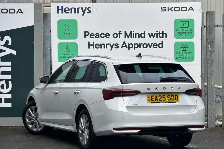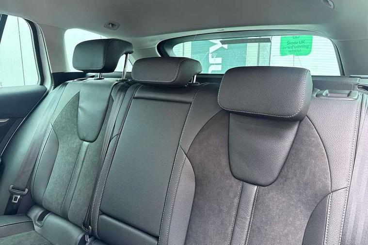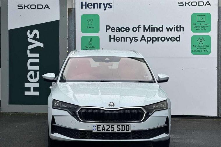 1x USB Typc C port in rear view mirror, 4x USB Type C ports - 2x in front centre console and 2x in rear (45W), Drive mode selection, Driver fatigue sensor, eCall emergency system, Electro-mechanical power steering, Front assist system, Traffic jam assist, Traffic sign recognition, Turn Assist, Virtual Cockpit - 10.25" digital display, Voice control system, Wireless charging (15W) with cooling function, Wireless SmartLink for Apple CarPlay and Android Auto, 13" touchscreen display with navigation, DAB Digital radio, Aero front windscreen wipers with intermittent function, Auto dimming rear view mirror, Body colour bumpers, Body colour door mirrors and handles, Chrome grille surround, Chrome roof rails, Chrome strip in lower front bumper, Chrome window surrounds, Electric front and rear windows, Heated rear windscreen, High level third brake light, Ice scraper in fuel cap, LED daytime running lights, LED Headlights, Logo projection in front doors, Rain and light sensors, Rear fog light on one side, Rear privacy glass, Rear side wing doors, Rear spoiler, Rear window wiper, 12 volt socket in boot, 3 rear headrests, 3 seat bench in 2nd row, 4 foldable roof handles, Electric auxiliary air heater, Front head restraints, Heated front seats, Illuminated glovebox, Interior door handles in dark chrome, Jumbo Box storage, Luggage compartment lighting x2 lights, Mechanical rear seat release from boot, Single front passenger seat, Steering wheel in black leather with black stitching, Storage compartments in left and right of boot, Sun visors with mirrors, Sunglasses storage, Ticket holder, Umbrella in door panel, Unsplit rear bench seat, split folding backrest with centre armrest with cupholder, Comfort package - Octavia Estate, Simply clever package premium with Storage compartment under passenger seat - Octavia, 3x3 point rear seat belts, Alarm with interior monitoring, tilt sensor and back up horn, Curtain airbags and front side airbags, Driver and front passenger airbags, Drivers knee airbag, Electronic parking brake, ESC including ABS, EBV, MSR, ASR, EDS, HBA, DSR, Front central airbag, Hill hold assist, ISOFIX on front passenger seat and outer rear seats, Passenger airbag deactivate switch, Three point seat belts in front and rear, Two tone horn, Tyre pressure monitor, Visual and acoustic seat belt reminder, Warning reflectors in front door, Anti-theft wheel bolts, Keyless start/stop, Remote central locking, Chrome air vent surrounds,