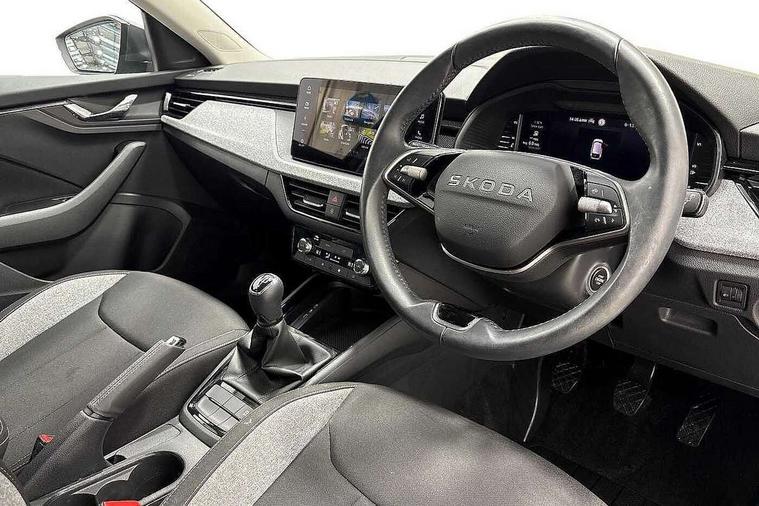 Advanced driver attention and drowsiness monitor, Bluetooth, e-Call (emergency call), Front assist system, PAS, Rear parking sensors, Rear view camera, Speed limiter, Tailgate, Traffic sign recognition, Virtual Cockpit - 10.25" digital display, Voice control system, Wireless smartlink, 4 USB C ports, 8 Speakers, 9.2" Skoda navigation display, DAB radio, Auto dimming rear view mirror, Automatic headlamp activation with Coming home and Leaving home feature, Automatic high/low beam, Body colour bumpers, Body colour door mirrors and handles, Chrome moulding around grille, Front and rear electric windows, Full LED headlights, Heated rear window, LED 3rd brake light, LED brake lights, LED daytime running lights, LED front turning lights, LED high beam, LED low beam, LED taillights, Rear LED fog light, Rear side wing doors, Rear wiper, Tinted windows, Unique dark chrome design logo on alloy wheels, 12V socket in luggage compartment, 3 seat bench in 2nd row, Black / Grey armrest stitching, Black hotstamping, Cargo elements, Chrome inner door handles, Door inserts in satin black, Driver and passenger sun visors with vanity mirror, Dual zone climate control, Front and rear roof lights, Front centre armrest, Front head restraints, Glasses storage in roof liner, Height adjustable driver seat, Height adjustable passenger seat, Ice scraper, Illuminated glove compartment, Inner circulation control with pollen filter, ISOFIX for front passenger seat, Isofix preparation for back seats, Leather gearknob and handbrake lever, Loft cloth upholstery, Luggage net under rear parcel shelf, Manual lumbar support for front seats, Net package and top tether hooks in boot space, Pearl grey ceiling, Pocket on the back of both front seats, incl. mobile phone pockets, Single front passenger seat, Skoda lettering on steering wheel, Textile floor mats, Third rear headrest, Ticket holder, Top tether for front passenger seat, Umbrella in driver's door, 3x3 point rear seatbelts, ABS, Child locks, Curtain airbags and front side airbags, Disc brakes, Driver and front passenger airbags, ESP, Hill hold control, Manual leather parking brake, One tone horn, Passenger airbag switch off function, Seatbelt reminder for driver and front passenger, Tyre pressure monitoring system, Anti theft alarm system with interior monitoring, backup horn and towing protection, Anti-theft wheel bolts, Remote central locking with 2 remote folding keys, SAFE function for remote central locking, Decord pad, door inserts Kota uni,
