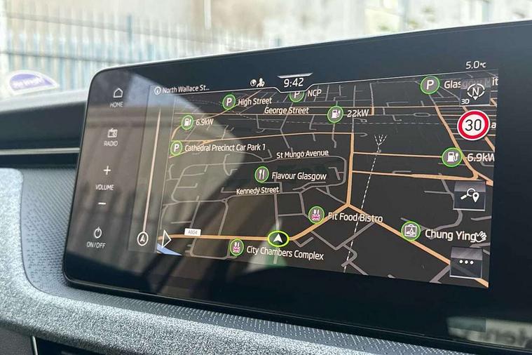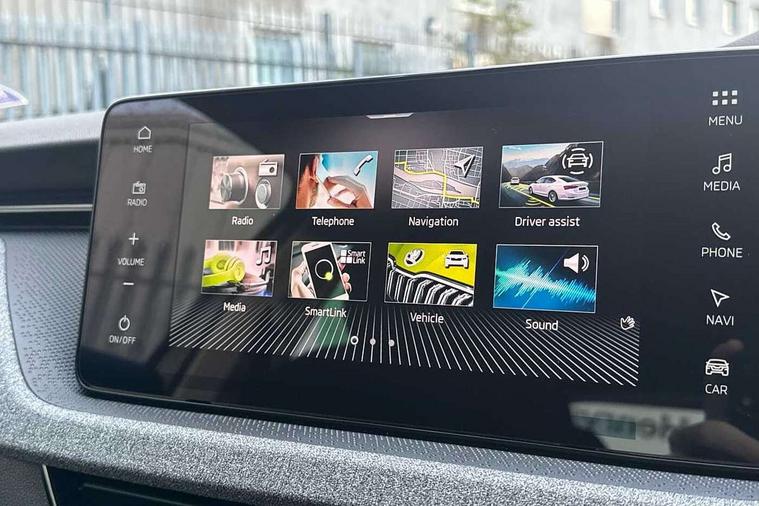 Advanced driver attention and drowsiness monitor, Bluetooth, e-Call (emergency call), Front assist system, PAS, Rear parking sensors, Rear view camera, Speed limiter, Tailgate, Traffic sign recognition, Virtual Cockpit - 10.25" digital display, Wireless smartlink, 4 USB C ports, 8 Speakers, 9.2" Skoda navigation display, DAB radio, Auto dimming rear view mirror, Automatic headlight control with manual coming and leaving home feature, Automatic intermittent wipers, Black window frames, Body colour bumpers, Body colour door mirrors and handles, Chrome moulding around grille, Front and rear electric windows, Full LED headlights, Heated rear window, LED 3rd brake light, LED daytime running lights, LED front turning lights, LED high beam, LED low beam, Rear LED fog light, Rear side wing doors, Rear wiper, Tinted windows, Unique dark chrome design logo on alloy wheels, 12V socket in luggage compartment, 3 seat bench in 2nd row, Black / Grey armrest stitching, Black hotstamping, Cargo elements, Chrome inner door handles, Door inserts in satin black, Driver and passenger sun visors with vanity mirror, Dual zone climate control, Front and rear roof lights, Front centre armrest, Front head restraints, Glasses storage in roof liner, Height adjustable driver seat, Height adjustable passenger seat, Ice scraper, Illuminated glove compartment, Inner circulation control with pollen filter, ISOFIX for front passenger seat, Isofix preparation for back seats, Leather gearknob and handbrake lever, Loft cloth upholstery, Luggage net under rear parcel shelf, Manual lumbar support for front seats, Net package and top tether hooks in boot space, Pocket on the back of both front seats, incl. mobile phone pockets, Single front passenger seat, Skoda lettering on steering wheel, Textile floor mats, Third rear headrest, Ticket holder, Top tether for front passenger seat, Umbrella in driver's door, 3x3 point rear seatbelts, ABS, Child locks, Curtain airbags and front side airbags, Disc brakes, Driver and front passenger airbags, ESP, Hill hold control, Manual leather parking brake, One tone horn, Passenger airbag switch off function, Seatbelt reminder for driver and front passenger, Tyre pressure monitoring system, Anti theft alarm system with interior monitoring, backup horn and towing protection, Anti-theft wheel bolts, Remote central locking with 2 remote folding keys, SAFE function for remote central locking, Decord pad, door inserts Kota uni,