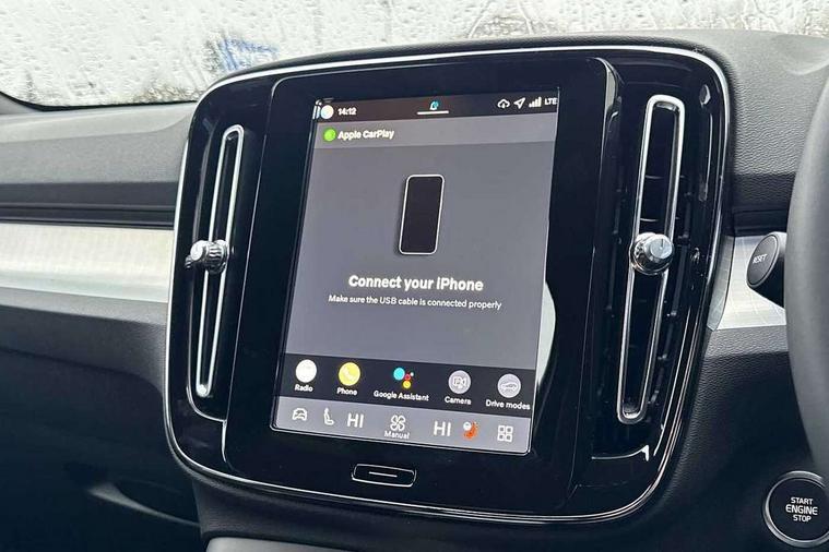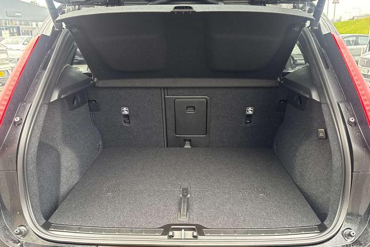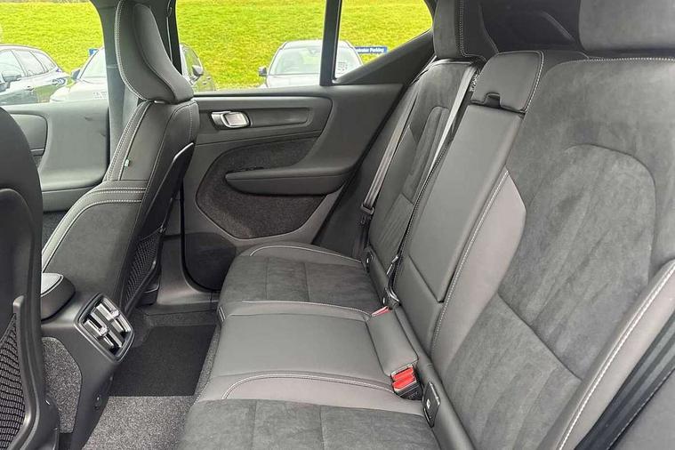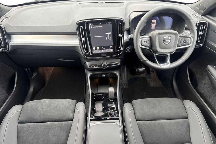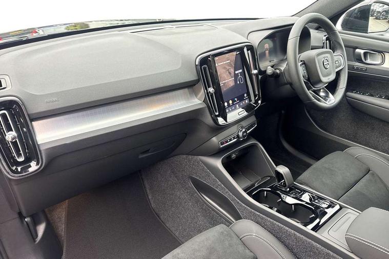 12.3" Progressive Driver Display, 360 degree surround view parking camera with side proximity sensors, 9" centre console portrait touch screen, Adjustable steering wheel force, Android auto (Wired), Apple carplay (wired), Bluetooth handsfree system, Driver alert control, Driver assistance (pilot assist and adaptive cruise control), Driver awareness - Blind spot information system with steer assist, cross traffic alert with autobrake and rear collision warning and mitigation, E-call, Front and rear parking sensors, Front park assist, Google automotive services - Enabled entertainment apps, navigation with google maps, voice recognition with google assistant, Hands free power tailgate, Intelligent speed assistance, Lane keeping aid, Oncoming Lane Mitigation, Speed sensitive steering, Volvo cars services with app - Driving journal, emergency and breakdown call, engine remote start, remote door locking/unlocking and vehicle dashboard, Wireless/Inductive Mobile Phone Charging, Automatic transmission with start/stop and manual change functions, Dynamic chassis, DAB Digital radio, Steering wheel mounted remote controls, Active bending pixel LED headlights with adaptive shadow technology, Active high beam incorporating daytime running lights, Adaptive brake lights with high level LED brake lights, Auto dimming feature for exterior door mirrors, Auto dimming interior mirror, Auto folding and heated power door mirrors, Automatic headlamp levelling, Dark tinted windows - rear side windows and rear screen, Front aluminium tread plates, Front and rear electric windows, Headlight cleaning system, High gloss black front and rear skid plate, High gloss black front bumper deco, High gloss black front grille strikethrough and ironmark, High gloss black rear model, engine and volvo logo badges, High gloss black window trim, Home safe and approach lighting, Integrated roof rails in high gloss black, LED front fog lights with cornering function, Puddle lights, Rain sensor with automatic windscreen wiper activation, Rear side wing doors, Rear wiper, Roof antenna, Roof spoiler, Visible VIN plate, 12V socket in front tunnel console and luggage compartment, 2-Zone electronic climate control with CleanZone air quality system and pollen filter, 3 seat bench in 2nd row, 3 Spoke tailored steering wheel with chrome trim, 60/40 versatile split folding rear seat, Centre console cupholders and storage, Charcoal carpet and floor mats, Charcoal headlining, Connect suede textile/microtech upholstery, Flexible load floor and grocery bag holder, Front headrests, Front seat cushion extensions, Glovebox bag hook, Heated front seats, Height adjustable passenger seat, Height/reach adjustable steering column, High gloss centre tunnel deco, High level illumination - Front door pocket, front side step (under door), tailgate, instrument panel, front door inlay, rear courtesy&reading lights, Integrated waste bin, Isofix attachments on outer rear seats, Load cover, Load protection net, Mid level illumination - Front footwell, luggage & glovebox compartment, front cabin courtesy & reading lights, illuminated vanity mirrors+ticket holder, Multi directional lumbar support for driver and passenger seat, Power driver seat with memory + exterior mirrors memory, Rear armrest with cupholders, Rear headrests, Single front passenger seat, Underfloor luggage compartment storage, Climate pack without heated front seats - XC40, 3x3 point rear seatbelts, City safety with steering support with Pedestrian + cyclist + front collision warning with full auto brake and rear auto brake, Driver and passenger airbags, Drivers knee airbag, Electronic parking brake with auto hold, First aid kit, Front and outer rear seatbelt reminder and pretensioners, Front seats SIPS airbags, Hill descent control - Off-road drive mode, Hill start assist, IC (Inflatable Curtains) - Full Length, Passenger airbag cut-off device, Power child locks on rear doors, Road sign information display, Run off Road Protection, SIPS (Side Impact Protection System), Slippery road and hazard light alert, Stability and Traction Control with Spin control, Engine Drag Control and Corner Traction Control, Tyre pressure monitoring system, Vehicle deceleration control with Anti-lock Brake System, Electronic Brake Distribution and Emergency Brake Assist, Warning triangle, WHIPS whiplash protection system - front, 2 x Key integrated remote control central locking including with deadlocking system and auto open/close windows, Anti-theft alarm including immobiliser/volume sensor + level sensor, Keyless drive includes keyless entry and keyless start, Locking wheel nuts, 20" 5 spoke high gloss black alloy wheels,