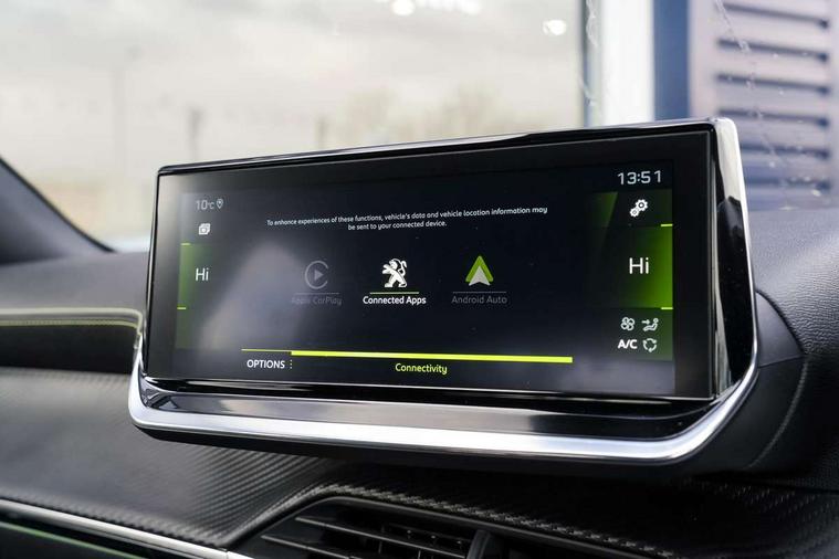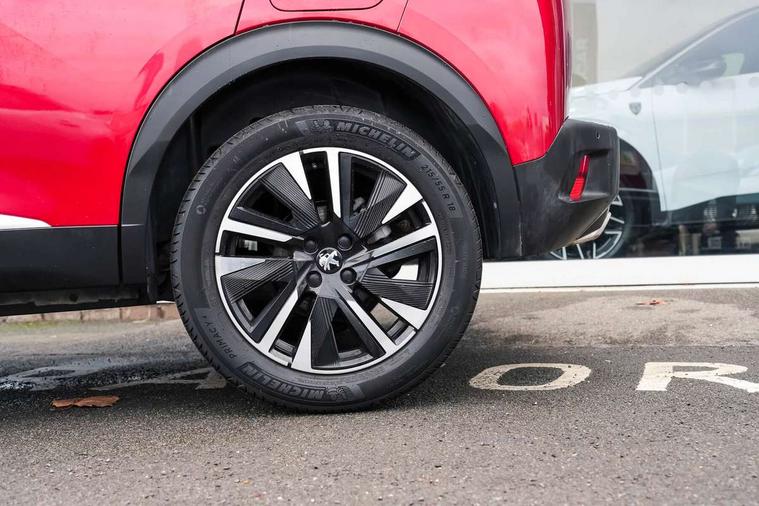 10" Capacitive colour touchscreen with connected 3D navigation with Piano keys gloss black plated toggle switches to access touchscreen, Bluetooth telephone facility, Driver attention warning, Exterior temperature indicator with ice warning, Front and rear parking sensors, Lane keep assist, Mirror screen with mirror link, apple carplay and android auto, Multi function trip computer, PEUGEOT i-Cockpit with compact steering wheel, PEUGEOT i-Cockpit with configurable 3D headup instrument panel, PEUGEOT SOS and assistance, Push button start, Smart phone docking station, Smartphone charging plate, Speed limit recognition and recommendation, Visio Park 1 with 180 degree Colour reversing camera, 2 front USB socket with USB-C, 2 USB sockets in rear, 6 speakers radio with mp3 compatible, DAB Radio (Digital Audio Broadcasting), Voice recognition for radio, navigation and telephony features, 2 X Rear number plate lights, Automatic hazard light activation upon heavy brake application, Black front wing trim with gloss black detail and GT line badging, Body coloured exterior door handles, Chrome exhaust tailpipe, Chrome front lower bumper, Dark tinted rear side and tailgate windows, Diamond black rear spoiler (roof), Electric, heated, and power folding door mirrors, Frameless electrochrome interior rear view mirror, Front windscreen wiper, Full LED headlights with smartbeam assist, Gloss black finish on B pillar, Gloss black rear cluster connecting strip, Gloss black roof bars, Gloss black window surround, GT Line model designation badging on tailgate, Headlights left on audible warning, LED daytime running lights with 3 claw headlight with distinctive tooth design, LED front fog lights, LED side indicator lights integrated into door mirrors, Model designation badges front and rear, Nera black door mirror shells, One touch electric front/rear windows with pinch protection, Radiator grille - Dark chrome chequered and gloss black edge trim, Rear full LED 3D peugeot signature claw effect lights with daylight function, Rear reversing lights, Rear windscreen wiper triggered automatically in reverse gear, Stainless steel door sill scuff plates, Tailgate with heated rear windscreen and wiper blade, Wheel arch extensions, 1/3 to 2/3 split folding rear seats, 12V socket, 8 Colour personalisable ambient lighting, Aluminium pedals, Automatic air conditioning, Central front armrest with storage compartment, Driver and front passenger seat manual adjustment in longitudinal and back rest angle, Driver and front passenger seat mechanical height adjustment, Driver and front passenger sport seats, Electric power steering with reach and rake adjustable steering column, Front and rear carpet mats in black with lime green stitch detail, Front LED interior light with 2 reading spotlights and rear interior light with timer, Gear lever - manual in satin chrome, Gear shift indicator, Heated front seats, High centre console, ISOFIX child seat mounting points on passenger seat, Lime green contrast stitching to front centre console, door panels and dashboard facia, Mistral full grain perforated leather steering wheel with aikinite stitch detail and satin chrome 'GT Line' emblem, Modular boot floor, Piano keys gloss black plated toggle switches to access main functions of the vehicle, Roof lining - Mistral black, Seatbelt unfastened on the move audible and visual alert for front and rear seats, Visibility pack - 2008, 2x 2nd row ISOFIX child seat mountings, ABS (Anti-lock Braking System) with EBD (Electronic Brakeforce Distribution) and EBA (Emergency Braking Assistance), Active safety brake with night function/cyclists/pedestrians, Adaptive driver and front passenger airbags with passenger airbag deactivation function, Child locking functionality on rear doors, Driver/front passenger side airbags, Electric parking brake, ESP (Electronic Stability Program) + Hill Start Assist, Front and rear curtain airbags, Front and rear disc brakes, Front and rear three-point retractable seatbelts, with force limiters, Front optimised safety headrests and rear retractable headrests (x3), height adjustable, Tyre pressure sensor, Automatic door locking when moving off, Deadlocks, Electronic code immobiliser, Thatcham Cat.1 alarm, Carbon effect Dashboard, front and rear door panel finish, 18" Bund diamond cut alloy wheels,