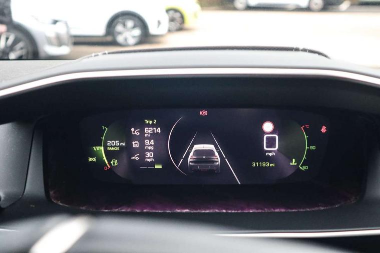 10" Capacitive colour touchscreen with connected 3D navigation, Bluetooth telephone facility, Driver attention warning, Exterior temperature indicator with ice warning, Lane keep assist, Mirror screen with mirror link, apple carplay and android auto, Multi function trip computer, PEUGEOT i-Cockpit with compact steering wheel, PEUGEOT i-Cockpit with configurable 3D headup instrument panel, PEUGEOT SOS and assistance, Push button start, Smart phone docking station, Speed limit recognition and recommendation, Start/stop system, Visio park assist 180 with colour reversing camera + front and rear parking sensor, 2 front USB socket with USB-C, 2x USB sockets in rear, 6 speakers radio with mp3 compatible, DAB Digital radio, Voice recognition for radio, navigation and telephony features, 2 X Rear number plate lights, Automatic hazard light activation upon heavy brake application, Automatic lights, Automatic windscreen wipers, Body coloured exterior door handles, Dark tinted rear side and tailgate windows, Diamond black rear spoiler (roof), Diamond Black roof, Electric front windows + one touch + anti-pinch, Electric rear windows with one touch/anti-pinch, Electrically adjustable, heated and power folding door mirrors, Follow me home headlights, Frameless electrochrome interior rear view mirror, Full LED headlights with smartbeam assist, Gloss black finish on B pillar, Gloss black rear cluster connecting strip, Gloss black wheel arch extensions, Gloss black window surround, GT model designation badging on C pillar, GT model designation badging on tailgate, Headlights left on audible warning, LED daytime running lights with 3 claw headlight with distinctive tooth design, LED side indicator lights integrated into door mirrors, LED third brake light, Model designation badges front and rear, Nera black door mirror shells, Peugeot scuff plates, Radiator grille - Dark chrome chequered and gloss black edge trim, Rear bumper with gloss black finish, Rear full LED 3D peugeot signature claw effect lights with daylight function, Rear lower bumper diffuser effect trim in gloss black, Rear reversing lights, Rear side wing doors, Rear windscreen wiper triggered automatically in reverse gear, Roof mounted aerial with fin design, Roof spoiler, Single chrome exhaust tailpipe, Tailgate with heated rear windscreen and wiper blade, Variable front intermittent wipers, 1/3 to 2/3 split folding rear seats, 12V socket, 3 seat bench in 2nd row, 8 Colour personalisable ambient lighting, Aluminium pedals and foot rest, Automatic air conditioning, Driver and front passenger seat manual adjustment in longitudinal and back rest angle, Driver and front passenger seat mechanical height adjustment, Driver and front passenger sport seats, Electric power steering with reach and rake adjustable steering column, Front and rear carpet mats in black with lime green stitch detail, Front centre armrest with storage compartment, Front LED interior light with 2 reading spotlights and rear interior light with timer, Gear shift indicator, High centre console with 2 cup holders, ISOFIX child seat mounting points on passenger seat, Lime green contrast stitching to armrest, front centre console, door panels and dashboard facia, Map pockets on the backs of the front seats, Mistral full grain perforated leather steering wheel with aikinite stitch detail and satin chrome 'GT' emblem, Piano keys gloss black plated toggle switches to access main functions of the vehicle, Piano keys gloss black plated toggle switches to access touchscreen functions, Rear centre headrest, Roof lining - Mistral black, Satin chrome gear lever with black stitching, Seatbelt unfastened on the move audible and visual alert for front and rear seats, Single front passenger seat, 3 rear 3 point seatbelts, ABS (Anti-lock Braking System) with EBD (Electronic Brakeforce Distribution) and EBA (Emergency Braking Assistance), Active safety brake with night function/cyclists/pedestrians, Adaptive driver and front passenger airbags with passenger airbag deactivation function, Child locking functionality on rear doors, Driver/front passenger side airbags, Electric parking brake, ESP with Hill Assist, Front and rear curtain airbags, Front and rear disc brakes, Front optimised safety headrests and 3 x rear retractable headrests with height adjustable, Front three point retractable seatbelts with force limiters, Tyre pressure sensor, Acoustic vehicle alert system (AVAS), Automatic door locking when moving off, Deadlock, Electronic code immobiliser, Remote central locking, Thatcham cat. 1 alarm with anti lift sensor, Carbon effect Dashboard, front and rear door panel finish, 17" Bronx two-tone alloy wheels, Space saver spare wheel,