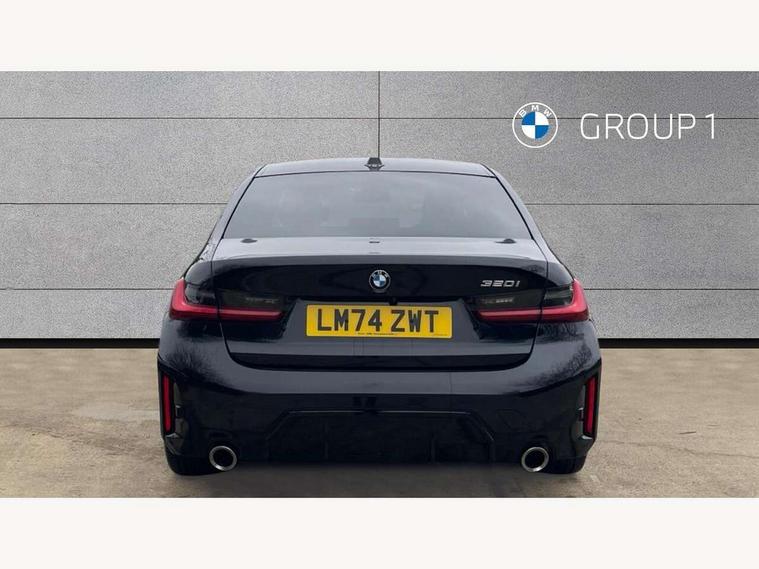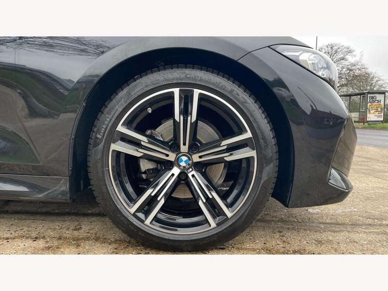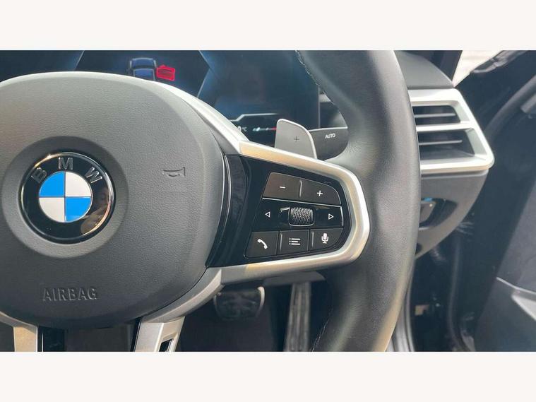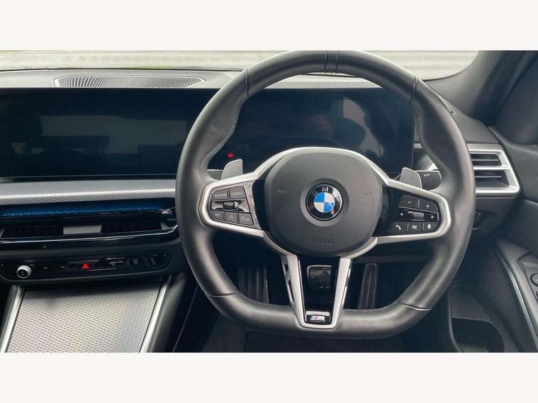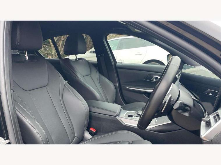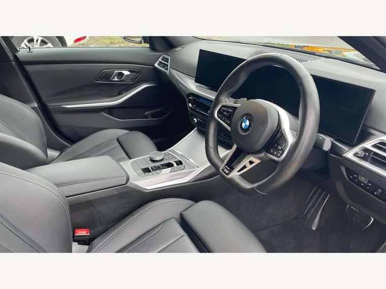 Active guard plus, Attentiveness assist, Automatic Start/stop button, Bluetooth Wi-Fi interface, BMW iDrive, BMW Teleservices, ConnectedDrive Services - last state call, Live cockpit plus with Navigation + 12.3" instrument display + 14.9" display, Intelligent voice assist, 2 USB, 4G LTE connect, Oil sensor for level and grade, Personal e-SIM, Shifting point display, Variable sport steering, Double joint spring strut front axle, Fuel tank breather system, Sport automatic transmission with steering-wheel mounted gearshift paddles and launch control, DAB tuner, 3rd brake light, Auto dimming rear view mirror, Automatic headlight beam throw control with load dependent regulating reaction, dynamic compensation of braking dive and acceleration squat, Bi-LED Low and high beam headlights, BMW emblem, engine compartment lid and tailgate, Body colour roof fin, Door sill strips, Electric windows - front and rear, with open/close fingertip control, anti-trap facility and comfort closing, Fading support, Follow me home headlight function, Front and rear bumper system with replaceable deformation elements, Front apron plastic in body colour, Fuel filler flap - right rear in body colour, Heat protection glazing on front windows and windscreen, Heated washer jets, High gloss chrome kidney frame with high gloss black kidney struts, LED daytime running lights, LED rear lights, LED turn indicator, Licence plate panel integrated into front bumper and tailgate, M high gloss shadow line exterior trim, Matt black B-pillar finsher, Matt black window recess cover, One piece front bumper cover including towing eye cover in body colour, Rain sensor with automatic headlight activation, Rear boot, Rear side wing doors, Reversing lights, Side frame decorative moulding black matt, Trailer stabilisation logic, Visible exhaust tailpipe finisher, Welcome lights in interior and door handle area, 12V power socket in front storage compartment, 2 front cupholder in centre console with clamping elements and matt black inlay, 3 seat bench in 2nd row, 3 spoke M Sport multifunction flat bottom leather steering wheel, 3 zone automatic air conditioning, 40:20:40 split folding rear seat with loading system, Anthracite headlining, Armrest integrated in front and rear door trim + front centre console armrest, BMW ID, Cruise control operation in steering wheel, Driving experience mode switch, Folding rear centre armrest with 2 cupholders, Front and rear headrests, Front and rear velour floor mats, Front footwell lighting, Front reading light, Heated front seats, Height adjustable mechanically and infinitely variable steering column, Illuminated armrest storage compartment, Illuminated glove compartment, Illuminated luggage compartment, Lashing eyelets in luggage compartment, Single front passenger seat, Sunvisors with illuminated vanity mirrors and ticket pocket, Toolkit located in luggage compartment, Connected pack professional - 3 Series Saloon/Touring, Interior and exterior mirror pack - 3 Series Touring/Saloon, M sport exterior styling pack - 3 Series Saloon/Touring, Parking assistant pack - 3 Series, 3x3 point rear seatbelts, BMW emergency call, Child locks on rear doors, Crash sensor activating of airbags, Unlocking doors, hazard warning lights, interior light, safety battery terminal, Drive-off assistant, Driver and front passenger with seat occupancy detection for driver's and passenger side, Driver and passenger side airbags, body protection at side and airbags deploy from seat backrests, Dry braking, Dynamic brake control, Dynamic stability control + (DSC+) - Anti-lock Braking System (ABS) with brake assist and cornering brake control + Automatic Stability Control (ASC), Dynamic Traction Control - DTC, Electric parking brake including automatic hold function and automatic release of the parking brake when driving off, Electronic differential lock control (EDLC), Front airbag deactivation, Front airbags for driver and front passenger, Head airbags in 1st and 2nd row, head protection at side, curtain airbags open from headliner above 1st and 2nd row, Plastic fuel tank, Side impact protection, Tyre pressure sensors, Ventilated front and rear disc brakes, Warning triangle and first aid kit, Alarm system, Centre lock switch, Closing system with central locking, Electronic vehicle immobiliser, Locking wheel bolts,