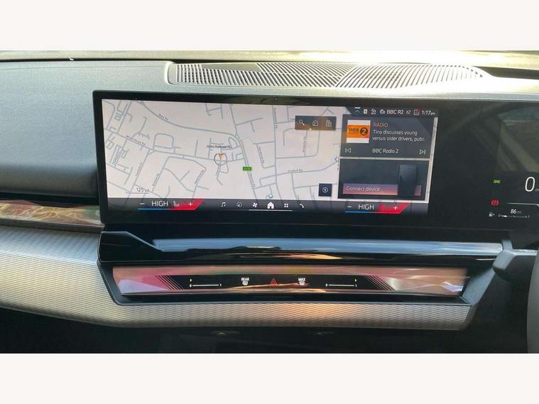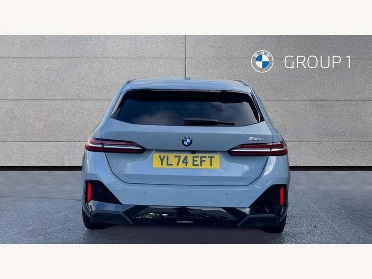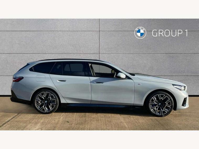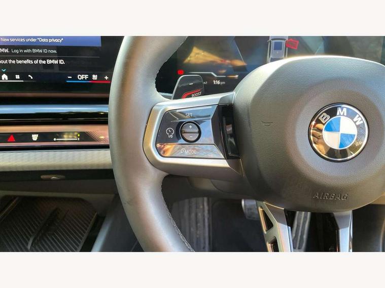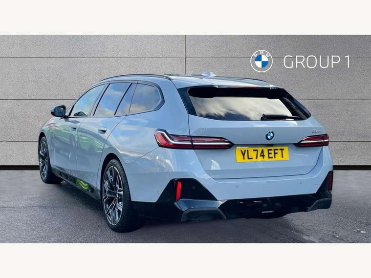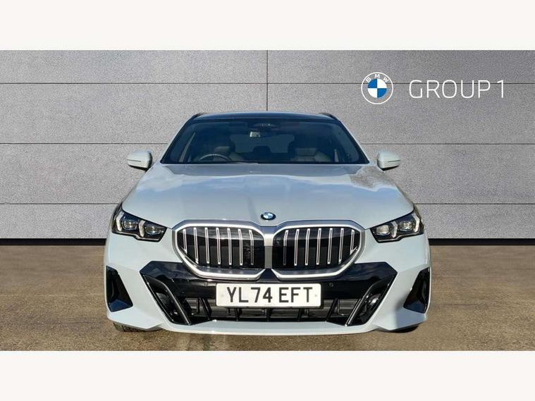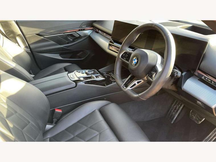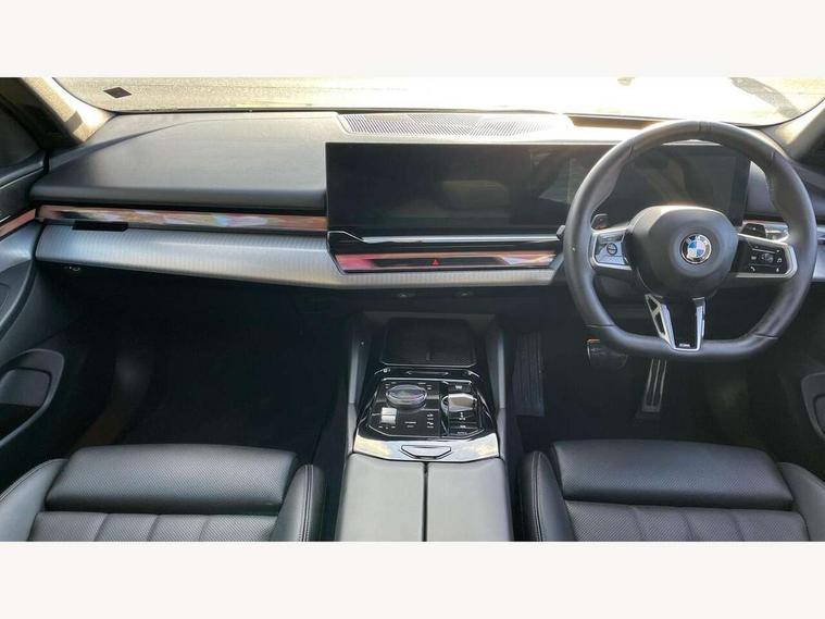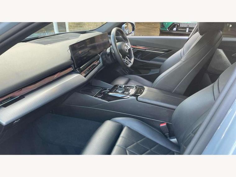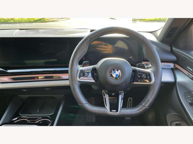 Automatic tailgate operation, BMW ConnectedDrive online services, BMW legal emergency call, BMW Teleservices, Brake pad wear indicator, Cruise control with brake assist, Driving Assistant Plus Preparation, Front collision warning with brake intervention, Lane departure warning with active return, Left turn warning with brake function, Multifunctional instrument panel, Oil sensor for level and grade, On board computer inc. average speed, fuel consumption, liquid crystal Info display, journey computer, outside temperature display, personal profile, On-board diagnosis - OBD, PAS, Personal e-SIM, Powered by Operating System 7.0, Run flat indicator, Service interval indicator, Speed limit Info with manual speed limit assist, Stop/start button, 8 speed automatic steptronic transmission with gearshift paddles, DAB tuner, Acoustic glazing, Adaptive LED Headlights, Automatic cornering lights, Automatic windscreen wipers and automatic headlight, BMW selective beam, Body colour door handles, Body coloured bumpers, Dynamic brake lights with LED technology, Electric adjustable door mirrors, Electric front and rear windows with fingertip open/close + anti-trap facility and comfort closing function, Follow me home headlight function, Headlight elements in blue, Heated windscreen washer jets, LED daytime running lights, LED third brake light, Light colour close to that of ordinary daylight, Optimum, homogeneous illumination of the road, Rear side wing doors, Rear wiper, 2 zone automatic air conditioning, 3 seat bench in 2nd row, 3 spoke leather M steering wheel in BMW M specific design with M badge, Armrest - front and rear integrated door trim, centre console includes storage compartment, rear centre includes 2 cupholders, Child seat ISOFIX attachment with rear outer seats includes top tether, Electric adjustable front sports seats, Electric adjustable steering column, Electrically adjustable lumbar support for driver and front passenger, Heated driver and front passenger seats, High-gloss black door switch cluster, power window switch and tailgate button on first and second row seat, M Anthracite headlining, M Sport pedal covers in stainless steel, Rear headrests, Single front passenger seat, Through loading system with 40/20/40 rear seat backrest split, Velour floormats, Wireless charging tray, Ambient lighting pack - 5 Series/I5, Connected package professional - 5 Series/I5, Driving assistance pack - 5 Series/I5, Expanded exterior mirror package - 5 series/I5, M high gloss shadow line pack - 5 Series/ I5, M Sport exterior styling pack - 5 Series/I5, 3 rear three point seatbelts, Active protection, Airbag deployment is controlled with respect to the intensity and scope, Anti-lock braking system (ABS), Brake assist, Brake energy regeneration, Cornering brake control (CBC), Crash sensor activating central locking release, hazard warning lights, fuel cut off and interior lighting, Driver and front passenger airbags, Driver central airbag, Driver/front passenger side airbags, DSC - Dynamic Stability Control, Dynamic brake control, Dynamic Traction Control - DTC, Electromechanical parking brake with automatic drive away release and auto hold function, Electronic brake force distribution, Engine drag torque control, Front and rear brake discs with interior ventilation, Front and rear curtain airbags, Front head restraints with anti-whiplash, Head airbags for first and second row seats, Hill start assist, Locking of doors after driving off, M Sport brakes in dark blue metallic painted brake callipers with M designation, Mechanical child proof lock on rear doors, PC iBrake PostCrash approach control warning with light braking function, Side impact protection, Trailer stability control, Two tone horn, Tyre pressure monitoring system, Warning triangle and first aid kit, Alarm system, Locking wheel bolts including wheel bolt adapter, Tyre repair kit,