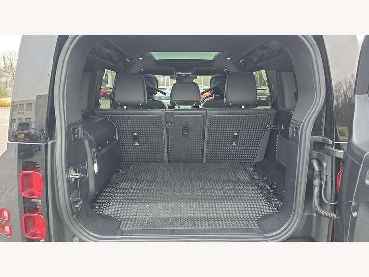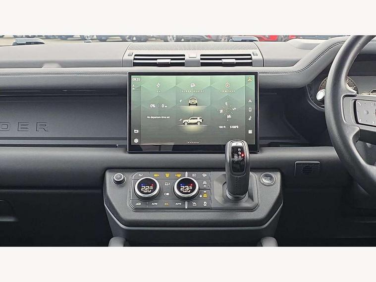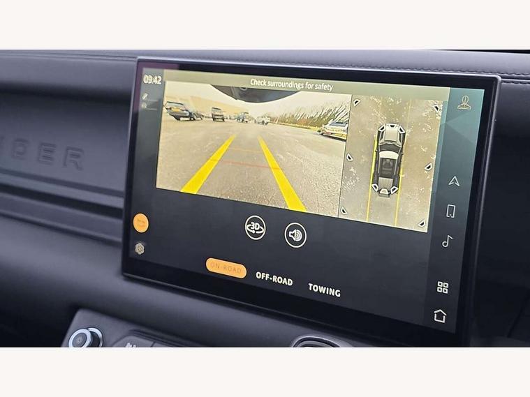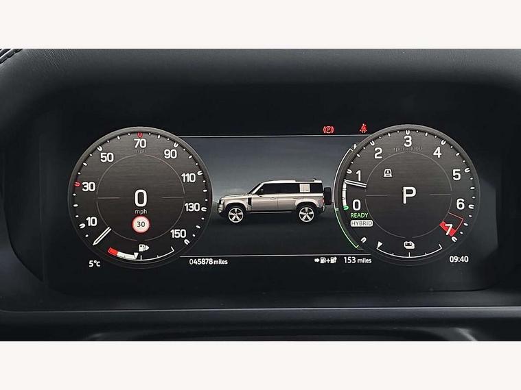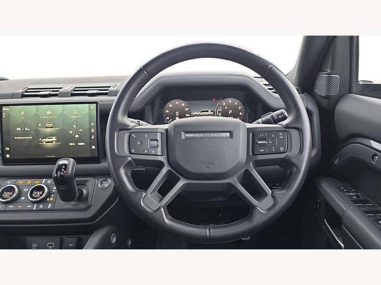 11.4" touchscreen, 360 degree parking aid, 3D Surround Camera with 360 View, 180 Rear View, Front Traffic Detection, Forward Vehicle Guidance, Tow Hitch Assist and clear sight Ground View, Adaptive cruise control, Android Auto, Apple CarPlay, Assisted tailgate with soft close, Blind spot assist, Bluetooth system, Brake pad wear indicator, Clear exit monitor, Connected navigation pro, Driver condition monitor, Electric power assisted steering (EPAS), Interactive driver display, Lane keep assist, Push button start, Rear collision monitor, Rear traffic monitor, Traffic sign recognition with adaptive speed limiter, Trip computer, Wade Sensing, 7 kW onboard charger, 8 speed automatic transmission, AC/DC charging, Adaptive dynamics, All wheel drive system, Electronic air suspension, Home charging cable mode 2 basic, Public charging cable, Twin speed transfer box, DAB Radio (Digital Audio Broadcasting), Meridian 400w sound audio system with 11 speakers and subwoofer, Pivi pro connected, Automatic headlight levelling, Automatic headlights, Black exposed rear recovery eyes, Centre high mounted stop light, ClearSight interior rear view mirror, Electric heated/power fold door mirrors with approach lights and auto dimming driver side, Electric windows with one touch open/close and anti-trap, Follow me home lighting, Front fog lights, Heated rear window with timer, Heated windscreen, LED tail lights, P400e badge, Privacy glass, Puddle lights, Rain sensing windscreen wipers, Rear fog lights, Rear side wing doors, Rear wiper, Side hinged tailgate, Solar attenuating windscreen, Trailer stability assist, X-Dynamic badge, 12V power socket in loadspace, 14 way heated and cooled electric adjustable memory front seats with 4 way manual headrests, 3 seat bench in 2nd row, Alpine lights, Configurable cabin lighting, Durable rubber cabin flooring, Durable rubber loadspace flooring, Electric reach + rake adjustable steering column, Extended leather upgrade, Footwell lights, Front passenger isofix child seat attachment, Heated steering wheel, Loadspace cover, Loadspace Hook, Multifunction steering wheel, Overhead stowage for sunglasses, Premium cabin lighting, Rear headrests, Rear ISOFIX, Rear reading lights, Single front passenger seat, Standard seat configuration, Storage glovebox, Sunvisors with illuminated vanity mirrors, Twin front cupholders with cover, Online pack with data plan - Defender, 5 x 3 point seatbelts, ABS, Brake hold function, Cornering brake control (CBC), Customer configurable autolock, DSC - Dynamic Stability Control, EBD - Electronic brakeforce distribution, Electric parking brake (EPB), Emergency brake assist, Emergency braking, ESP + traction control, Front airbags with passenger seat occupant detector, HDC - Hill descent control, Hill launch assist, Low traction launch, Power operated child locks, Remote for (e-Call, Optimised assistance call, InControl app, Climate, beep and flash and door), RSC - Roll stability control, Seat belt reminder, TPMS (Tyre pressure monitoring system), Alarm, Immobiliser, Intrusion sensor, Keyless entry, Locking wheel nuts,