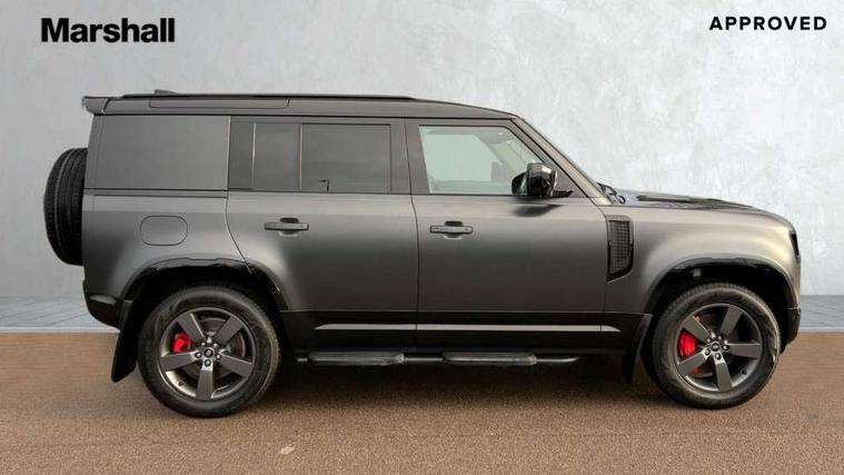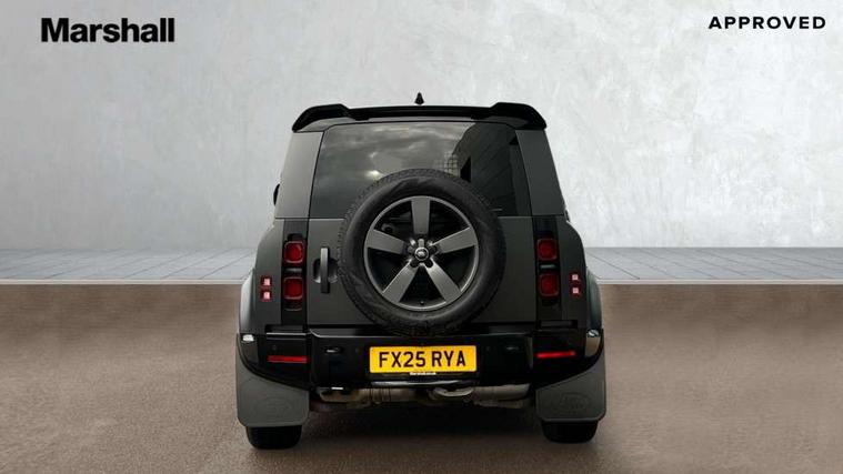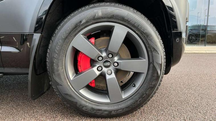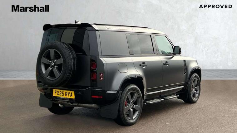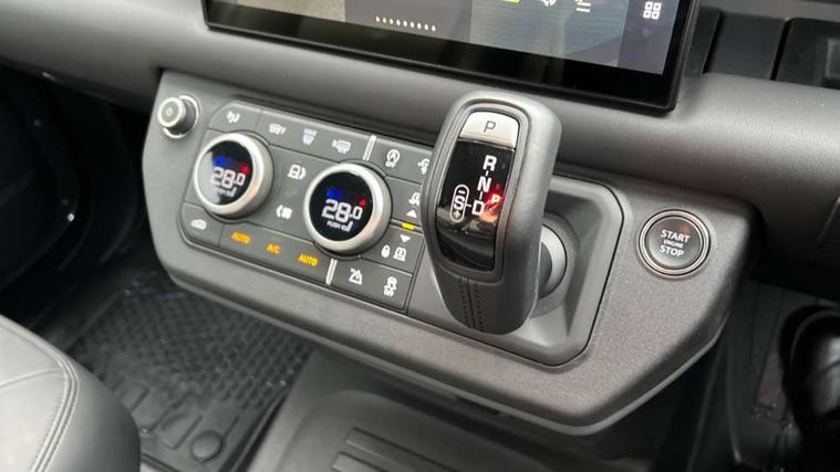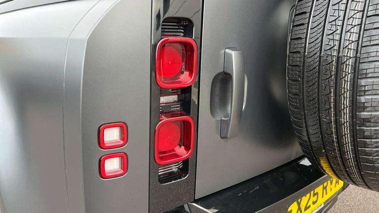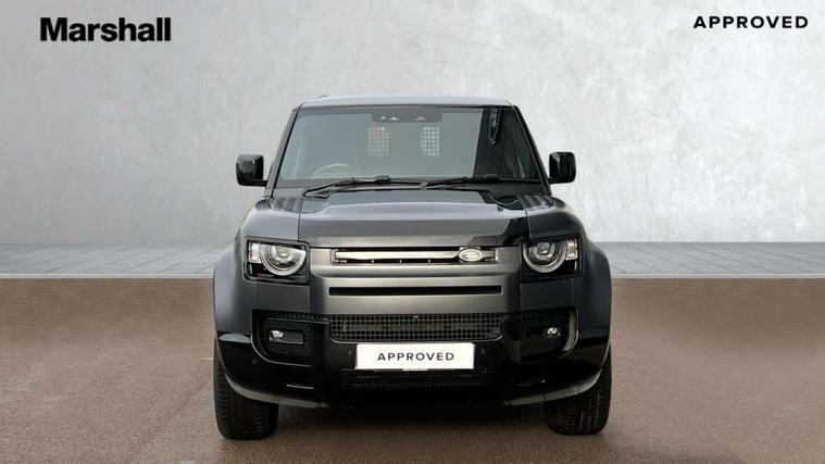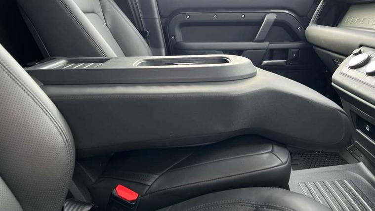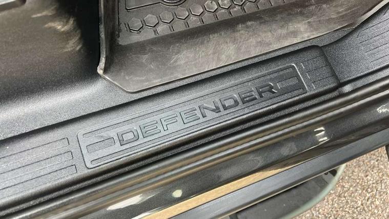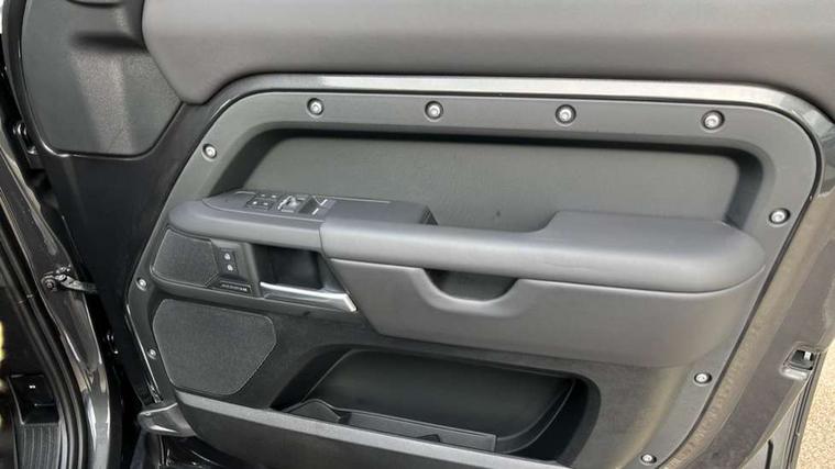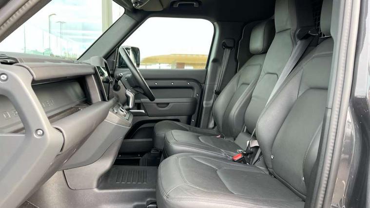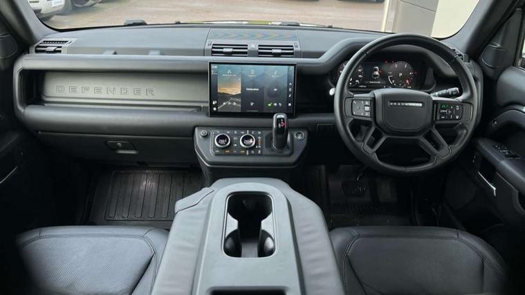 Customer Configurable Autolock, 11.4" touchscreen, 360 parking aid, 3D Surround Camera with 360 View, 180 Rear View, Front Traffic Detection, Forward Vehicle Guidance, Tow Hitch Assist and clear sight Ground View, Adaptive cruise control, Blind spot assist, Brake Hold, Driver condition monitor, Electric power assisted steering (EPAS), Interactive Driver display, Lane keep assist, Low traction launch, Pivi pro connected, Rear collision monitor, Rear traffic monitor, Traffic sign recognition adaptive speed limiter, Trip computer, Tyre pressure monitor, Android Auto, Apple CarPlay, DAB Radio (Digital Audio Broadcasting), Meridian 280W sound audio system with 7 speakers with subwoofer, Alpine lights, Assisted tailgate, Automatic headlight levelling, Automatic headlights and rain sensitive front wipers, Body coloured bonnet, Body coloured exterior Utility Panel, Centre high mounted stop light, Electric heated/power fold door mirrors with approach lights and auto dimming driver side, Electric windows with one touch open/close and anti-trap, Follow me home lighting, Front fog lights, Heated rear window with timer, Heated windscreen, LED tail light, Matrix LED headlights with signature DRL, Privacy glass, Puddle lights, Rear fog lights, Rear wash wiper, Side-hinged tailgate, Soft close tail door, Standard roof, Standard tail door, Standard tread plates, Additional lashing points, Black exposed rear recovery eyes, Configurable cabin lighting, Dual zone climate control, Durable rubber cabin flooring, Electric adjustable steering column, Footwell lights, Front jump seat and folding front centre armrest, Front passenger seat ISOFIX points, Full height bulkhead behind row 1 seats, Glovebox storage, Heated steering wheel, High sided rubber mats, Leather steering wheel, Loadspace cover, Loadspace hooks, Loadspace rubber mat, Lockable and illuminated underfloor storage compartment (x1 under boot floor and x1 accessible via rear doors), Overhead stowage for sunglasses, Rear centre headrest, Rear reading light, Sunvisors with illuminated vanity mirrors, Upgraded loadspace LED lighting, Online pack - Defender with data plan, Brake pad wear indicator, Electronic traction control, Emergency braking, Front airbags, with passenger seat occupant detector, Power operated child locks, Remote for (e-Call, Optimised assistance call, InControl app, Climate, beep and flash and door), Seat belt reminder, Intrusion sensor, Keyless entry system, Locking wheel nuts, Spare wheel lock, 8 speed automatic transmission, ABS and EBA, All wheel drive, CBC - (Cornering brake control), Dynamic stability control, Electronic brake force distribution, Electronic park brake, Gradient acceleration control, Hill Descent Control, Hill start assist, Particulate filter (DPF), Push button start, Roll stability control, Trailer stability assist, Twin speed transfer box (high/low range), Extended leather upgrade,