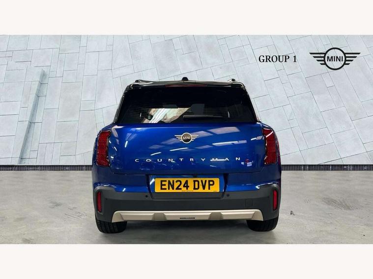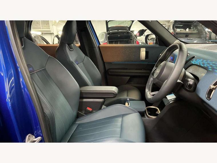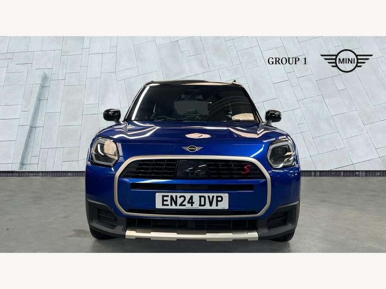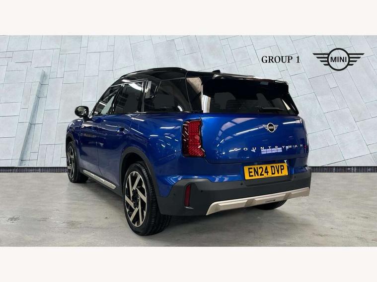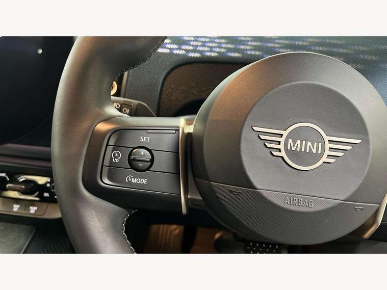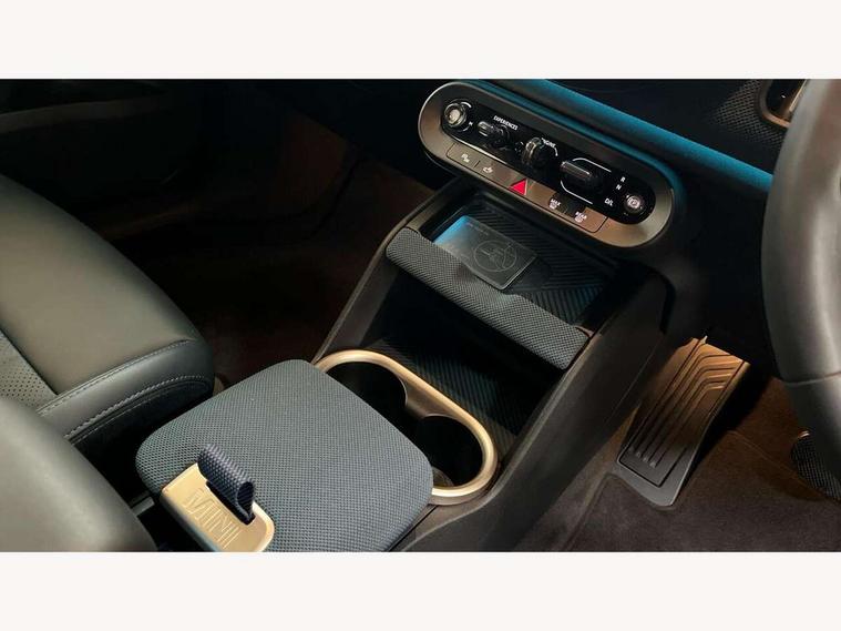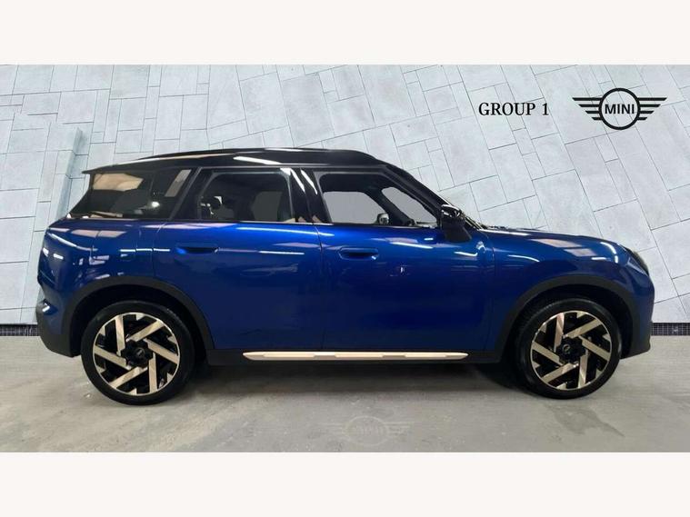 Bluetooth connection, Circular OLED Screen, Compatible mobile phone bluetooth with audio streaming, Cruise Control (DCC), Digital dashboard display, Driving Assistant Plus Preparation, E-call, Electro-mechanical speed dependant steering assistance, MINI Experience Modes, MINI Head up display, Mini navigation system, MINI TeleServices, Parking assistant in camera and ultrasound based assistance system, rear view camera, parking aid and distance control, Auto transmission with Paddles, Larger capacity fuel tank, 6 speakers, DAB Digital radio, Personal eSim, Auto tailgate, Electric adjustable heated door mirrors, Front and rear electric windows, Heated rear window, High beam assistant, Interior rear-view mirror with automatic anti-dazzle function, LED daytime running lights, LED headlights with extended contents including Adaptable light signatures, LED rear lights, LED third brake light, Logos in Vibrant Silver, Rain sensor with auto headlights, Rear side wing doors, Rear window wiper, Roof rails, Vibrant silver grille surround, 3 Seat sliding rear bench in 2nd row, 60/40 split rear bench seat, Anthracite headliner, Auto air conditioning, Driver and front passenger seat heating, Floor mats, Front armrest, Front headrests, Front sport seats, Heated steering wheel, Height and length steering column adjustment, Lidded storage box in Petrol knit, Luggage compartment separating net, Rear headrests, Seat adjustment for rear seats, Single front passenger seat, Sport Vescin Steering Wheel, Sunvisors with vanity mirrors, Vescin synthetic leather upholstery, Vibrant Silver sill inlay, Wireless charging tray, Interior and exterior mirror package - Mini Countryman, 3x3 point rear seat belts, 6 Airbags - front, side, head and seat belt tensioners, ABS, DSC - Dynamic Stability Control, Electronic handbrake, Electronic Stability Programme (ESP), Front ISOFIX (iSize), Hill descent control, Hill hold assist, Hill start assist, Manual rear child locks, Traction control, Tyre pressure monitoring system, Warning triangle, Alarm system with tilt sensor, monitoring doors, bonnet interior and tailgate, Auto drive away locking, Comfort access system, Deadlocking function, Electronic vehicle immobiliser, Locking wheel bolts, Remote control locking, Start/stop toggle with keyless go, Petrol/Brown dashboard knit, MINI Mobility Kit,