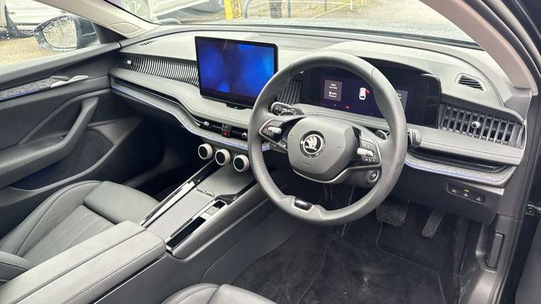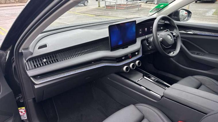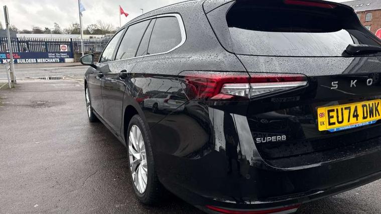 13" touchscreen display with satellite navigation, 4x USB-C ports (2x in front centre console and 2x in rear) (45W), Adaptive cruise control with speed assist, lane assist plus and traffic tram assist, Blind spot detection with door exit warning, Bluetooth system, CareConnect and Emergency Call, ChatGPT functionality, Drive mode selection, Driver fatigue sensor, Electrically operated boot with virtual pedal, Front assist with extended predictive pedestrian protection, Front cross traffic assist, PAS, Quick start all heating software functionality, Rear view camera with washer, Stop/start engine system, Traffic sign recognition, Turn assist with evasive assistance, Virtual Cockpit - 10.25" digital display, Voice control system, Wireless charging for one smartphone (15W) with cooling function, Wireless smartlink apple carplay, SmartLink+ android auto, DAB Digital radio, Display cleaner, FM radio connection, Web radio connection, Acoustic side windows and interior noise suppression, Backdrop lighting, Body colour door handles, Body coloured door mirrors, Chrome roof rails, Chrome window surround, Dynamic range control with poor weather light and integrated fog light, Electrically adjustable, heated, folding and driver side auto-dimming door mirrors with memory function, integrated indicators and logo projection, Frameless auto-dimming rear view mirror with USB-C, Front windscreen with heat-insulating glass, Ice scraper in fuel tank cap, LED 3rd brake light, Light assist with High beam control, Light assistant (coming/leaving home/tunnel light), Privacy glass, Rear fog lights (x2), Rear roof spoiler, Rear side wing doors, Rear windscreen wiper, Tow bar preparation, Unique dark chrome design logo on alloy wheels, Unique dark chrome grille surround with dark chrome rib elements, Windscreen wipers with rain sensor, 12V socket 1x centre console 1x boot, 12V socket and 2x cargo elements in boot, 14-way electrically adjustable, memory, front seats with 4-way pneumatic lumbar support, and extendable thigh support with smart comfort entry aid, 2 spoke multifunction steering wheel with DSG paddles, 3 seat bench in 2nd row, 4x foldable bag hooks in boot, 60:40 Split folding rear seats, Advanced massage function for front seats, Bottle holders in the front doors 1.5 litre bottle and rear 1.5 litre bottle, Cup holder in front with easy open mat, Front and rear footwell illumination, Front armrest with storage box, Front sports comfort seats, Heated and ventilated front seats, Height adjustable front and rear head restraints, Height adjustable front passenger seat, Illuminated glovebox, Interior lights with control switches, Isofix child seat fittings in outer rear and front passenger seats, LED front and rear reading lights, Multi colour ambient lighting, Single front passenger seat, Skoda lettering on steering wheel, Storage pockets on back of front seats, Sun visors with illuminated vanity mirrors, Ticket holder on A Pillar, Tri zone climate control, Umbrella in driver's door, Light and view package - Superb, Transport package - Superb Estate, 3 rear seatbelts, 8 Airbags - Front driver and passenger, front side driver and passenger, centre, curtain front and rear, drivers knee, Crew protect assist, Driver and passenger seatbelts with warning light, Electronic parking brake, ESC including ABS, EBV, MSR, ASR, EDS, HBA, DSR, RBS, CBC, multi-collision brake (MKB) and Auto hold, Hill hold assist, Power operated child lock in rear doors, Alarm with interior monitoring tilt sensor and back up horn, Backrest remote release from trunk, Electronic engine immobiliser, Keyless start/stop, Remote central locking with SAFE system, Third key, Walk away locking, Decorative front door sills, Tyre repair kit,