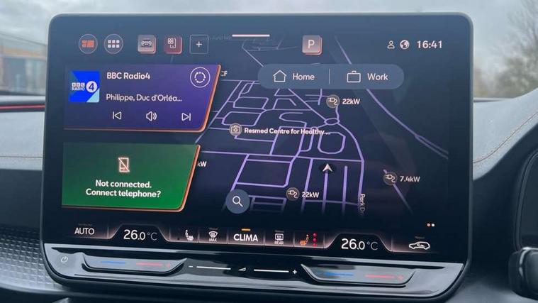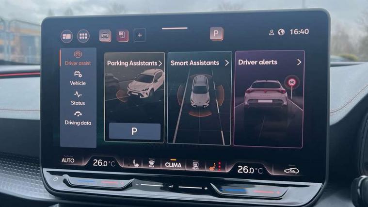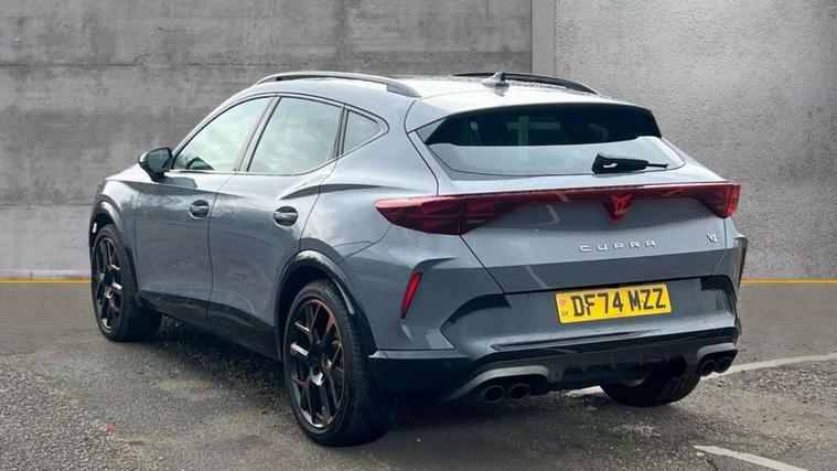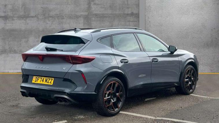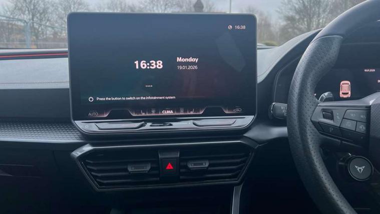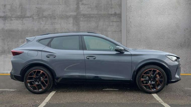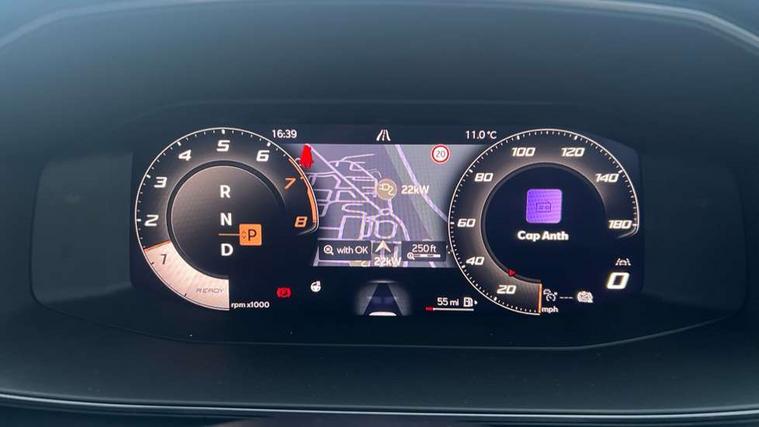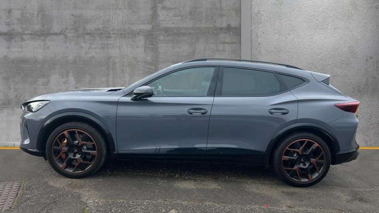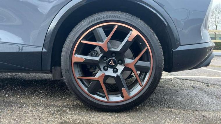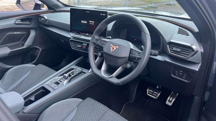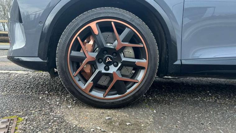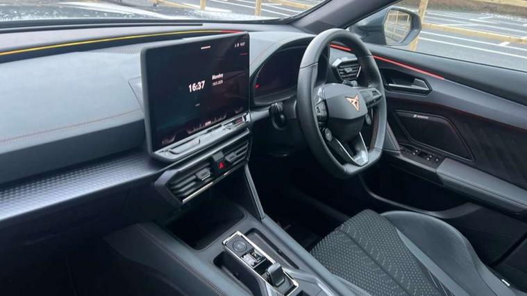 10.25" digital cockpit and configurable dashboard, Adaptive cruise control with follow-to-stop and speed limiter, Advanced driver alert system, Advanced lane assist with semi-automatic vehicle control in a medical emergency and traffic jam assist, Dynamic chassis control with driving profile selection (Comfort, Sport, CUPRA, Individual), Dynamic road sign display, Emergency steering support with turn assist, Forward collision warning with automatic braking, Full link phone integration, Intelligent park assist, RPM, trip computer, outside temp gauge, instrument light brightness, low fuel warning light, lights on reminder, gearshift indicator, Service interval indicator, Side and exit assist, Speed sensitive power steering, Start/stop system with regenerative braking, Top view camera, Virtual pedal and electric tailgate, Voice control system, Wired Android Auto, Wireless apple carplay, Wireless phone charger, Adaptive chassis control with continuous operation, CUPRA sport suspension, Electronic locking differential and dynamic traction support, 2 front and 2 rear USB type C sockets, Immersive by Sennheiser TM - 10 speakers, 1 central speaker, 1 subwoofer, Media system with navigation, 12.9" touchscreen display, voice control, DAB, steering wheel mounted controls, Auto dimming rear view mirror, Black roof spoiler, Body colour door handles, Body coloured bumpers, Dark grey wing mirror, Daytime running light with automatic headlight control and coming home feature, Door panel ambient lighting, Dynamic headlight range control, Electric front/rear windows, Electrically adjustable heated and folding door mirrors with memory function, Gloss black roof rails and window surrounds, High beam assist, LED 3rd brake light, LED front fog lamps with cornering function, LED Taillights with dynamic indicator, Matrix LED headlights with multifunction camera, Rain sensing wipers, Rear diffuser with twin exhaust pipe on each side, Rear fog lights, Rear side wing doors, Rear wash/wipe, Side skirts, Tinted rear windows, Welcome lights (within exterior mirror housing), 12V socket, 2 front and 2 rear reading lights, 3 seat bench in 2nd row, 60/40 split rear bench seat with armrest and mechanical seat release, Black headlining, Black interior roof lining, Cupra sports pedals, Dust/pollen filter, Electrically adjustable front seats with lumbar support and memory function, Front and rear head restraints, Front centre armrest, Heated front seats, Heated supersports multifunction leather steering wheel with satellite buttons and gear shift paddles, Height/reach adjust steering wheel, Illuminated aluminium doorsteps, Illuminated interior front door sills, Illuminated sunvisor with mirror, Isofix, Leather dashboard, door insert and side trim panel, LED smart wraparound lighting, PVC/Textile upholstery + cup bucket seats, Satellite steering wheel, Single front passenger seat, Three zone climate control with control panel in rear, Variable luggage/load compartment floor, 3 point seatbelts on all rear seats, ABS, Akebono brakes, Brake control system - ESC and brake booster, Child proof door locks, Driver and front passenger airbags with front passenger airbag de-activation, Driver and front passenger knee airbag, Electronic parking brake, Hill hold control, Performance brakes with front brembo calipers, Pre-crash front and rear seat belt tensioner, window closure and hazard lights, Public e-call, Seat belt reminder for front and rear seats, Side airbag for front and rear with curtain airbags, Tyre pressure monitoring system, Anti theft alarm system, KESSY Advanced - Keyless start, keyless entry with SAFELOCK, Locking wheel bolts, Copper and aluminium interior detailing, 19" Hailstorm forged machined R black and copper alloy wheels, Breakdown and tool kit,