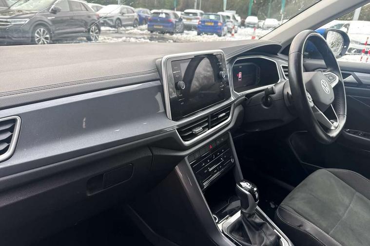 10.25" Digital cockpit pro, Advanced driver attention and drowsiness monitor, Bluetooth mobile phone interface, Driver tips and journey analysis, Emergency call service, Lane keeping system Lane Assist, Modified key software - reduce switch off time for key status change to Long no motion, Online services, Park assist including front and rear parking sensors, Service interval indicator, Tailgate/trunk lid release from outside, Think blue trainer driver tips and journey analysis, Warning sound and light for front seatbelts unfastened, Wireless app connect, Battery regeneration during braking, Start/stop function with battery regeneration, Diversity antenna for FM reception, Music playback - MP3, WMA and AAC files, Premium USB cable in choice of either Apple or Android smartphone compatibility, SD card slot, Simultaneous pairing of 2 compatible mobile devices, Title and cover art display, We Connect and We Connect Plus functionality, 3rd brake light, Auto dimming interior rear view mirror, Automatic hazard lights activation under emergency braking, Automatic headlight control with LED separate daytime running lights with coming/leaving home function, Body colour sports bumpers with silver metallic underbody fascia, Dynamic headlight range control with self adjusting whilst driving, Extended roof spoiler, Exterior mirrors aspherical on driver side, convex on front passenger side, External USB type C socket and charging sockets, Front windscreen wiper with intermittent wipe and 4 position delay, Heated rear window, LED rear combination lamps, LED rear number plate lights, LED tail lamp rear comination lamps, Light mode for poor weather, rain, fog or snow, Power windows with comfort operation and circuit breaker, Rain sensor, Rear exhaust tailpipe, Rear fog light on one side and reversing lights on both sides, Rear side wing doors, Rear wash/wipe with intermittent wipe setting, Remote electrically foldable door mirrors, puddle lights and reverse activated passenger's door mirror, 12V power socket in centre console, 3 rear head restraints, 3 seat bench in 2nd row, 4 load lashing points in luggage compartment, Air care climatronic air conditoning system with active combination filter and 2-zone temperature control, Chrome plated radiator grille inserts, air vent surrounds and light switch surrounds, Door and side trim panel with leatherette insert, Drawer under drivers seat, Front + rear carpet mats, Front centre armrest, Front comfort sports seats, Front cupholders x 2, Front footwell illumination, Instrument lighting, white adjustable panel illumination, Interior ambient lighting and surround lighting, Interior light delay, Isofix child seat preparation, Leather gearshift handle, LED interior light with switch off delay/dimmer and 2 front/rear LED reading lights, Load-through provision with cup holder when folded down ('Unsplit rear seat bench, split folding backrest, with centre armrest), Luggage compartment lighting, Non-folding front passenger seat backrest, Single front passenger seat, Storage compartment in left and right luggage area, Storage compartment in rear doors, Storage compartments in driver and front passenger doors, Sunvisors with illuminated vanity mirrors, Variable boot floor, height adjustable and removable, Driver assistance pack without proactive passenger protection - T-Roc, 3 point height adj front seatbelts + pretensioners, 3 point seatbelts in outer rear with ECE label, ABS, Child locks on rear doors, Driver and front passenger airbag with front passenger airbag deactivation, Driver and front passenger safety-optimised head restraints, Drivers seatbelt reminder, Electronic parking brake, Electronic Stability Control (ESC) inc EDL (Electronic Differential Lock) and ASR (Traction Control), Front and rear passengers curtain airbag system including front side airbags, Front assist with city emergency braking and pedestrian monitoring, Front seat side impact airbags, Predictive pedestrian protection, Rear disc brakes, Two tone horn, Tyre pressure loss indicator, Volkswagen roadside assistance, Anti-theft alarm system with interior monitoring, backup horn, and towing protection, Remote central locking with SAFELOCK, radio remote control with 2 remote control folding keys, Trims for alloy wheels,