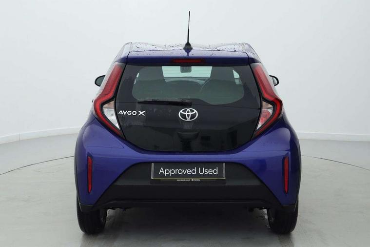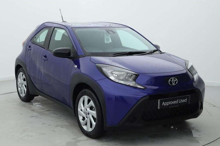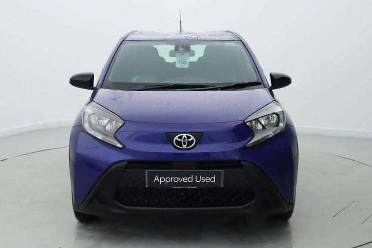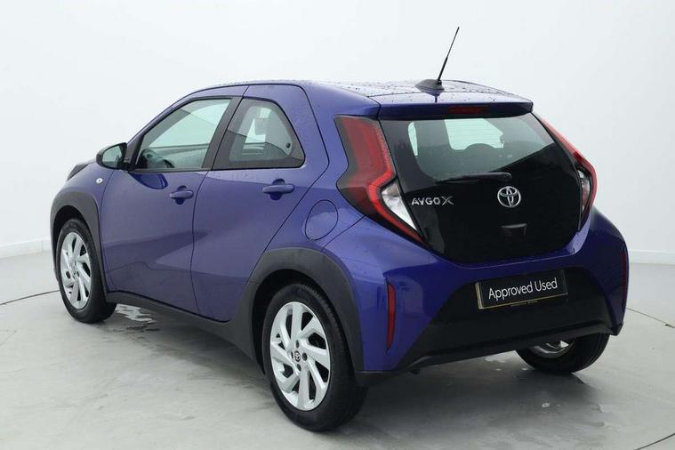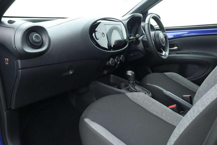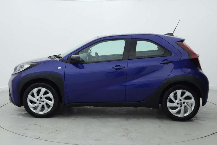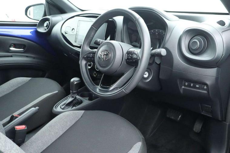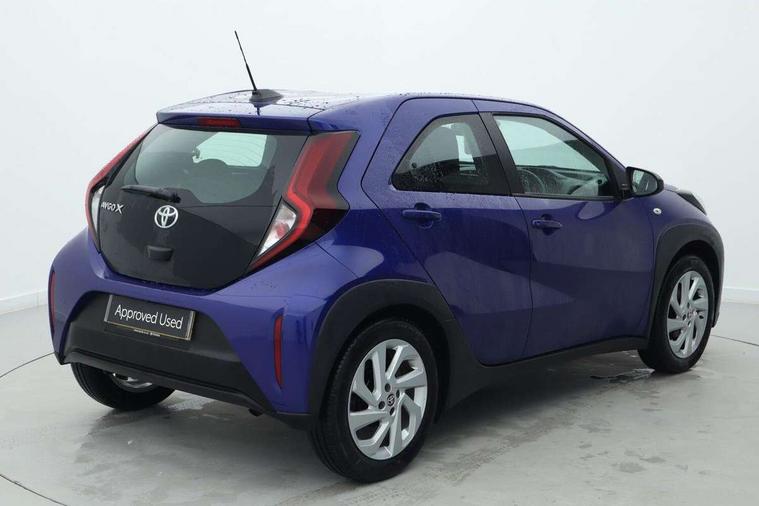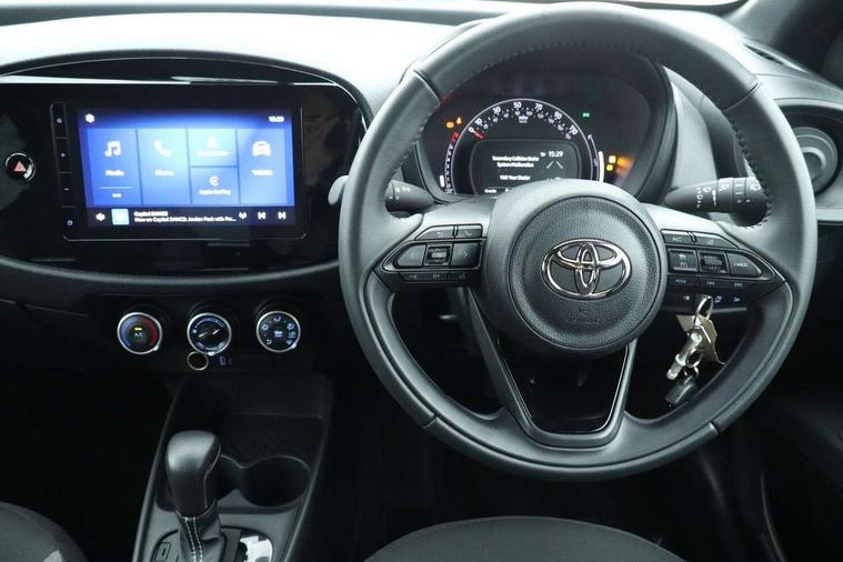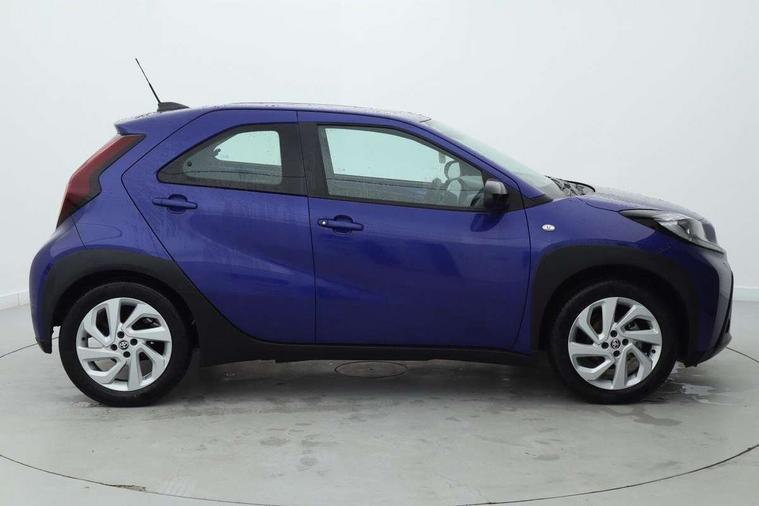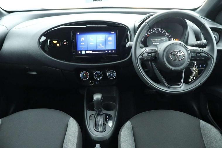 4.2" TFT colour screen, Adjustable speed limiter, Analogue speedometer, Bluetooth connectivity, Digital tachograph, Driver attention alert system, eCall emergency call system, ECO-driving indicator, Electric power steering, Intersection turn assist, Key reminder warning, Noise reduction kit, Pre collision system with emergency steering assist, Reversing camera with static guide lines, Smart phone integration with Apple car play/Android Auto, Speed limit display, Start and stop, Vehicle Stability Control (VSC), 4 speakers, 9" HD multimedia display touch screen with Toyota smart connect, DAB digital audio broadcast, USB connector, Auto headlights, Automatic headlights cut-off, Bicycle towing hook, Black lower front grille, Black rear bumper, Black side protection mouldings, Black upper front grille, Black wheel arch mouldings, Body colour door handles, Body coloured front bumper, Boot door scuff plate, Electric heated door mirrors, Follow me home headlights, Front power windows, Gloss black door mirrors, Headlight cut-off reminder, LED daytime running lights, LED front light guide, LED High mounted stop lamp, Manual day/night rear view mirror, Manual headlight levelling, Pagoda roof, Power adjustable door mirrors, Power back door, Projector halogen headlights, Rain sensor, Rear combination lights LED bulb type, Rear side wing doors, Rear windscreen defogger, Rear windscreen wiper, Short antenna, Variable intermittent windscreen wipers, 12v power outlet - front, 2 seat bench in 2nd row, 3 spoke leather steering wheel, 50/50 split folding rear seat, Adhesive roof headlining, Adjustable speed limiter switch on steering wheel, Audio and telephone switches on steering wheel, Black insert on steering wheel, Boot light, Centre room light, Chrome interior door handles, Chrome surround on air conditioning buttons, Clean air filter, Fabric upholstery, Floor mats, Front and rear cup holders, Front head rest deco art, Front head restraints, Gear shift indicator, Height adjustable driver seat, Intelligent adaptive cruise control switch on steering wheel, ISOFIX child restraint system on rear seats, Lane departure alert switch on steering wheel, Leather gearshift knob, Light grey roof lining, Manual air conditioning, Manual tilt steering wheel, Manually reclining and sliding driver seat, Manually reclining and sliding front passenger seat, Multimedia switches on steering wheel, Pollen filter, Rear door pockets, Rear head restraints, Resin console box storage, Satin silver insert on gear shift knob, Silver stitching on gear shift knob, Single compartment glovebox with lights, Single front passenger seat, Soft tonneau cover, Sun visors with mirror on driver and passenger side, Voice recognition switch on steering wheel, Toyota safety sense pack - Aygo X, Anti lock braking system + Electronic brake force distribution, Child safety door lock, Emergency brake light signal (EBS), Hill start assist control (HAC), Passenger airbag on/off switch, Seat belt reminder for front and rear seats, Supplement restraints system (SRS) - 6 airbags, Traction control, Tyre pressure warning system, Immobiliser, Remote power door locks, Black air vent surround, Black wheel centre caps, Tyre repair kit,