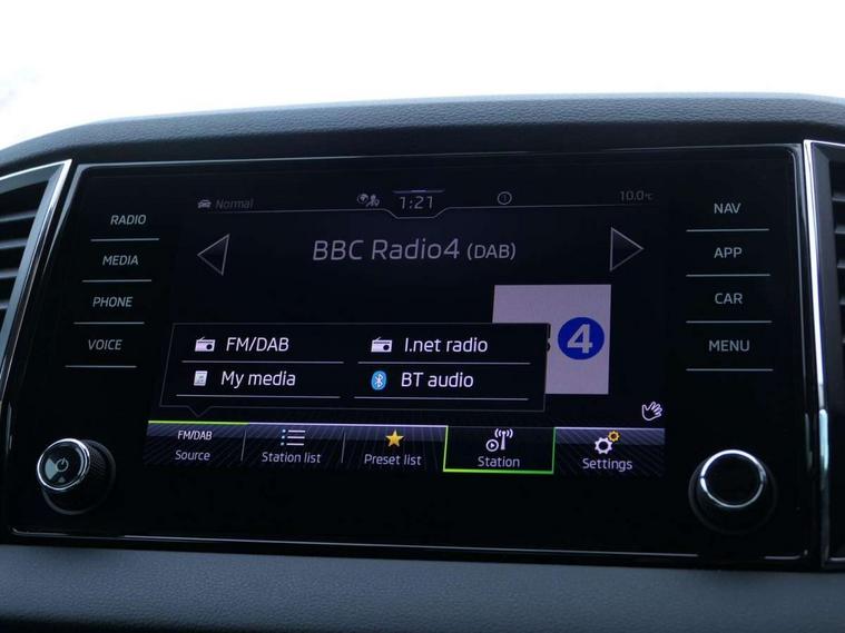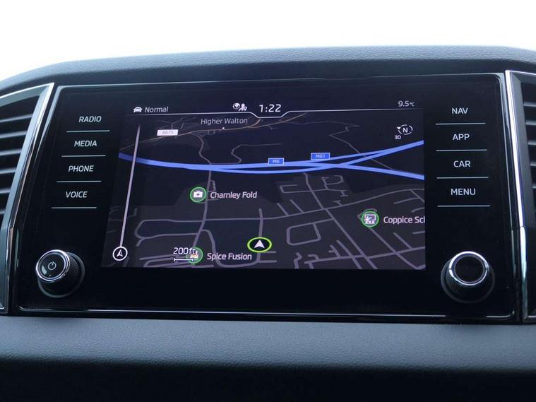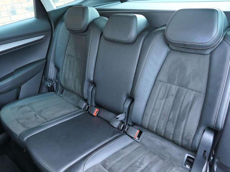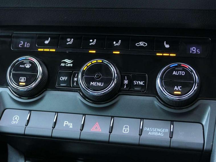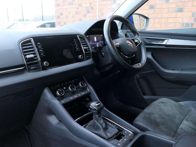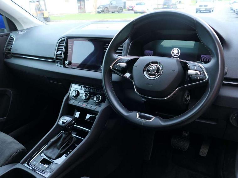 8" Digital display, Care connect, Driver fatigue sensor, Emergency services call system, Outside temperature gauge, Service interval indicator, SmartLink wireless for Apple and wired for Android, Start/stop system with regenerative braking, USB C Port x 2 in front centre console, 8 Speakers, DAB radio with Bluetooth, USB connection, Acoustic glass, Aero front windscreen wipers with intermittent function, Auto dimming rear view mirror with light and rain sensors, Black electric window control buttons, Body colour door mirrors and handles, Dynamic headlight range control with cornering light function, Electric front and rear windows with child proof lock, Heated rear windscreen, LED daytime running lights, LED rear lights with high functionality welcome effect and dynamic indicators, Light assistant (coming/leaving home/tunnel light), Plastic scuff plates, Privacy glass, Rear side wing doors, Rear spoiler, Rear window wiper with washer system and intermittent control, Safety reflectors on front doors, 1.5 litre bottle holders in driver and front passenger door panels, 12V socket in boot, 12v socket in front centre armrest with storage compartment and rear air vents, 2 Folding hooks and nets in boot, 2 spoke leather heated multifunction steering wheel with DSG paddles, 2 x Tablet holder, 3 rear height adjustable headrests, 3 seat bench in 2nd row, 4 foldable roof handles with rear coat hooks, Black floor carpet, Chrome inner door handles, Decorative door sills with KAROQ badging, Double sided boot floor, Foldable hooks in the boot, Front head restraints, Height adjustable front three point seats belts with tensioners, Height/reach adjust steering wheel, Ice scraper, Illuminated glovebox, Illuminated luggage compartment, Isofix child seat preparation for front passenger seat, Isofix child seat preparation outer rear, Manual lumbar support for front seats, Pen holder, Pollen filter, Rear boot cover, Rear reading lights, Rubbish bin door, Safety vest holder, Single front passenger seat, Storage box in upper central dashboard closed, Sunvisors with illuminated vanity mirrors, Textile floor mats, Ticket holder, VarioFlex seats with standard rear seat release, Chrome roof rails + chrome pack - Karoq, Parking pack - Karoq, Automatic door unlocking in case of crash, Automatic fuel cut off in case of crash, Child locks on rear doors, Driver airbag, Electronic parking brake with auto hold function, Emergency rear braking signal, ESC including ABS, MSR, ASR, EDS, HBA, DSR, RBS, MKB and traction control, Front side airbags, Hill hold control, Knee airbags, Passenger airbag with switch-off function, Pedestrian monitor, Seatbelt reminder signalisation and pretensioner for all seats, Three point seatbelts rear, Two tone horn, Tyre pressure display, Tyre pressure monitor, Alarm with interior monitoring, back up horn and tilt sensor with safe function, Electronic engine immobiliser, Keyless entry and start/stop, Remote central locking with 2 remote folding keys, Chrome framed air vents, 18" Procyon silver alloy wheels with anthracite aero inserts, Anti-theft wheel bolts protection, Storage on wheel cover, Tool kit,