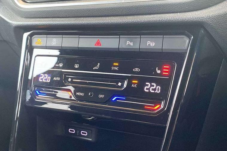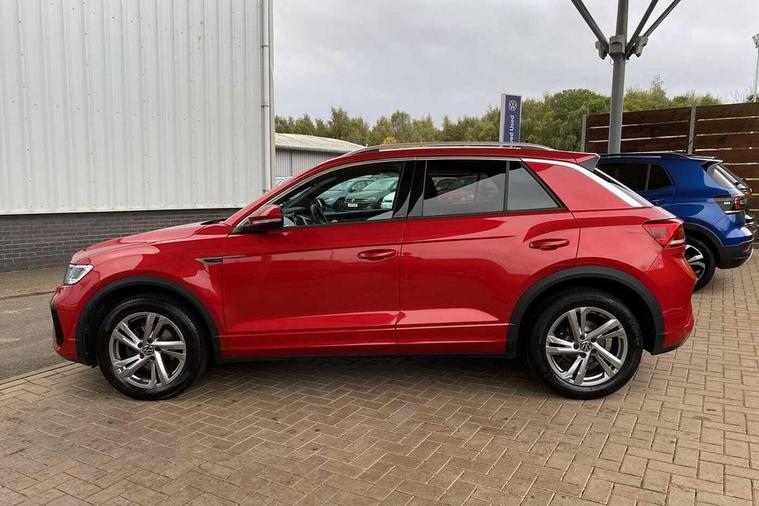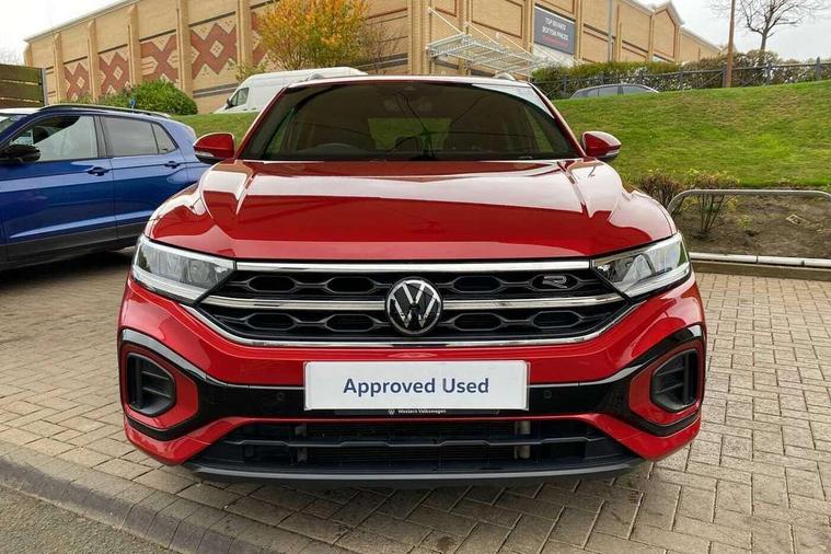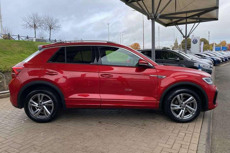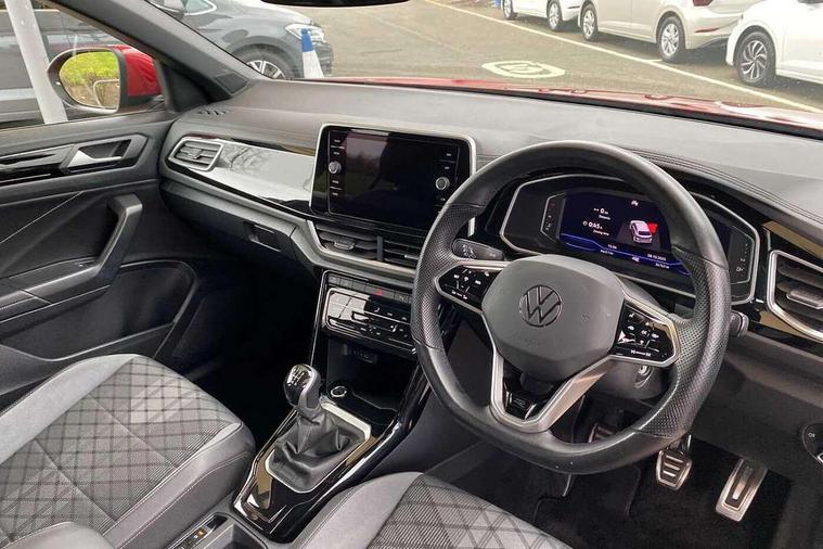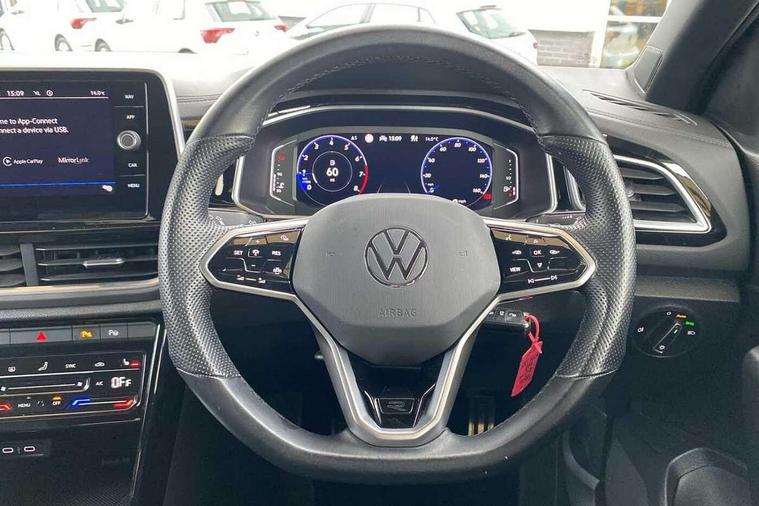 10.25" Digital cockpit pro, Bluetooth mobile phone interface, Driver alert system with fatigue detection, Driver tips and journey analysis, Emergency call service, Lane keeping system Lane Assist, Modified key software - reduce switch off time for key status change to Long no motion, Online services, Park assist including front and rear parking sensors, Service interval indicator, Tailgate/trunk lid release from outside, Think blue trainer driver tips and journey analysis, Warning sound and light for front seatbelts unfastened, Wireless app connect, Battery regeneration during braking, Start/stop function with battery regeneration, Diversity antenna for FM reception, Front and rear 6 speakers, Music playback - MP3, WMA and AAC files, Premium USB cable in choice of either Apple or Android smartphone compatibility, SD card slot, Simultaneous pairing of 2 compatible mobile devices, Title and cover art display, We Connect and We Connect Plus functionality, 3rd brake light, Auto dimming interior rear view mirror, Automatic hazard lights activation under emergency braking, Automatic headlight control with LED separate daytime running lights with coming/leaving home function, Extended roof spoiler, Exterior mirrors aspherical on driver side, convex on front passenger side, External USB type C socket and charging sockets, Front windscreen wiper with intermittent wipe and 4 position delay, Heated rear window, LED Plus headlamps, LED rear combination lamps, LED rear number plate lights, LED tail lamp rear comination lamps, Power windows with comfort operation and circuit breaker, R-Line design body coloured bumpers, Rain sensor, Rear exhaust tailpipe, Rear fog light on one side and reversing lights on both sides, Rear side wing doors, Rear wash/wipe with intermittent wipe setting, Remote electrically foldable door mirrors, puddle lights and reverse activated passenger's door mirror, 12V power socket in centre console, 3 rear head restraints, 3 seat bench in 2nd row, 4 load lashing points in luggage compartment, Air care climatronic air conditoning system with active combination filter and 2-zone temperature control, Black roof lining, Chrome plated radiator grille inserts, air vent surrounds and light switch surrounds, Door and side trim panel with leatherette insert, Drawer under drivers seat, Front + rear carpet mats, Front centre armrest, Front cupholders x 2, Front footwell illumination, Front reading light, Front scuff plates with R logo, Instrument lighting, white adjustable panel illumination, Interior ambient lighting and surround lighting, Interior light delay, Isofix child seat preparation, Leather gearshift handle, Load-through provision with cup holder when folded down ('Unsplit rear seat bench, split folding backrest, with centre armrest), Luggage compartment lighting, Single front passenger seat, Stainless steel pedals, Storage compartment in left and right luggage area, Storage compartment in rear doors, Storage compartments in driver and front passenger doors, Sunvisors with illuminated vanity mirrors, Variable boot floor, height adjustable and removable, Driver assistance pack without proactive passenger protection - T-Roc, 3 point height adj front seatbelts + pretensioners, 3 point seatbelts in outer rear with ECE label, ABS, Child locks on rear doors, Driver and front passenger airbag with front passenger airbag deactivation, Driver and front passenger safety-optimised head restraints, Drivers seatbelt reminder, Electronic parking brake, Electronic Stability Control (ESC) inc EDL (Electronic Differential Lock) and ASR (Traction Control), Front and rear passengers curtain airbag system including front side airbags, Front assist with city emergency braking and pedestrian monitoring, Front seat side impact airbags, Hill start assist, Predictive pedestrian protection, Rear disc brakes, Single tone horn, Tyre pressure loss indicator, Volkswagen roadside assistance, Alarm with interior protection, Anti-theft alarm system with interior monitoring, backup horn, and towing protection, Remote central locking with SAFELOCK, radio remote control with 2 remote control folding keys, Trims for alloy wheels,