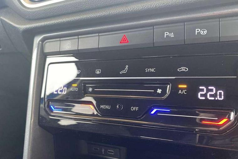 10.25" Digital cockpit pro, Bluetooth mobile phone interface, Driver alert system with fatigue detection, Driver tips and journey analysis, Emergency call service, Lane keeping system Lane Assist, Modified key software - reduce switch off time for key status change to Long no motion, Online services, Park assist including front and rear parking sensors, Service interval indicator, Tailgate/trunk lid release from outside, Think blue trainer driver tips and journey analysis, Warning sound and light for front seatbelts unfastened, Wireless app connect, Battery regeneration during braking, Start/stop function with battery regeneration, Diversity antenna for FM reception, Front and rear 6 speakers, Music playback - MP3, WMA and AAC files, Premium USB cable in choice of either Apple or Android smartphone compatibility, SD card slot, Simultaneous pairing of 2 compatible mobile devices, Title and cover art display, We Connect and We Connect Plus functionality, 3rd brake light, Auto dimming interior rear view mirror, Automatic hazard lights activation under emergency braking, Automatic headlight control with LED separate daytime running lights with coming/leaving home function, Body colour sports bumpers with silver metallic underbody fascia, Dynamic headlight range control with self adjusting whilst driving, Extended roof spoiler, Exterior mirrors aspherical on driver side, convex on front passenger side, External USB type C socket and charging sockets, Front windscreen wiper with intermittent wipe and 4 position delay, Heated rear window, LED Plus headlamps, LED rear combination lamps, LED rear number plate lights, LED tail lamp rear comination lamps, Light mode for poor weather, rain, fog or snow, Power windows with comfort operation and circuit breaker, Rain sensor, Rear exhaust tailpipe, Rear fog light on one side and reversing lights on both sides, Rear side wing doors, Rear wash/wipe with intermittent wipe setting, Remote electrically foldable door mirrors, puddle lights and reverse activated passenger's door mirror, 12V power socket in centre console, 3 rear head restraints, 3 seat bench in 2nd row, 4 load lashing points in luggage compartment, Air care climatronic air conditoning system with active combination filter and 2-zone temperature control, Chrome plated radiator grille inserts, air vent surrounds and light switch surrounds, Door and side trim panel with leatherette insert, Drawer under drivers seat, Front + rear carpet mats, Front centre armrest, Front comfort sports seats, Front cupholders x 2, Front footwell illumination, Instrument lighting, white adjustable panel illumination, Interior ambient lighting and surround lighting, Interior light delay, Isofix child seat preparation, Leather gearshift handle, LED interior light with switch off delay/dimmer and 2 front/rear LED reading lights, Load-through provision with cup holder when folded down ('Unsplit rear seat bench, split folding backrest, with centre armrest), Luggage compartment lighting, Non-folding front passenger seat backrest, Single front passenger seat, Storage compartment in left and right luggage area, Storage compartment in rear doors, Storage compartments in driver and front passenger doors, Sunvisors with illuminated vanity mirrors, Variable boot floor, height adjustable and removable, Driver assistance pack without proactive passenger protection - T-Roc, 3 point height adj front seatbelts + pretensioners, 3 point seatbelts in outer rear with ECE label, ABS, Child locks on rear doors, Driver and front passenger airbag with front passenger airbag deactivation, Driver and front passenger safety-optimised head restraints, Drivers seatbelt reminder, Electronic parking brake, Electronic Stability Control (ESC) inc EDL (Electronic Differential Lock) and ASR (Traction Control), Front and rear passengers curtain airbag system including front side airbags, Front assist with city emergency braking and pedestrian monitoring, Front seat side impact airbags, Predictive pedestrian protection, Rear disc brakes, Single tone horn, Tyre pressure loss indicator, Volkswagen roadside assistance, Alarm with interior protection, Anti-theft alarm system with interior monitoring, backup horn, and towing protection, Remote central locking with SAFELOCK, radio remote control with 2 remote control folding keys, Trims for alloy wheels,