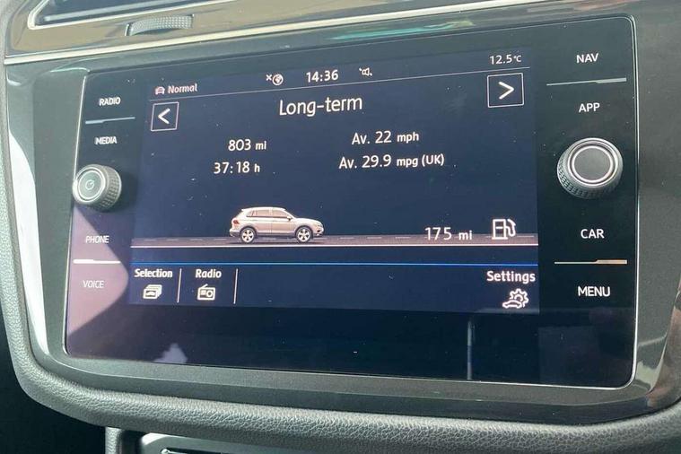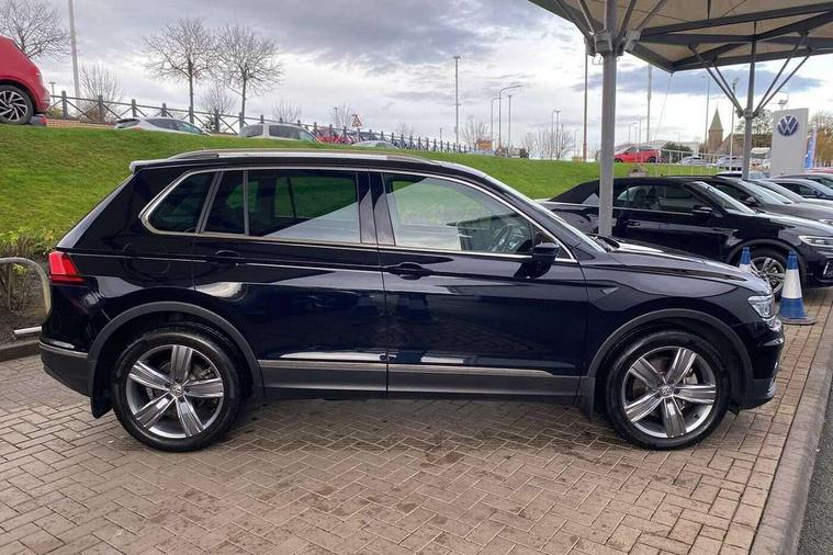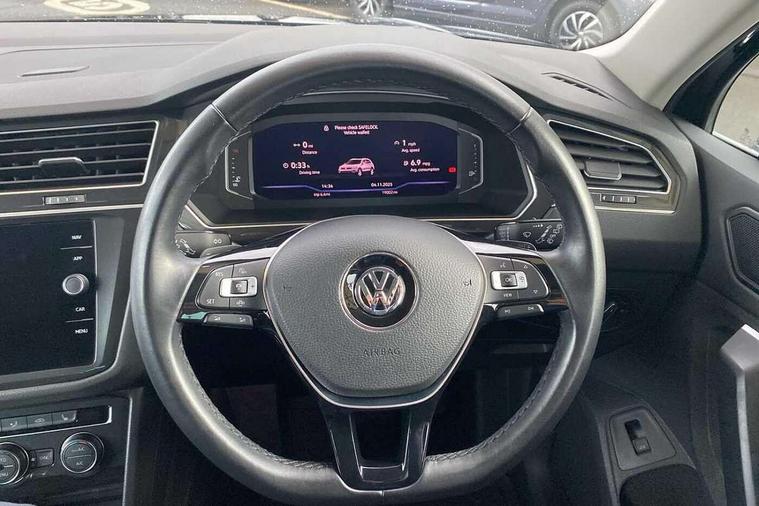 2D/3D map view, Active information display, Adaptive cruise control, App-Connect, Bluetooth phone integration system, Car information display, Coasting function, Distance control assist, Drive mode selector, Driver profile selection, Front assist, radar sensor controlled distance monitor, city emergency braking + predictive pedestrian protection, Instrument cluster, Lane assist, Lights on warning, Multifunction computer with visual gear change recommendation for fuel consumption, Outside temperature display, Service interval indicator, Speed limiter, Start/Stop function, Warning sound and light for doors and tailgate open, Battery regeneration during braking, XDS electronic differential lock for improved traction and handling, 2 x USB connection + USB charging socket, 4 X 20 watt output, DAB Digital radio, SD card slot, Simultaneous pairing of 2 compatible mobile devices, SMS functionality - read, compose and send SMS messages using touch-screen display, Title and cover art display, 3D effect cherry red LED rear tail lights, Auto dimming interior mirror, Automatic activation of hazard warning lights, Black grained lower door protectors with chrome inserts, Body colour door handles, Body colour door mirrors, Body coloured bumpers, Chrome side window surrounds, Chrome trimmed radiator grille, Coming/leaving home lighting function, Dusk sensor + auto driving lights, Electric panoramic sunroof with sunblind, Electrically heated and foldable door mirrors, door mirror puddle lights and reverse activated kerb view adjustment on passenger's door mirror, Front and rear electric windows, Heated rear window, High level 3rd brake light, LED headlights with dynamic light assist daytime running lights and cornering front fog lights, LED rear number plate lights, Piano black front air intake and rear diffuser, Rain sensor windscreen wipers, Rear tinted glass from B-pillar backwards approx 65% tinted, Rear windscreen washer and wiper with interval delay, Side door sills with chrome inserts, Silver front underbody protection and rear diffuser, Silver roof rails, Windscreen wipers/ intermittent wipe + 4 position delay, 12V socket in centre console storage area, 2 cup holders in front, 3 rear headrests, 3 zone climate control, 4 load lashing points, 40:20:40 split folding rear seats, Bag hook in luggage compartment, Foldable front passenger seat backrest, Front + rear carpet mats, Front centre armrest with 12v socket, Front centre armrest with storage + rear 2 air vents, Front seat back storage pockets, Front seatback folding tables, Height/reach adjust steering wheel, Illuminated driver/passenger vanity mirrors, Illuminated scuff plates, Instrument lighting white adjustable panel illumination, Interior light with delay, Isofix Preparation 2 Rear child seats, Leather gear knob, Load through provision with 2 cupholders when folded, Lockable cooled glovebox, Luggage compartment lighting, Map pockets on front seats, Passenger seat height adjuster, Removable luggage cover, Sliding/reclining rear seats, Storage compartment in driver's door, Storage compartment in passenger's door, Storage compartment in rear doors, Storage compartments in luggage area left and right, Storage tray on dashboard, Sunglasses storage, Variable boot floor, height adjustable and removable, Ambient lighting pack - Tiguan, 3 rear 3 point seatbelts, ABS+EBD+Brake assist, Active bonnet, Active pedestrian safety system, Curtain airbags, Driver/Front Passenger airbags, Driver/Passenger whiplash optimised head restraints, Drivers knee airbag, DTC - Drag torque control, Electronic parking brake with auto hold, ESC with EDL, ASR, EDTC and trailer stabilisation function, First aid kit, Front seat side impact airbags, Front side airbags, Front ventilated disc brakes and rear disc brakes, Head airbag system, Height adjustable front 3 point seatbelts + pretensioners, Hill hold control, Passenger airbag deactivate switch, Passenger knee airbag, Pre crash preventive occupant protection, Rear side airbags, Rigid safety cell with front and rear crumple zones, Two tone horn, Warning sound and light for front seat belts if unfastened, Warning triangle, Alarm with interior protection, Electronic engine immobiliser, Remote central locking with 2 remote folding keys, Chrome door trim inserts, Dark grey decorative inserts in dash and door panel, Piano black decorative inserts in centre console,