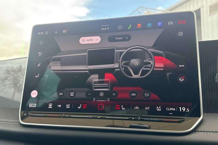 Adaptive cruise control (ACC), Advanced driver attention and drowsiness monitor, Bluetooth mobile phone interface, Car2X technology, Digital Cockpit Pro - 10.25" high resolution dash display screen with customisable menus and information, Dynamic road sign display, E-Sim card for online connectivity, eCall emergency call service, Front Assist - Autonomous emergency braking with pedestrian and cyclist monitoring, Lane change system, Side assist, Rear traffic alert and Exit warning system, Lane keeping system Lane Assist, Multifunction front facing camera, Oncoming vehicle braking when turning including swerve support, Park assistance plus with front and rear parking sensors, Power assisted steering with speed sensitive, Start/stop system with regenerative braking, Warning signal and warning light for front and rear seatbelts not fastened, Wireless App-Connect, Adaptive chassis control DCC pro includes driving mode selection, Charging cable Mode 3 Type 2 / 3 (16A), Front wheel drive, Rear shock absorption, Digital radio reception (DAB), Diversity antenna for FM reception, Ambient lighting with logo projection, Auto dimming interior rear view mirror, Automatic headlight control system, Body coloured bumpers and air intake with chrome trim, Body coloured door handles, Body-coloured exterior mirror housings, Coming/leaving home lighting function, Heat insulating glass in side and rear windows, Heat insulating windshield, Heated rear window, High level 3rd brake light, Illuminated door handle recesses, Illuminated lightline between headlamps, Rain sensor windscreen wipers, Rear fog light on one side, reversing light on both sides, Rear side wing doors, Rear wiper, 12V outlet in center console rear and in luggage compartment, 12V socket in centre console, 3 bench rear seats in 2nd row, Air care climatronic 3 zone air conditioning system with rear air conditioning control panel, Carpet mats, front and rear, Centre console with illuminated storage compartment with sliding cover and two drinks holders, Ceramique headlining, Door and side trim panel in foam film and woven fabric, Front centre armrest, ISOFIX anchors for child seats on outer rear seats and front passenger seat. Compatible with i-Size, Mechanical rear seat release, Power adjustable lumbar support in front, Rear bench seat, split folding, longitudinally movable and folding with load-through hatch and centre armrest, Safety optimised front head restraints, Single front passenger seat, Sun visors with illuminated vanity mirrors, Three rear head restraints, Variable luggage compartment floor, Comfort package with park assist pro - Tiguan, Design package - Tiguan, 3 point seat belt for centre rear seats, 3 Point seat belts in front with pretensioners, 3 point seatbelts in outer rear with ECE label, Driver and front passenger airbag with front passenger airbag deactivation, Electronic parking brake with auto hold, Front and rear curtain airbags, Front and rear side airbags, Front centre airbag, Front disc brakes, Manual child proof rear door locks, Rear disc brakes, Two tone horn, Warning triangle, Anti theft wheel bolts, Soul instrument panel, Airstop tyres, Tool kit for tyre mobility set, Tyre mobility kit including compressor and sealing foam,