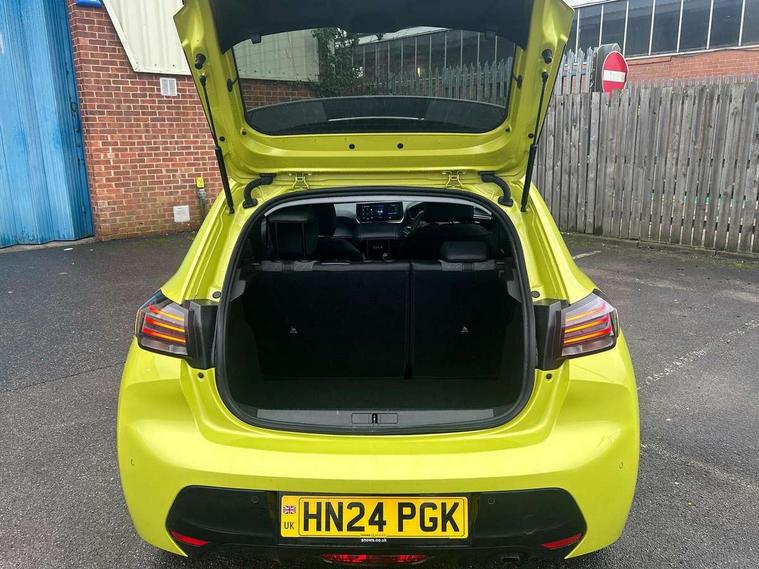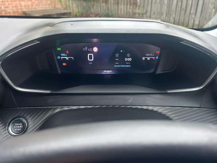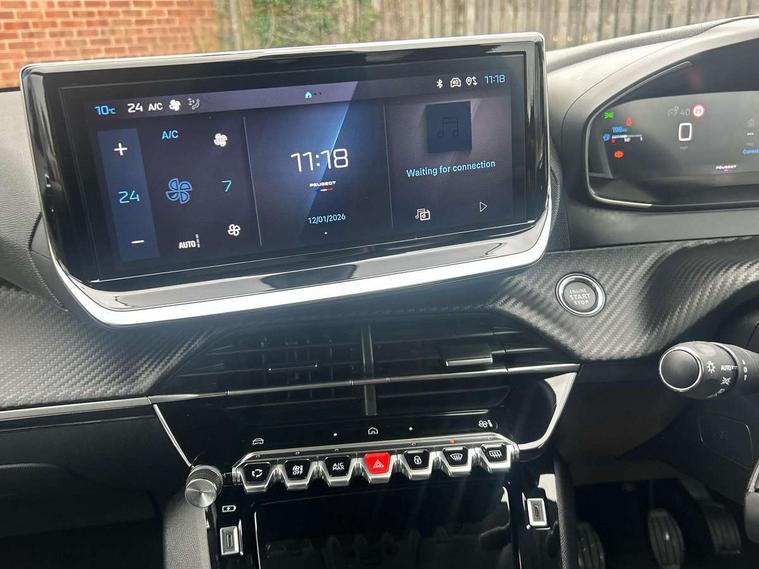 Bluetooth telephone facility, Drive mode selection(Eco/Normal), Driver attention warning, Emergency call service, Exterior temperature indicator with ice warning, Front and rear parking sensors, Multi function trip computer, PEUGEOT i-Cockpit with 10" configurable colour head up instrument panel, PEUGEOT i-Cockpit with 10" HD capacitive colour touchscreen, PEUGEOT i-Cockpit with compact steering wheel, PEUGEOT SOS and assistance, Push button start, Smart phone docking station, Speed limit recognition and recommendation, Start/stop system, Wireless mirror screen with apple carplay and android auto, 6 Speakers - 2 tweeters and 4 door speakers, DAB Digital radio, Peugeot i-connect infotainment system - 10in HD touchscreen, AM/FM/DAB digital radio, Wifi Mirroring, Bluetooth & 2 USB connection, USB-A socket (x1) and USB-C socket (x1) - rear, USB-C data and charge socket and USB-C charge socket in front, Voice recognition for radio, navigation and telephony features, 2 X Rear number plate lights, Acoustic windscreen, Antenna - Gloss Black 'fin' design, Automatic hazard light activation upon heavy brake application, Body coloured exterior door handles, Dark tinted rear side and tailgate windows, Diamond black rear spoiler (roof), Eco LED headlights with electric height adjustment, Electric heated and power folding door mirrors with courtesy floor lighting, Electrochrome rear view mirror, Gloss black B pillar, Gloss black door mirror shells, Gloss black front bumper grille with body colour accents, Gloss black rear cluster connecting strip, Headlights left on audible warning, LED 3 claw horizontal rear lighting signature with daylight function and LED brake lights, LED daytime running lights with distinctive 3 claw signature, LED Rear lighting with distinctive 3 claw horizontal signature with daylight function, LED third brake light, Model designation badges front and rear in basalt grey, One touch electric front/rear windows with pinch protection, Rear bumper with gloss black finish, Rear reversing lights, Rear side wing doors, Rear windscreen wiper triggered automatically in reverse gear, Roof spoiler, Tailgate with heated rear windscreen and wiper blade, Variable front intermittent wipers, 1/3 to 2/3 split folding rear seats, 12V socket, 3 seat bench in 2nd row, Automatic mono zone climate control air condition, Boot lighting, Driver and front passenger comfort seats, Driver and front passenger seat manual adjustment in longitudinal and back rest angle, Driver seat mechanical height adjustment, Electric power steering with reach and rake adjustable steering column, Front centre armrest with storage compartment, Front interior light with 2 reading spotlights, Gear shift indicator, High centre console with 2 cup holders, Map pockets on the backs of the front seats, Multifunction leather steering wheel, Piano keys gloss black plated toggle switches to access main functions of the vehicle, Quartz contrast stitching to front and rear door armrest, Rear centre headrest, Roof lining - light grey, Seatbelt unfastened on the move audible and visual alert for front and rear seats, Single front passenger seat, Tri material cloth/leather upholstery, Visibility pack - 208, 2x Isofix child seat fitting on outer rear seats, 3 rear 3 point seatbelts, ABS (Anti-lock Braking System) with EBD (Electronic Brakeforce Distribution) and EBA (Emergency Braking Assistance), Child locking functionality on rear doors, Driver and front passenger airbag with passenger airbag deactivation, Driver/front passenger side airbags, Electric parking brake, ESP with Hill Assist, Front and rear curtain airbags, Front and rear disc brakes, Front optimised safety headrests and 3 x rear retractable headrests with height adjustable, Front three point retractable seatbelts with force limiters, Remote plip(x2) for locking, unlocking, includes emergency key blade, Tyre pressure monitoring system, Acoustic vehicle alert system (AVAS), Alarm - Connected, volumetric , perimetric, anti lift sensor, Automatic door locking when moving off, Deadlock, Electronic code immobiliser, Remote central locking, Carbon effect Dashboard, front and rear door panel finish, 16" Noma two tone diamond cut alloy wheels, Tyre puncture repair kit,