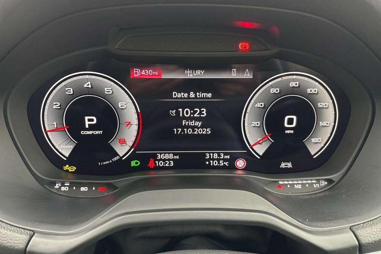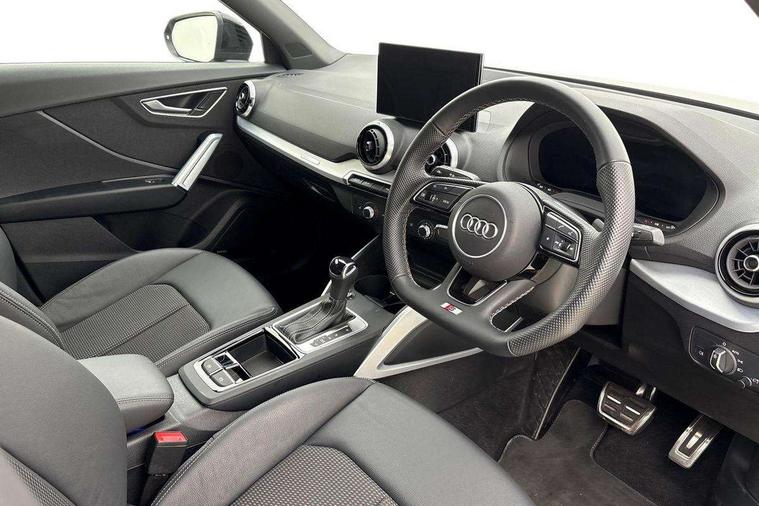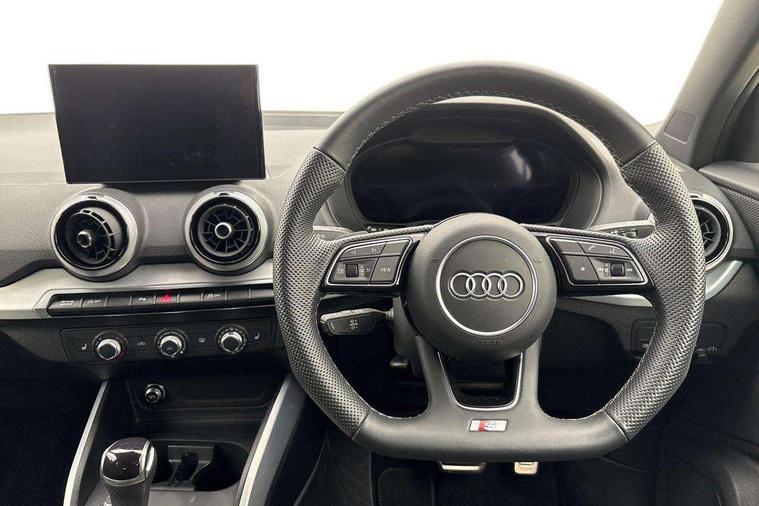 3D map display, Audi connect navigation and infotainment includes innovative services, Audi connect remote and control connects your vehicle to your smartphone, Audi drive select: S tronic - power steering assistance + engine + gearshift (modes: comfort, auto, dynamic, efficiency, individual), Audi smartphone interface - Apple carplay/Android Auto, USB connect, 2xSDXC card readers, voice control for navi, telephone, music and 3rd party apps, Audi virtual cockpit, Automatic start/stop system with recuperation, Bluetooth interface includes bluetooth audio streaming, Camera based traffic sign recognition, Cruise control, Distraction and Fatigue warning, E-call, Jukebox hard drive memory for music (10GB), Lane departure warning, MMI navigation plus with 8.8" touchscreen, Natural voice recognition, Power operated tailgate, Progressive steering, Rear parking sensors, Sport suspension, 6 passive loudspeakers, DAB Digital radio, USB type C port, Audi beam, Auto dimming rear view mirror, Black window trims, Bumper in full body colour paint finish, Electrically adjustable, folding, auto dimming and heated door mirrors with integrated LED side indicators, Front windscreen with grey tinted sunband, LED daytime running lights, LED headlights with dipped beam, high beam, position lights, indicators, LED rear lights, LED third brake light, Privacy glass - dark tinted rear and rear side windows from B-pillar backwards, Rear side wing doors, Rear wiper, Variable front intermittent wipers, Wheel arch trims in manhattan grey, 12v socket in front, 3 seat bench in 2nd row, 3 spoke flat bottomed multi-function leather sport steering wheel with gear shift paddles, 4-way electric lumbar support for front seats including manual seat height adjustment for both front seats, 60/40 split folding rear seat bench, Black carpets, Black cloth headlining, Front and rear head restraints, Front centre armrest, Front sport seats, Front/rear floor mats, Height/reach adjust steering wheel, Illuminated door sill trims with S logo, ISOFIX child seat mounting in front passenger and rear outer seats, Manual air conditioning, Single front passenger seat, Stainless steel pedals, Black styling pack - Q2, 3x3 point rear seatbelts, 6 airbags - Front, curtain and front side airbags, Electromechanical parking brake, Electronic stabilisation control including ABS, ASR and EDL, Front passenger airbag deactivation, Hill hold assist, Pre-sense front with pedestrian recognition, Seatbelt monitoring, Tyre pressure warning light with visual and acoustic warning, Warning triangle and first aid kit, Anti theft alarm, Anti theft wheel bolts, Electronically operated child locks, Remote central door locking, Aluminium interior element, Black dashboard, Gloss black centre console, Matt brushed aluminium trim inlays, Tool kit,