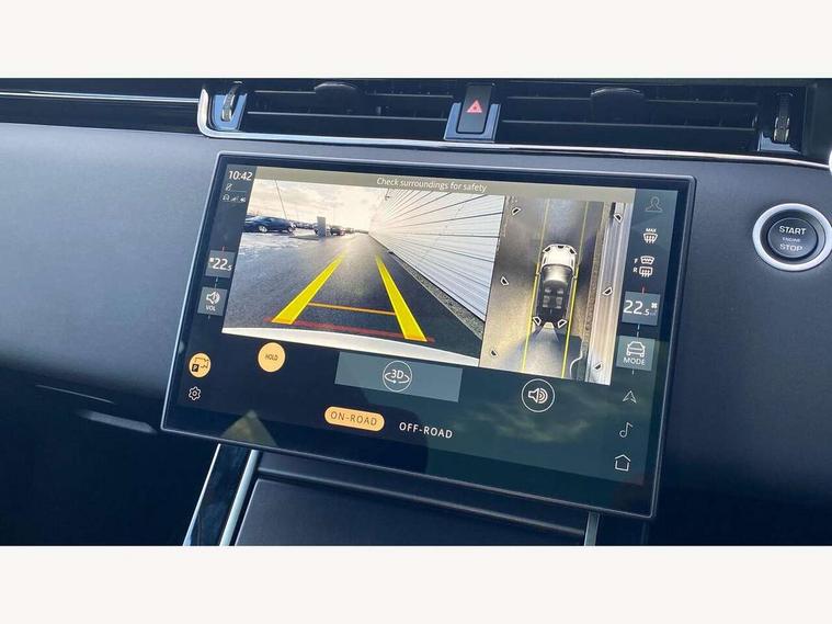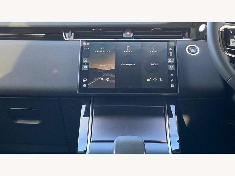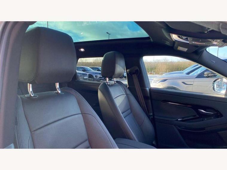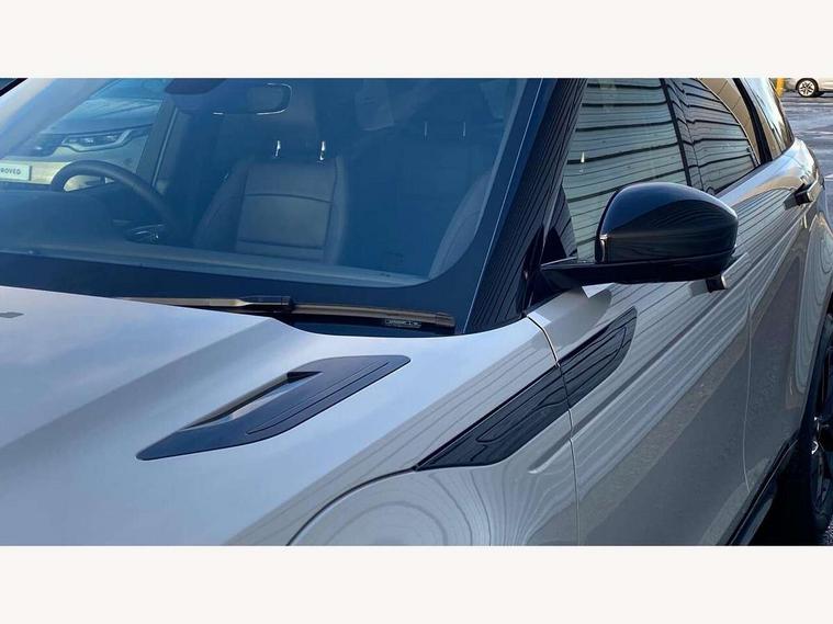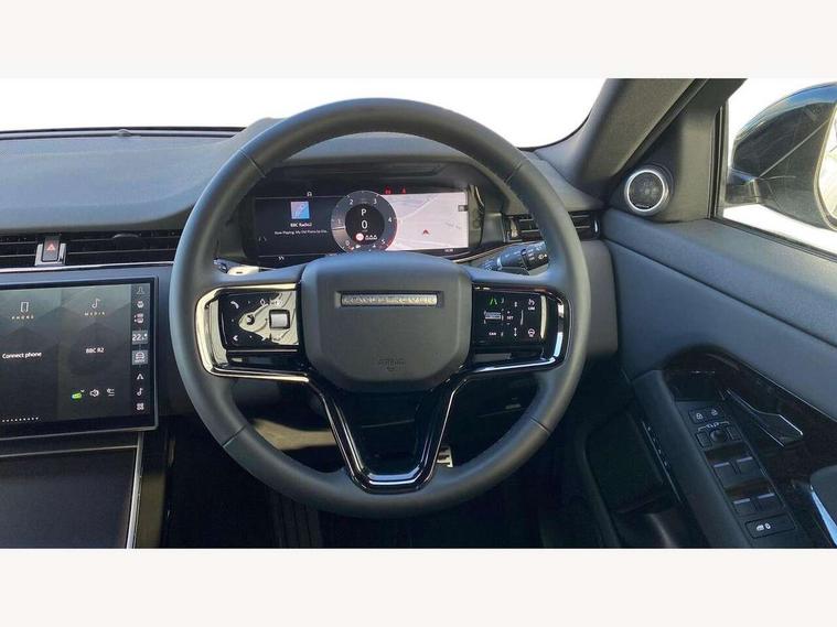 11.4" touch screen, 3D 360 degree surround camera with wade sensing, Adaptive cruise control, Android Auto, Apple car play, Blind spot assist, Bluetooth connectivity, Brake pad wear indicator warning light, Driver condition monitor, eCall emergency system, Eco mode, Electronic power assisted steering (EPAS), Front and rear parking aid, InControl remote, Interactive driver display, Land Rover InControl apps, Lane keep assist, Pivi pro connected includes diamond pivi variant, smart settings, connected navigation pro, nuance speech licence, Powered tailgate/boot lid, Rear collision monitor, Rear traffic monitor, Tailgate, Traffic sign recognition with adaptive speed limiter, Voice control system, Wireless device charging, All terrain progress control, Diesel exhaust fluid (DEF) large tank, Efficient Driveline, Large fuel tank, Passive suspension, Terrain Response 2, Digital Audio Broadcast radio-DAB, Meridian sound system with 400W subwoofer and 11 speakers, Steering wheel mounted controls, Acoustic laminated windscreen, Auto dimming interior rear view mirror, Auto headlights, Auto high beam assist, Automatic headlight levelling, Black contrast roof, Electric windows with one touch open/close and anti trap, Fixed panoramic sunroof with powered sunblind, Flush deployable exterior door handles, Front and rear recovery eyes, Heated rear window with timer, Heated washer jets, Heated windscreen, LED headlights with signature DRL and LED tail Lights, Metallic paint, Power fold, auto-dimming, heated door mirrors with approach lights and auto dimming driver side, Privacy glass, Rain sensing windscreen wipers, Rear animated directional indicators, Rear fog lights, Rear side wing doors, Rear wiper, Side repeater indicators in mirror, Tailgate spoiler, Third brake light, Winter wiper park position, 12 way driver memory and 10 way passenger electric front seats with 2 way manual headrest + 4 way lumbar support, 40:20:40 split folding rear seats with centre headrest and armrest, Ambient interior lighting, Bright metal pedals, Cabin lighting, Carpet mats, Chrome tread plates with range rover branding Includes stainless steel loadspace scuff plate with etched graphic, Customer configurable single point entry, Front and rear cupholders, Grained Leather upholstery, Heated front seats, Heated steering wheel, Isofix system on outer rear seats, Manually adjustable steering column, Overhead lighting console, Overhead stowage for sunglasses, Passive front head restraints, Rear air vents, Rear head restraints, Satin chrome gearshift paddles, Single passenger seat, Standard steering wheel with Moonlight Bezel, Sunvisors with illuminated vanity mirrors, Twin sliding front centre armrest, Two zone climate control, Black exterior styling pack - Evoque, Power socket pack 2 - Evoque, 3 rear 3 point seatbelts, Anti-lock braking system (ABS), Black brake calipers, Brake hold function, Customer configurable autolock, DSC - Dynamic Stability Control, Electronic brake force distribution, Electronic parking brake, Electronic traction control, Emergency braking, Front and rear seatbelt reminder, Hill descent control, Hill launch assist, Low traction launch, Occupant protection assist, Passenger seat occupant detector, Power operated child locks, Roll stability control, Six airbags - Driver and passenger airbags/driver knee airbag/front side airbag and curtain airbags, Torque vectoring brake, Tyre pressure monitoring system, Alarm, Immobiliser, Intrusion sensor, Keyless entry, Locking wheel nuts, Secure tracker pro, Black brushed aluminium finisher, 19" gloss black alloy wheels - Style 5136, All season tyres, Tyre repair system,