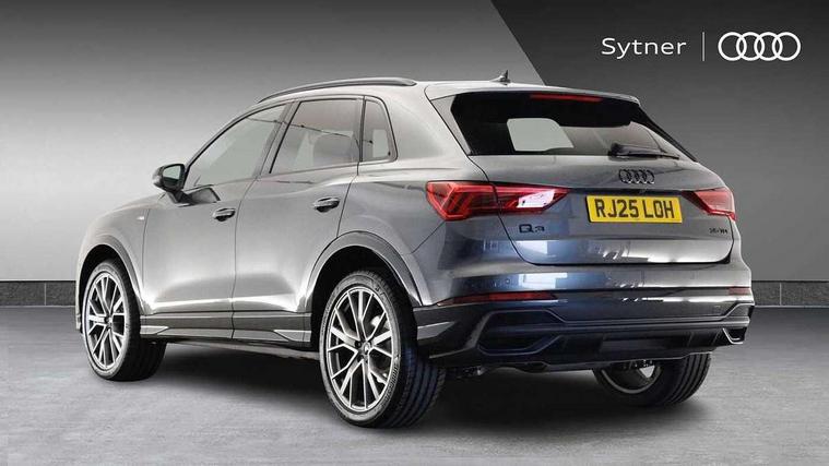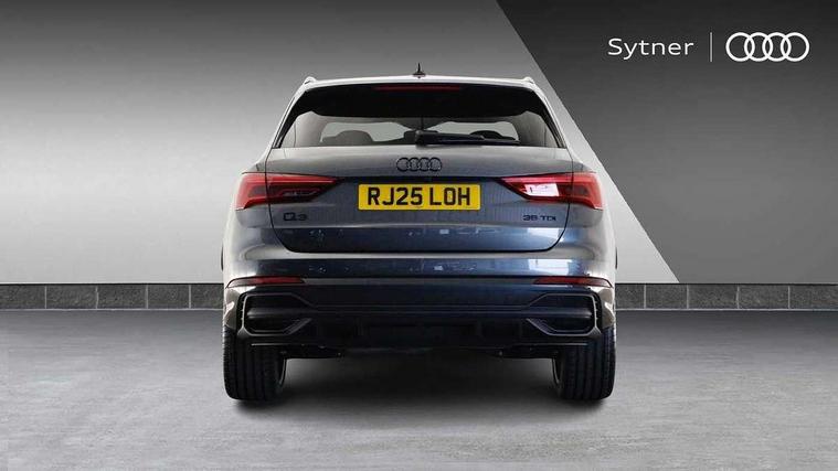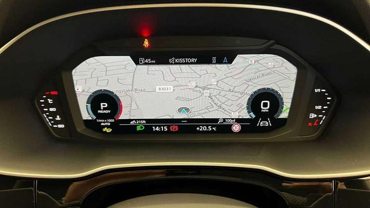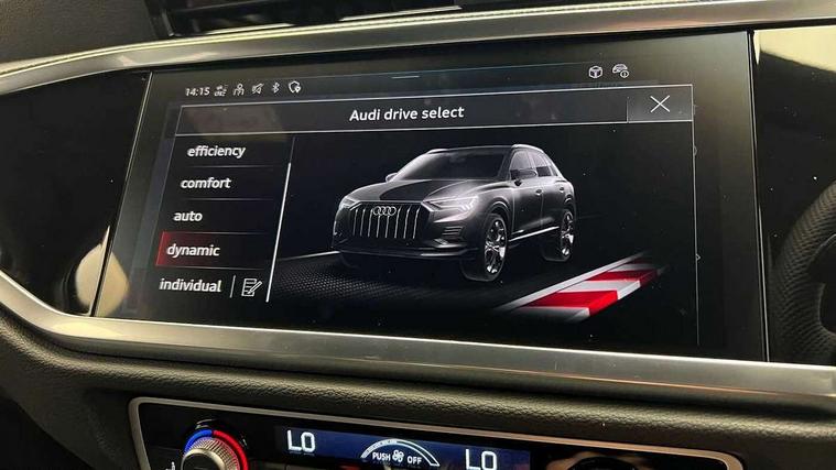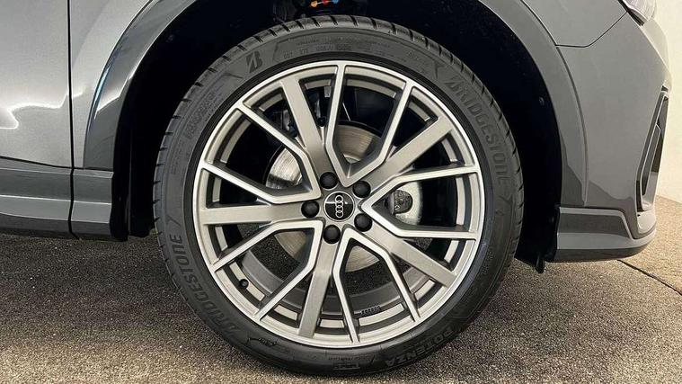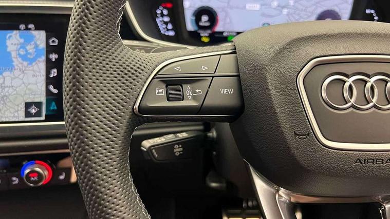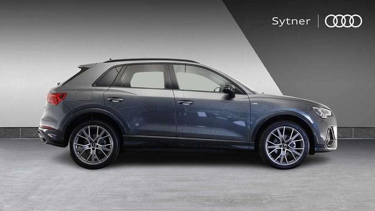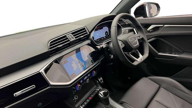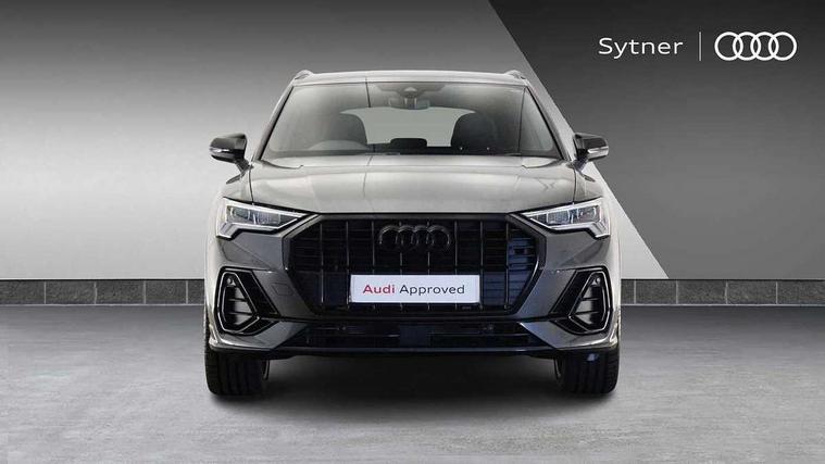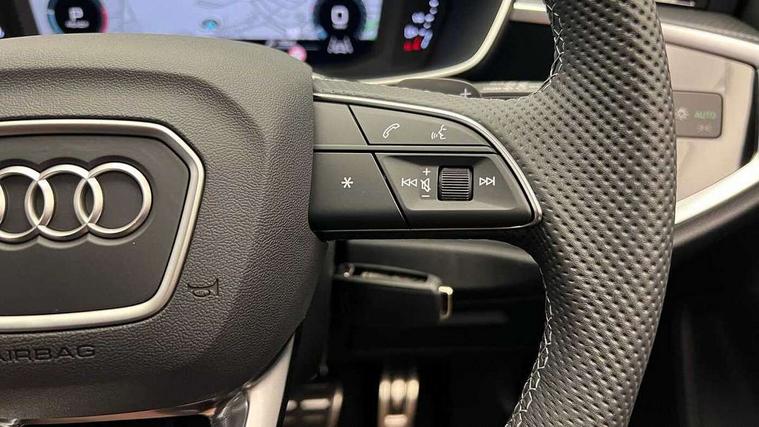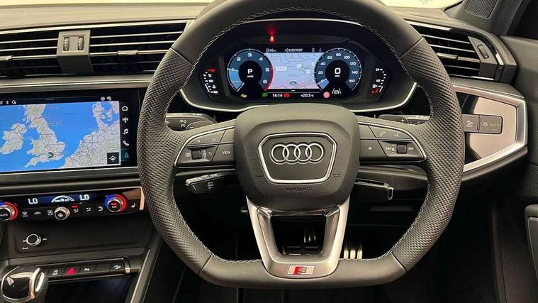 Amazon alexa Integration, Audi connect safety and service, Audi drive select, Audi lane departure warning, Audi Virtual Cockpit - 10.25" display, Bluetooth interface, Camera based traffic sign recognition, Distraction and Fatigue warning, Legal emergency call, MMI Navigation Plus with high resolution 10.1 inch touchscreen colour display, Power operated tailgate, Progressive steering, Service interval indicator, Smartphone interface includes wireless Apple carplay/Android Auto, Start stop system with recuperation, Voice control system with natural language interaction, Diesel particulate filter, Sports suspension, 2 USB-C ports with charge and data functions, 6 passive loudspeakers, DAB digital radio module, Acoustic windscreen, Anthracite black radiator grille, Audi Beam uses LEDs to project the Audi logo onto the ground as you exit your Q3, Auto dimming door mirrors, Auto dimming frameless rear view mirror, Black roof rails, Electrically folding, adjustable and heated door mirrors with integrated LED side indicators and kerb view function for passenger side, Front and rear electric windows, Front fog lights, Grille vertical bars in aluminium silver/Matt, High gloss black finish B and C pillars, LED Dynamic rear indicators, LED headlights with LED daytime running lights, LED rear lights, LED third brake light, Privacy glass dark tinted rear and rear-side windows (from B-pillar backwards), Rain and light sensors, Rear diffuser grille in grained matt black, Rear diffuser strip in matt anthracite black, Rear side wing doors, Rear wiper, S line bumpers in contrasting Manhattan grey, Variable front intermittent wipers, 12V socket in rear centre console, 3 seat bench in 2nd row, 40:20:40 folding with manual adjustment for 60:40 forwards/backwards position and backrest angle, Adjustable rear seat bench/backrest with centre armrest and cupholder, Black carpet mats, Black cloth headlining, Dual zone electronic climate control, Electric lumbar support, Front and rear black floor mats with contrast stitching in rock grey, Front and rear headrests, Front centre armrest, Height and reach adjustable steering wheel, Illuminated door sill trims with S logo, ISOFIX child seat mounting for front passenger with airbag deactivation and outer rear seat including top tether attachment point for outer rear seats, Luggage compartment sill protection in stainless steel, Manual front seats with height adjustment, Perforated leather gearknob, Single front passenger seat, Stainless steel pedals, Twin leather upholstery with front sport seats + S embossing, Black styling pack - Q3, Non smoking pack - Q3, 3x3 point rear seatbelts, 6 airbags - Driver, front passenger, curtain and side windows, Audi pre-sense front with pedestrain and cyclist recognition, Electrically operated child locks on rear doors, Electromechanical parking brake, Electronic stabilisation control including ABS, ASR and EDL, Front seatbelt reminder, Hill descent control, Hill hold assist, Pre sense basic, Seatbelt monitoring, Tyre pressure warning, Warning triangle and first aid kit, Anti theft wheel bolts, Immobiliser, Remote central locking, Thatcham approved category 1 anti theft alarm, Aluminium look interior elements, Detail dashboard around MMI touch colour display in glass look, black with surround in aluminium look, Leatherette door armrest, Piano black inlay,