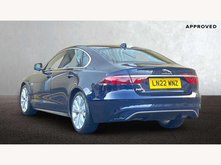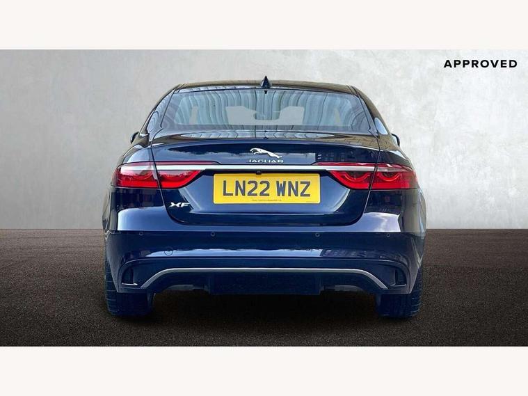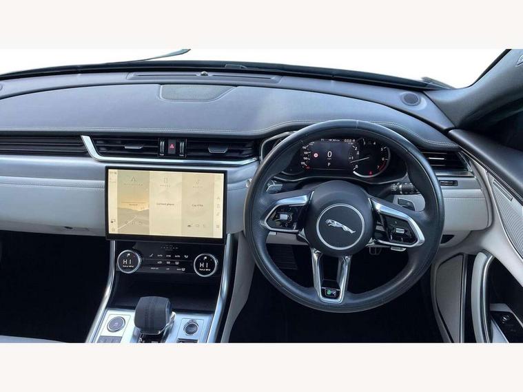 Android Auto, Apple car play, Blind spot assist, Bluetooth connectivity, Clear exit monitor, Driver condition monitor, Electric power assisted steering, Front and rear parking aid, Front animated directional indicators, Interactive driver display digital with 12" TFT display, JaguarDrive control, Lane keep assist includes oncoming vehicle detection and edge detection, Outside temperature gauge, Pivi pro connected navigation system with 11.4" touch screen, Power tailgate/boot lid, Push button starter, Rear traffic monitor with parking emergency braking (Autobrake), Service interval indicator, Speed proportional steering, Traffic sign recognition with adaptive speed limiter, Trip computer, DAB Radio (Digital Audio Broadcasting), Remote app, USB and auxiliary socket, Acoustic windscreen, Automatic headlights, Black lower front bumper hoops, Body colour door handles, Body colour door mirrors, Electric heated/power fold memory door mirrors with approach lights and auto dimming driver side, Electric windows with one touch open/close and anti trap, Front bumper's lower chin and rear lower bumper is finished in gloss black, Heat insulated glass, Heated front windscreen, Heated washer jets, Illuminated metal tread plates with Jaguar script, Jaguar script and leaper, LED tail lights, R Dynamic badge, R-Dynamic exterior body styling including gloss black and detailing, Rain sensor windscreen wipers, Third brake light, Trailer stability assist, XF badge, 2nd row air vents, 3 rear seat head restraints, Bright metal foot pedals, Centre armrest console, Electrically adjustable steering column, Front armrest, Front door and rear door storage space, Interior front door handles with separate locking switches, ISOFIX on outer rear seats, Overhead stowage for sunglasses, Passive front head restraints, Premium cabin lighting, Premium carpet mats, R-Dynamic branded leather steering wheel, Rear armrest with twin cupholders, Sunvisors with illuminated vanity mirrors, Twin front cupholders, Online pack with data plan - XF, ABS+EBA, All surface progress control (ASPC), Brake pad warning light, DSC - Dynamic Stability Control, Electronic parking brake, Emergency brake assist, Front airbags with passenger seat occupant detector, Front side airbags, Full length side window curtain airbag, Hill launch assist, Pedestrian contact sensing, Power operated child locks, Seatbelt warning, Three 3 point rear seatbelts, Torque vectoring brake, Traction control, Tyre pressure monitoring system, Immobiliser, Keyless entry, Locking wheel nuts, Perimeter alarm, Remote central locking with deadlocks and drive away locking,