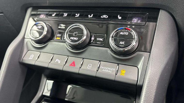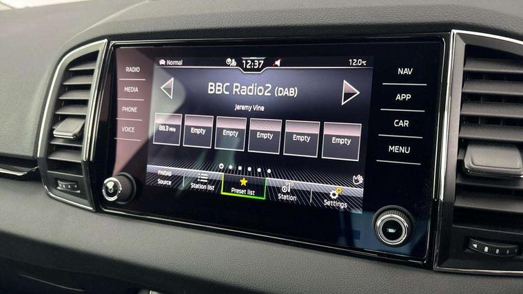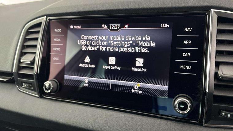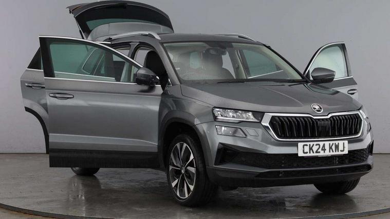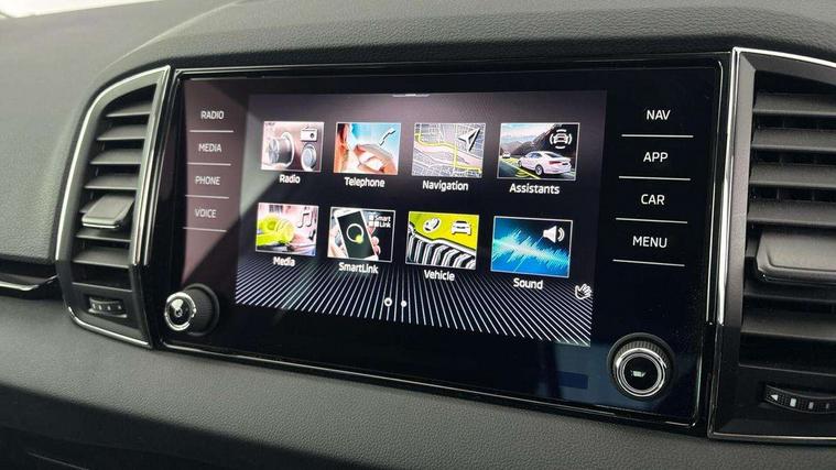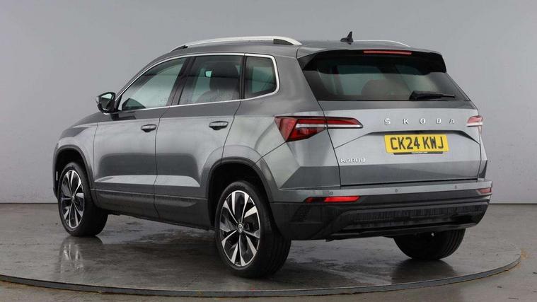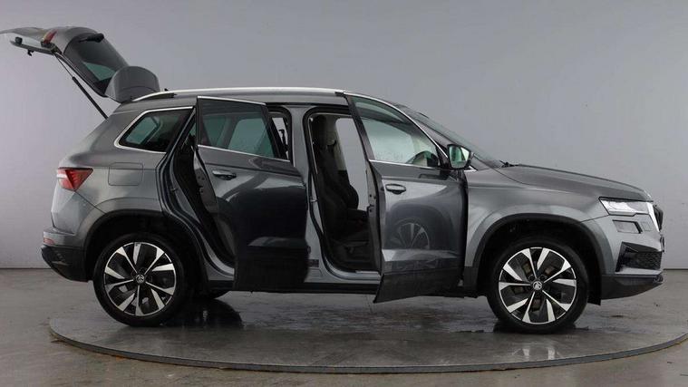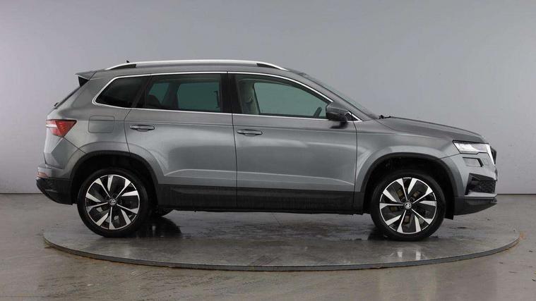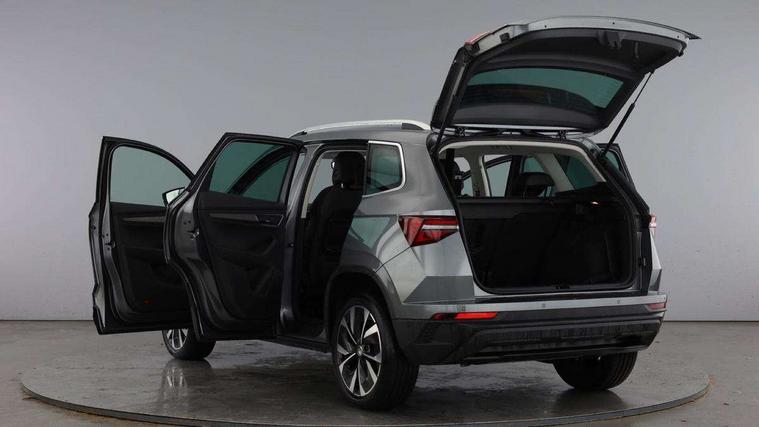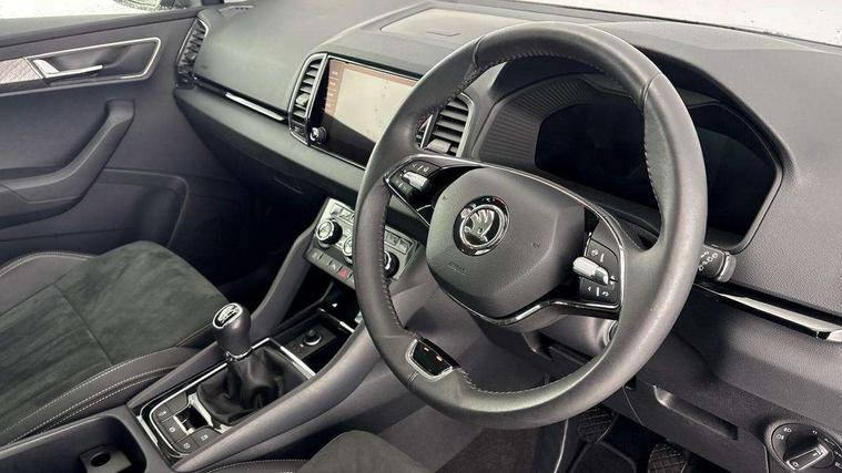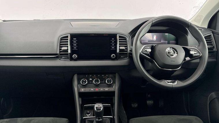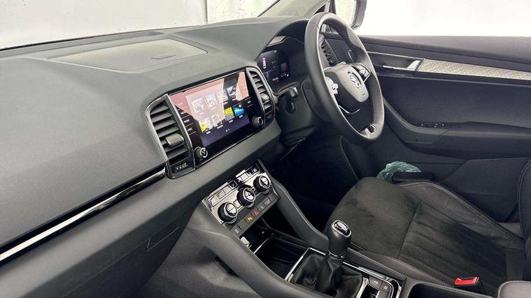 8" Digital display, Advanced driver attention and drowsiness monitor, Emergency services call system, Outside temperature gauge, Sensor for driver assistance systems, Service interval indicator, SmartLink wireless for Apple and wired for Android, Start/stop system with regenerative braking, USB C Port x 2 in front centre console, Virtual Cockpit - 10.25" digital display, Wireless smartphone charging, DAB radio with Bluetooth, USB connection, Acoustic glass, Aero front windscreen wipers with intermittent function, Auto dimming rear view mirror with light and rain sensors, Black electric window control buttons, Body colour door mirrors and handles, Electric front and rear windows with child proof lock, Heated rear windscreen, LED 3rd brake light, LED daytime running lights, LED rear lights with high functionality welcome effect and dynamic indicators, Light assistant (coming/leaving home/tunnel light), Plastic scuff plates in door apertures, Privacy glass, Rear side wing doors, Rear spoiler, Rear window wiper with washer system and intermittent control, Safety reflectors on front doors, 1.5 litre bottle holders in driver and front passenger door panels, 12V socket in boot, 12v socket in front centre armrest with storage compartment and rear air vents, 2 spoke leather heated multifunction steering wheel, 2 x Tablet holder, 3 rear height adjustable headrests, 3 seat bench in 2nd row, 4 foldable roof handles with rear coat hooks, Black floor carpet, Chrome inner door handles, Double sided boot floor, Foldable hooks in the boot, Front head restraints, Height adjustable front three point seats belts with tensioners, Height/reach adjust steering wheel, Ice scraper, Illuminated glovebox, Illuminated luggage compartment, Interior noise suppression, Isofix child seat preparation for front passenger seat, Isofix child seat preparation outer rear, Manual lumbar support for front seats, Pearl grey interior ceiling, Pen holder, Pollen filter, Rear boot cover, Rear reading lights, Rubbish bin door, Safety vest holder, Single front passenger seat, Storage box in upper central dashboard closed, Sunvisors with illuminated vanity mirrors, Textile floor mats, Ticket holder, Design Pack - Karoq, Non Smokers pack, Parking pack - Karoq, Automatic door unlocking in case of crash, Automatic fuel cut off in case of crash, Driver airbag, Electronic parking brake with auto hold function, Emergency rear braking signal, ESC including ABS, MSR, ASR, EDS, HBA, DSR, RBS, MKB and traction control, Front side airbags, Head airbags, Hill hold control, Knee airbags, Passenger airbag with switch-off function, Pedestrian monitor, Seatbelt reminder signalisation and pretensioner for all seats, Three point seatbelts rear, Two tone horn, Tyre pressure monitor, Alarm with interior monitoring, back up horn and tilt sensor with safe function, Electronic engine immobiliser, Keyless entry and start/stop, Remote central locking with 2 remote folding keys, Black centre console, Chrome framed air vents, Satin black dashboard, 18" Procyon silver alloy wheels with anthracite aero inserts, Anti-theft wheel bolts protection, Breakdown and tool kit,
