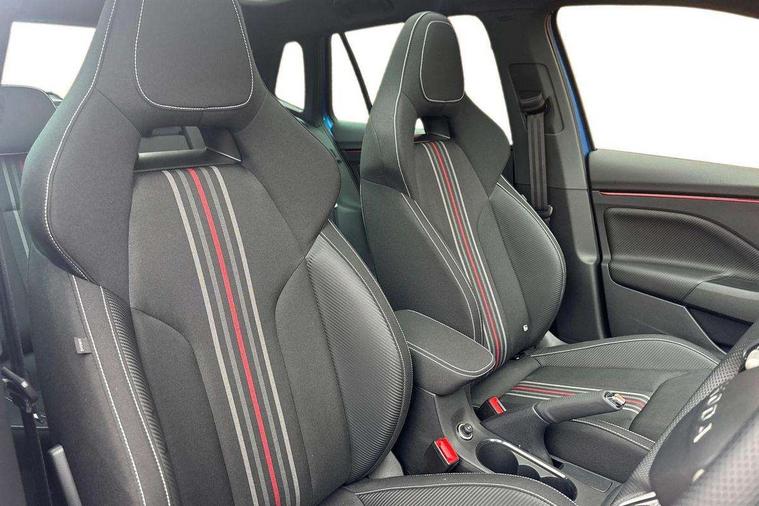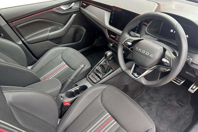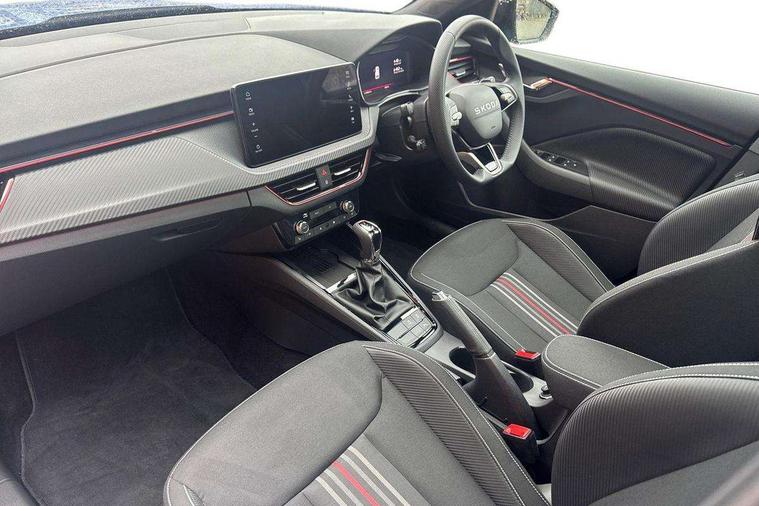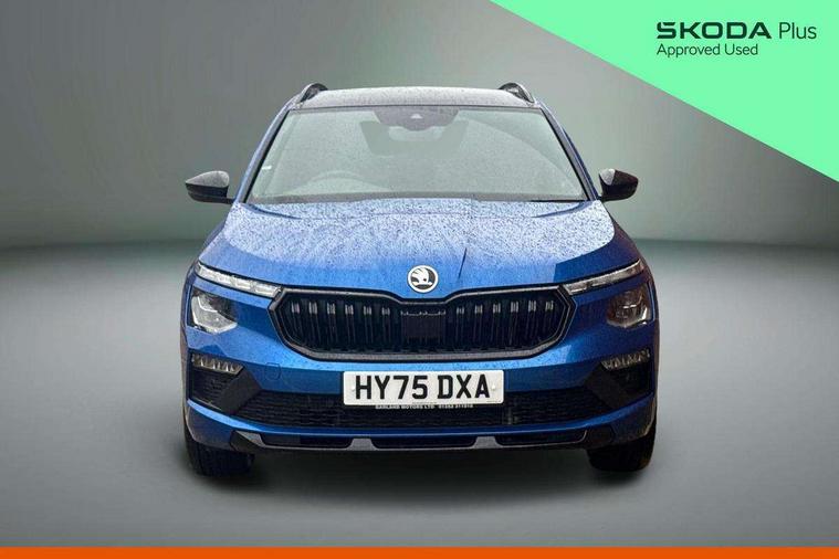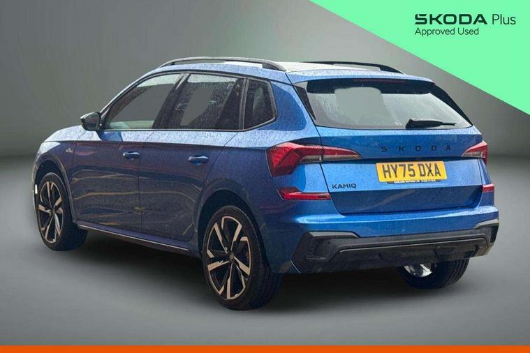 Advanced driver attention and drowsiness monitor, Bluetooth system, E-call, Front assist system, PAS, Rear parking sensors, Rear view camera, Service indicator, Speed limiter, Traffic sign recognition, Virtual cockpit with 10.25" display, Voice control system, Wireless smartlink, 4 USB C ports, 8 Speakers, 9.2" Skoda navigation display, DAB Digital radio, Auto dimming rear view mirror, Automatic headlight control with coming home and leaving home feature, Black door mirrors, Black radiator grille, Black rear diffuser, Black roof spoiler, Body colour bumpers, Body colour door handles, Boot lettering in black, Extended tailgate glass, Fixed panoramic sunroof with black roof rails, Front and rear electric windows, Heated rear window, LED daytime running lights, LED high beam, LED low beam, LED third brake light, Light sensors, Monte carlo plaque, Privacy glass, Rear side wing doors, Rear wiper, Ticket holder inside windscreen, 12V socket in luggage compartment, 3 seat bench in 2nd row, Aluminium pedals, Ambient lighting in white/red, Art leather carbon decor inserts, Art leather carbon door inserts, Black roof lining, Cargo elements, Chrome inner door handles, Driver and passenger sun visors with vanity mirror, Dual zone climate control, Front and rear roof lights, Front centre armrest, Front head restraints, Glove compartment with illumination, Height adjustable driver seat, Height adjustable front passenger seat, Ice scraper, Inner circulation control with pollen filter, ISOFIX on front passenger seat, Isofix preparation for back seats, Leather gearknob and handbrake lever, Manual lumbar support for front seats, Monte Carlo cloth upholstery, Net package and top tether hooks in boot space, Net under rear shelf, Pocket on the back of both front seats include mobile phone pockets, Rake/reach adjustable steering wheel, Reading lights, Rear centre armrests, Red hotstamping, Single front passenger seat, Sports seats, Textile floor mats, Third rear headrest, Top tether for front passenger seat, Umbrella in driver's door, Light and view plus package - Kamiq, 3x3 point rear seatbelts, Airbags - driver and front passenger, Disc brakes, ESP, Extended and predictive pedestrian/cyclist protection, Front passenger airbag deactivation switch, Front side airbags with curtain airbags, Hill hold control, Manual leather parking brake, Manual rear child locks, One tone horn, Seatbelt reminder for driver an co-driver, Traction control, Tyre pressure monitor, Anti-theft alarm system with interior monitoring, backup horn, towing protection and remote central locking with SAFE system, Anti-theft wheel bolts, Electronic engine immobilizer, 18" Ursa black diamond cut alloy wheels,