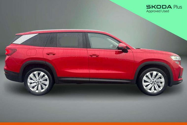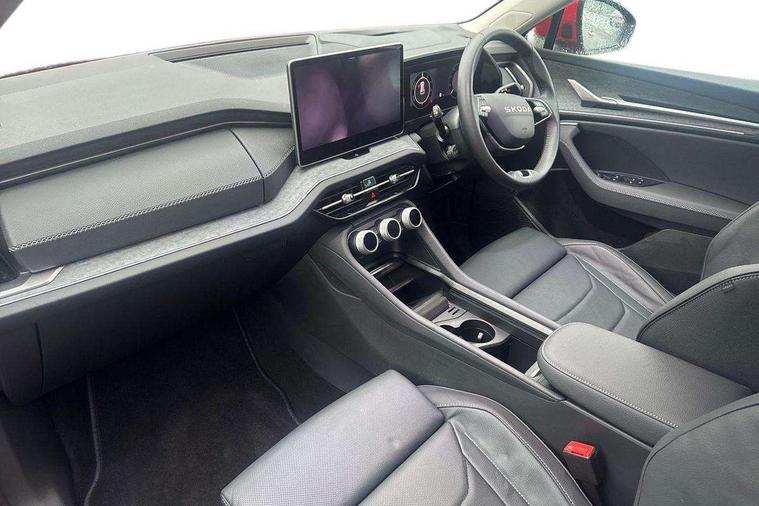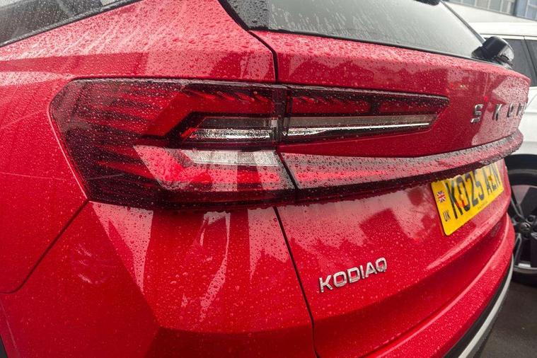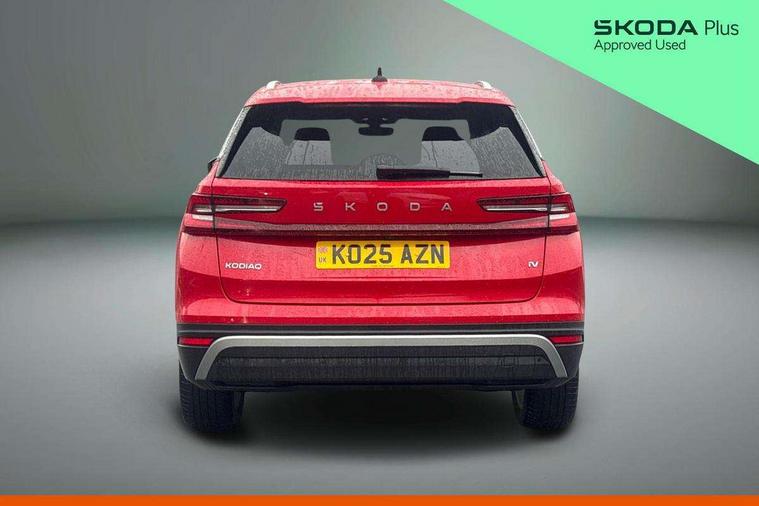 13" satellite navigation touchscreen display, Blind spot detection with door exit warning, Bluetooth system, ChatGPT functionality, Driver alert - Fatigue and drowsiness monitor, Dry display cleaner, Emergency call, Front and rear parking sensors, Front cross traffic assist, Lane assist, PAS, Rear traffic assist, Tailgate unlocking from outside, Traffic sign recognition, USB C Port x 2 in front centre console, Virtual Cockpit - 10.25" digital display, Voice control system, Wireless charging for two smartphones (15W) with cooling function, Wireless SmartLink for Apple CarPlay and Android Auto, 32A charging cable, Stop/start function, 2x USB-C in the rear, DAB Digital radio, Aero front windscreen wipers with intermittent function, Auto dimming rear view mirror, AWL (all weather lighting) and all weather light with cornering function, Black wheel arch surrounds, Body colour bumpers, Body colour door mirrors and handles, Cornering light and poor weather light, Electric folding /adjustable/separted heated/folding door mirrors, auto dimming with boarding sports and memory function, Electric front and rear windows, Exterior black decorative trims, Heat insulating glass in windshield, Heated rear window, Ice scraper in fuel tank cap, Invisible tailpipe, LED daytime running lights, LED third brake light in rear spoiler, Light assistant with automatic headlight control and coming home feature, Logo projection in door mirrors, Privacy glass, Rear roof spoiler, Rear side wing doors, Rear window wiper, Red decorative strip between rear LED lights, Safety reflectors on front and rear doors, Unique dark chrome design logo on alloy wheels, Window control switches with black trim, Windscreen wipers with rain sensor, Without engine designation, 1.5l bottle holder points in all door, 1x centre rear reading light, 3 configurable smart dials with 32mm coloured display, 3 seat bench in 2nd row, 4 foldable roof handles with rear coat hooks, Ambient interior lighting - Dashboard, front-door stowage compartments, front and rear door panels and footwell lighting, Automatic gear selector on steering column, Chrome interior door handles, Driver/front passenger reading lights, Fabric headlining, Fixed bench 40:60:40 split folding backrests, Front and rear floor mats, Front centre armrest with jumbo box storage compartment, cup holder and 12V socket, Height adjustable front headrests, Isofix child seat fittings in outer rear seats and front passenger with top tether, iV badging on boot, Manually adjustable steering column, Pollen filter, Rear centre armrest with cupholders, Rear seat boot backrest release, Single front passenger seat, Skoda lettering on steering wheel, Storage pocket including mobile phone pockets on the backs of the front seats, Sunvisors with illuminated vanity mirrors, Three rear height adjustable headrests, Ticket holder on A Pillar, Tri zone climate control, Umbrella in door panel x1 made from sustainable materials, Upper and lower glovebox with card holder and coin compartment, USB C port by rear view mirror for charging only (15W), Exterior styling pack - Kodiaq, Auto door release and activation of warning lights in the event of an accident, Driver and front passenger airbag with knee airbag and front passenger airbag deactivation, Electric child locks, Electronic parking brake, ESC (incl. ABS+EMD+MSR+ASR+EDL+HBA+DSR+RBS+ESBS+MCB+TSA+XDS), Front assist with braking reaction to vehicles, pedestrians and cyclists, Front disc brakes, Fuel cut off safety device, Height adjustable front 3 point seatbelts + pretensioners, Hill hold assist, Junction assist with automatic emergency braking, Rear disc brakes, Safety vest holder in door, Seat belt reminder for all seats, Three point rear seat belts, Two tone horn, Tyre pressure monitor, Anti-theft wheel bolts, Immobiliser, Remote central locking with 2 keys, Breakdown kit, Tool kit,