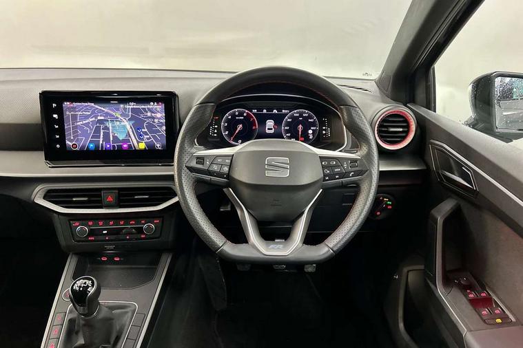 'Lights On' Reminder warning buzzer, 10" Digital cockpit, 9.2" touchscreen navigation system with type C USB socket, Voice control and DAB/AM/FM radio, Auto start and stop system, Bluetooth audio streaming with handsfree system, Digital clock, E-call, Full link smartphone integration with mirror link, wireless apple carplay, Google android auto + USB Type C cable for apple and android devices, Lane assist, Low fuel warning light, Outside temperature gauge, Power Steering, Rear parking sensor, Seat connect plus with safety, service, remote and online, SEAT logo boot release, Speed limiter, Traffic sign recognition, Trip computer, Sports suspension, Auxiliary input socket, Beats audio system with 18" space saver spare wheel and luggage compartment lining, Radio/MP3 player, SD card slot, Steering wheel mounted controls, Anti theft roof antenna, Auto dimming rear view mirror, Automatic rain sensing wipers, Black door mirror caps, Body colour bumpers, Body colour door handles, Brilliant black window surrounds, Dark tinted rear windows, Doorstep with anniversary limited edition, Electric adjustable/heated/folding door mirrors, Electric front windows, Electric headlight adjustment, Electric rear windows, Front/rear fog lights, FULL LED automatic headlights with dynamic headlight range control, coming and leaving home, LED daytime running lights, Lassered lettering Anniversary Edition in B pillar, LED tail lights, Rear roof spoiler with FR twin exhausts, Rear side wing doors, Rear wiper, Third brake light, 3 seat bench in 2nd row, 60/40 split folding rear seat, Ambient interior lighting, Chrome detailing and black headlining, Dual zone climate control with combination filter, Front courtesy lights, Front cupholders x 2, Front reading lights, Gear shift indicator, Glovebox, Grey interior air vents, Grey interior styling, Height adjustable front and rear headrests (five), Height adjustable front seats, Height/reach adjust steering wheel, Illuminated air vent surrounds, Illuminated boot, Instrument lighting with brightness control, Isofix, Leather multifunction flat bottomed sports steering wheel, Microsuede cloth upholstery, Passenger sunvisor, Single front passenger seat, Sports bucket seats, Storage pockets on back of front seats, Sunvisors with mirror and driver side card holder, Safety and driving pack (S) - Ibiza, 3 point seatbelts on all 3 rear seats, ABS, Active front headrests, Child locks on rear doors, Electronic stability control, Energy recovery system, Front driver and passenger side airbags with curtain airbag and front passenger airbag deactivation, Hill hold control, Multi-Collision braking, Seat belt reminder for front and rear seats, Tiredness recognition system, Tyre pressure monitoring system, Electronic engine immobiliser, KESSY Keyless entry and go, Locking wheel bolts, Perimeter alarm and interior monitoring inc.backup horn, tow away protection and electronic engine immobiliser, Remote central locking + deadlocks, 18" graphene alloy wheels in cosmo grey,