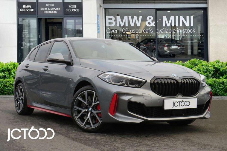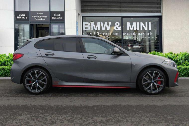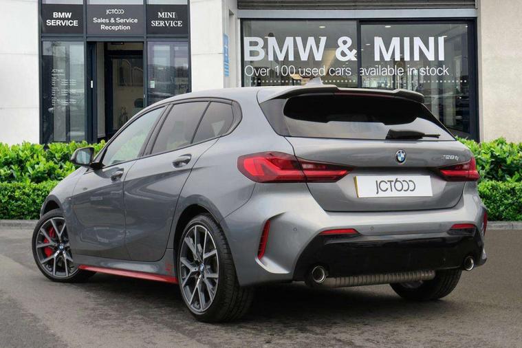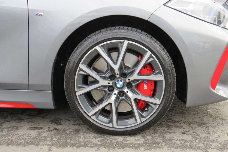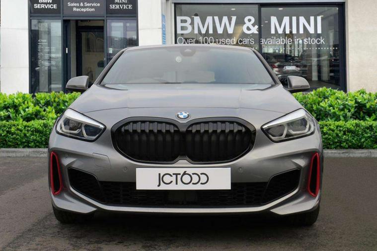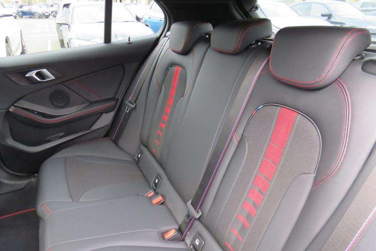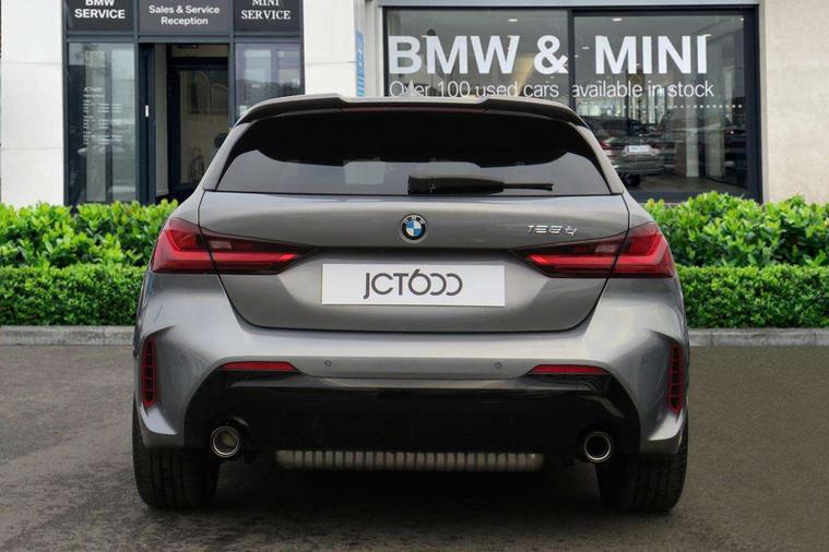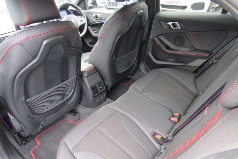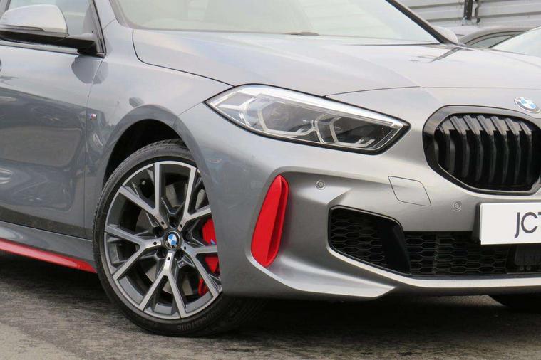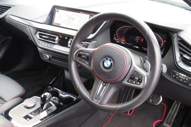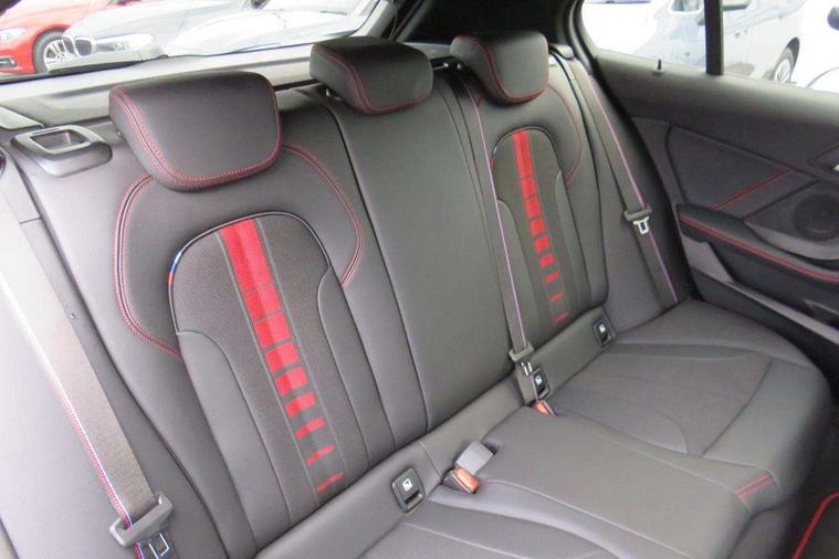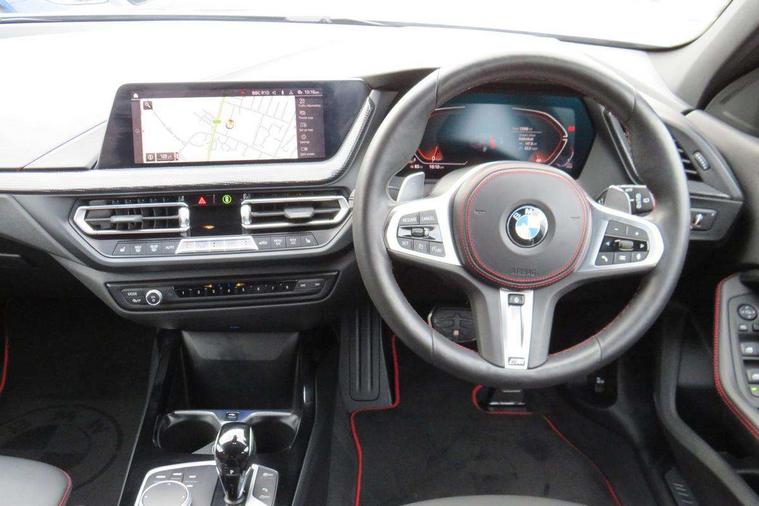 Active guard plus, Attentiveness assist, BMW ConnectedDrive online services, BMW Teleservices, Check Control warning system for monitoring of lights and door/luggage compartment open warning, Cruise control with speed limiter, Eco pro mode, Electric power steering with Servotronic steering optimised at all speed ranges, Front axle single joint with specific axle kinematics to minimise drive influences on steering + provide increased rigidity agile driving behaviour, Integrated owners handbook, Lane departure warning system, Oil sensor for level and grade, On board computer, Optimum shift indicator, Personal Profile, Pull away assistant, Rigidly mounted rear subframe - Multi link construction with separate spring / damper configuration and excellent driving characteristics, Speed limit Info including no-overtaking indicator, Aluminium lightweight construction, Anti roll bar front and rear, Balancer shaft, Double VANOS twin scroll turbocharging system, Drive Performance Control, Eight speed sport automatic transmission with gearshift paddle switches, Electronic differential lock, High precision injection, Larger fuel tank capacity (50 litres), M sport suspension with M128i xDrive specific settings, Petrol Particulate Filter, Twin tube gas filled shock absorbers with degressive characteristic curve, VALVETRONIC engine management, DAB Digital radio, Auto dimming rear view mirror, Automatic headlight beam throw control, Automatic windscreen wipers and automatic headlight, Black chrome tailpipe finishers, BMW individual high gloss shadow line with extended content, Body colour door handles, Body colour mirror caps, Body colour roof trims, Chrome 'M' logo side designation, Chrome kidney grille frame with Satin Aluminium struts, Direction indicator side lights in exterior mirrors, Electrically adjustable exterior mirror with mirror adjustment switch on drivers armrest and aspheric on driver side, convex on passenger side, Fading support, Folding side mirrors with auto dimming/folding wing mirrors with auto dimming, Follow me home headlights, Front and rear bumper system with replaceable deformation elements, Front and rear electric windows with open and close fingertip control, anti trap facility and comfort closing, Front door sill finishers in black plastic with M designation in metallic look, Green tinted heat protection glazing, High gloss shadowline window frame, Recess cover mirror frames and B/C pillar embelisher trim, High level third brake light, Integrated front windscreen with washer jets, Kidney frame and struts in high gloss black extended, LED daytime running lights, LED eyebrow turn indicators, LED front fog lights, Lightweight engineering, Matt black air guide grilles, Matt black wheel arch trim, Model designation on electric bootlid, Nearside reverse light in rear light cluster, Preparation for high beam assistant, Rear fog lights, Rear side wing doors, Rear window wiper, Shark fin antenna, Trailer stabilisation logic, Visible VIN plate, Welcome lighting, 12V power socket in front centre console with blanking plug, 3 rear seat head restraints, 3 seat bench in 2nd row, Anthracite headlining, Black boot net with lashing eyes, Cargo function on 2nd seat row, Child seat ISOFIX attachment for two outer rear seats and front passenger seat with anchorage points, Conditioned based service, Driver and front passenger backrest net on rear, Driver and front passenger seat heating, Driver side folding compartment in instrument panel, Folding rear clothes hook, Four grab handles integrated in roof lining, Front and rear door pockets with bottle holders, Front and rear side armrest integrated into door trim, Front armrest, Front sports seats, Glove compartment, Height adjustable front head restraints, Luggage compartment for bag hooks on left and right, foldable luggage compartment liner and four lashing eyelets, Manual adjust steering wheel, Multi-function controls for steering wheel, Single front passenger seat, Storage compartment in centre console, Storage compartment in luggage compartment, Stowage of the parcel shelf in luggage compartment trim, Sun visors with vanity mirrors and insert tab, Three spoke M sport design multi function leather steering wheel in unique red stitching, Two front centre console cupholders, Two zone automatic air conditioning, Type C two USB ports in rear centre console, Additional interior lighting pack - 1 Series, BMW live cockpit professional pack- 1 Series, Connected pack professional - 1 Series, Interior lights pack - 1 Series, M Sport exterior styling aerodynamics pack - 1 Series, 2 tone horn, 3 point seatbelts on all seats, front pyrotechnic belt tensioners, stopper and belt force limiters, rear coded belt buckles, Airbags - Front driver/passenger, front and rear curtain head protection, front side, manual deactivation of front passenger airbag, Anti lock braking system (ABS) with brake assist, BMW emergency call, Brake drying, Braking readiness, Child proof locking system in rear door, City braking function, Comfort modes, Cornering brake control, Crash sensor activating of airbags, Unlocking doors, hazard warning lights, interior light, safety battery terminal, Driver and front passenger seat belt security check, Dynamic stability control + (DSC+), Dynamic Traction Control - DTC, Electrically operated hand brake including automatic hold function, Front and rear disc brakes, M Sport brakes with red calipers, M Sport seatbelts, Seatbelt warning, Side impact protection, Tyre pressure monitoring system, Warning triangle and first aid kit, Central locking switch for all doors, fuel filler cap and luggage compartment, Deadlocking function system to all doors, Drive away locking system on all doors and luggage compartment with de-activated in iDrive settings, Locking wheel bolts, Remote control with integrated key with High-gloss Black inlay and M designation and 1 button for open/ close lock, window, open luggage compartment, Start/stop button illuminated in