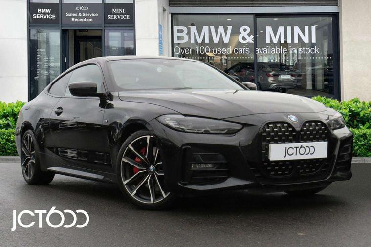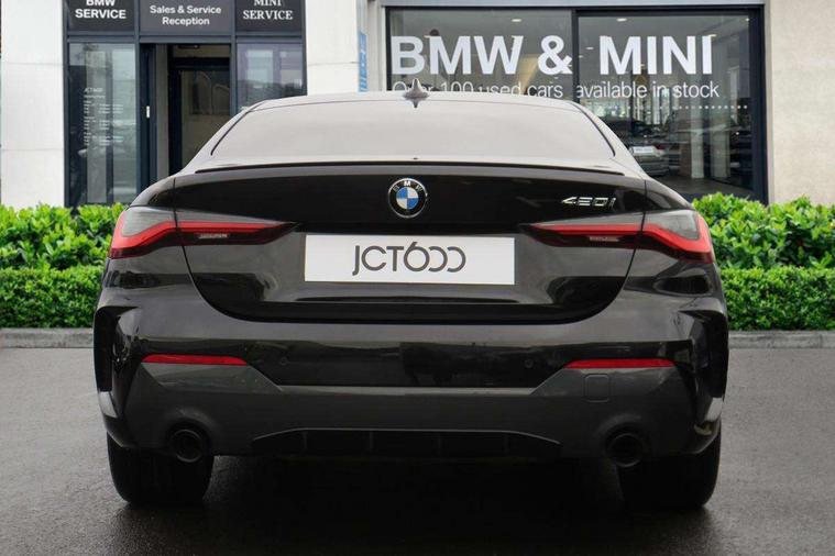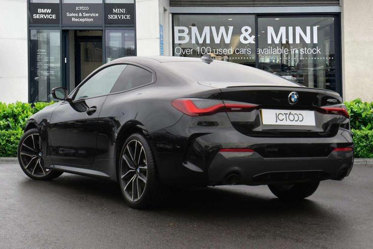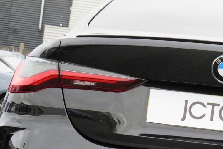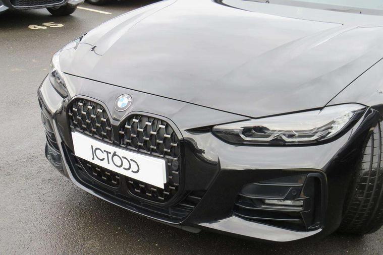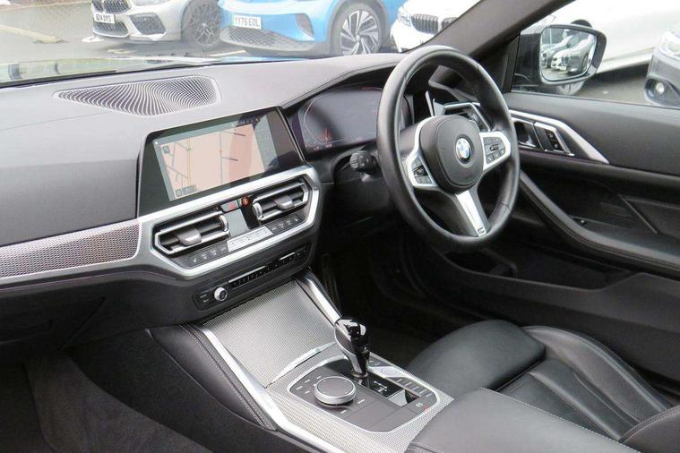 Active guard plus, Attentiveness assist, Auto start-stop, Bluetooth hands free facility with USB audio interface with audio streaming, BMW ConnectedDrive online services, BMW iDrive controller on centre console, BMW Live Cockpit Professional Nav with 12.3" instrument display + 10.25" display, Intelligent Voice Assist, BMW OS 7, HDD, 2USB, 4G LTE connect, BMW service history, BMW Teleservices, Brake pad wear indicator in front and rear, Check Control warning system for monitoring of lights and door/luggage compartment open warning, Condition based service, Cruise control with brake assist, Electric power steering, Electric power steering with Servotronic steering optimised at all speed ranges, Gearshift time display in manual mode, Instrument cluster with speedometer with mph readout, tachometer, fuel gauge and oil temperature gauge, Integrated owners handbook, Oil sensor for level and grade, warning by check control system, On board computer - average speed, fuel consumption, outside temp display with acoustic warning, clock/date, service interval, odometer/trip meter, Optimum shift indicator, Variable sport steering, 8 speed automatic steptronic transmission with gearshift paddles, Balanced 50/50 weight distribution, Double VANOS, Drive performance control - ECO PRO, comfort and sport modes, High precision injection, Low centre of gravity, M sport suspension, Petrol Particulate Filter, Stroke dependent dampers, VALVETRONIC engine management, DAB tuner, Electronic service booklet, Acoustic glazing, Adaptive LED Headlights, Automatic headlight beam throw control with load dependent regulating reaction, dynamic compensation of braking dive and acceleration squat, Automatically dimming electrochromatic rear view mirror, BMW emblem on engine compartment lid and tailgate, BMW kidney grille with mesh grille front side of the nuggets in matt aluminium and frame in chrome high gloss, Body colour fuel filler flap, Body colour M sport rear spoiler, Body colour roof fin, Brushed aluminium inserts in the front door sill finishers with BMW designation, Dynamic brake lights, Electric windows - front and rear, with open/close fingertip control, anti trap facility and comfort closing function all round, Exhaust tailpipe - split left and right, Exterior mirrors - electrically folding with anti-dazzle, Fading support, Front and rear bumper system, Front apron plastic in body colour, Green tinted heat protection glazing, High gloss shadow line exterior trim, Illuminated bow type door handles in body colour drivers side with door lock, Interior rear view electrochromatic mirror with automatic anti dazzle function, LED front fog lights, Licence plate panel integrated into front bumper and tailgate, Lightweight engineering, M designation on front side panels, left and right, M rear boot spoiler, Model designation on right side of tailgate, One piece front bumper cover including towing eye cover in body colour, Preparation for high beam assistant, Rain sensor, Side frame decorative moulding black matt, Two part LED tailights in L-shape with components in smoked glass, brake light, LED turn indicator and rear fog light, Visible VIN plate, Welcome lights in interior and door handle area, Widened track and increased camber values for max transverse dynamics, agility and steering precision, Window recess cover black high gloss, Windscreen wipers with integrated washing jets, 12V power socket in front centre console, 2 front cupholder in centre console with clamping elements and matt black inlay, 2 Rear seat headrests, 3 spoke M sport leather multifunction steering wheel, 3 zone automatic air conditioning, 4 pieces lashing eyelets in luggage compartment, 40:20:40 split folding rear seat and rear centre armrest with two cupholders, Ambient lighting with welcome carpet light, Anthracite headlining, Armrest integrated in front and rear door trim + front centre console armrest, Four grab handles integrated in roof lining, Front and rear door exit lighting (left / right), Front and rear door pockets, Front and rear footwell lights, Front and rear reading lights, Front headrests, Front seat backrest width adjustment, Front sport seats, Heated driver and front passenger seats, Height adjustable mechanically and infinitely variable steering column, Illuminated armrest storage compartment, Illuminated glove compartment with separate small compartment, Luggage compartment light, Make-up mirror lights, Storage compartment in rear centre console, Sunvisors with vanity mirrors and ticket pocket, Toolkit located in luggage compartment, Velour front floor mats, Vernasca leather upholstery, Connected professional package - 4 Series, M sport exterior styling pack - 4 Series, Park assist pack - 4 Series, 2 x 3-point rear seatbelts, Battery safety cut-off, BMW emergency call, Brake energy regeneration, Braking pre-tensioning, Child proof locking system in rear door, Child seat ISOFIX attachment for the two outer rear seats, Coasting in idle in ECO PRO mode, Cornering brake control (CBC), Crash sensor activating of airbags, Unlocking doors, hazard warning lights, interior light, safety battery terminal, Driver and front passenger side airbags, integrated in the door side seat backrest bolsters for all seat variants, Driver/Front Passenger airbags, Dry braking, Dynamic brake control, Dynamic stability control + (DSC+) - Anti-lock Braking System (ABS) with brake assist and cornering brake control + Automatic Stability Control (ASC), Dynamic Traction Control - DTC, Electric parking brake including automatic hold function and automatic release of the parking brake when driving off, Electronic differential lock control (EDLC), Front and rear ventilated brake disc, Front passenger manual airbag deactivation, Head airbags for all 4 outer seats, Hill start assistant, Seat belt security check for driver and front passenger, Seat belt with belt stopper, pyrotechnic belt tensioners and belt force limiters, Side impact protection, Tyre pressure m