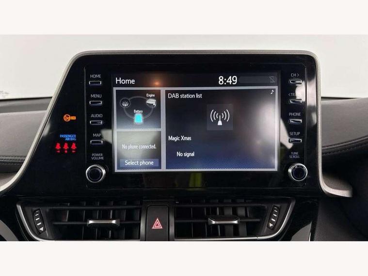 4.2" coloured TFT screen for multi-information display, Adaptive cruise control, Apple car play and Android auto, Bluetooth connectivity, E-call, Electric power steering, Hybrid system indicator, Lane departure alert with steering control, Lane trace assist, Push button start, Push button tailgate release, Remote boot door release in cabin, Remote boot door release in key, Reversing camera, Road sign assist - RSA, Smart voice assist, Trip computer, Voice recognition, Vehicle Stability Control (VSC), 6 speakers, AM/FM radio, DAB Radio (Digital Audio Broadcasting), Toyota touch 2 multimedia system with 8" display, USB connector, Wi-fi connectivity, Anti-jam protection on power windows, Auto high beam, Auto up and down function on all power windows, Automatic headlights, Automatic headlights cut-off, Black and body coloured rear bumper, Black lower front grille, Black upper front grille, Body colour door handles, Body colour door mirrors, Body colour front spoiler lip, Body coloured front bumper, Boot door release with push button, Electric heated door mirrors, Follow me home headlights, Front and rear power windows, Front fog lights, Headlight cut off reminder, Honeycomb lower front grille, LED daytime running lights, LED High mounted stop light, LED rear brake lights, LED rear combination lights, Manual headlight levelling, Manually retractable door mirrors, Noise reduction layer on front windows and windscreen, Power adjustable door mirrors, Rear side wing doors, Rear spoiler, Rear tailgate, Rear window defogger, Rear window wiper, Reflective LED headlights, Shark fin antenna, UV-filter on driver and passenger windows, UV-filter on rear windows, Variable front intermittent wipers, 12v power outlet - front, 3 rear headrests, 3 seat bench in 2nd row, 3 spoke leather steering wheel, 60/40 split folding 2nd row rear seats, Adjustable rear headrests, Adjustable speed limiter switch on steering wheel, Assist grips front and centre pillar, Audio and telephone switches on steering wheel, Black front door assist grips, Boot light, Chrome interior door handles, Cloth upholstery, Driver and front passenger personal light, Driver and front passenger Whiplash Injury Lessening seats, Dual zone automatic air conditioning, Floor mats, Front cupholders, Front head restraints, Front sports seats, Glovebox with internal light, Hard tonneau cover, Hooks for luggage holding net, Humidifying Nanoe air purifier, Illuminated entry system, Isofix attachments on outer rear seats, Leather gearshift, Light on driver sun visor, Light on passenger sun visor, Manual telescopic steering wheel, Manual tilt steering wheel, Manually adjustable lumbar support on driver seat, Manually height adjustable driver seat, Manually height adjustable front passenger seat, Manually reclining driver seat, Manually reclining front passenger seat, Manually sliding driver seat, Manually sliding front passenger seat, Microphone on front personal light, Mirror on driver sun visor, Mirror on passenger sun visor, Multimedia switches on steering wheel, Pollen filter, Shopping bag hooks, Single front passenger seat, Slow opening on lower glovebox, Voice recognition switch on steering wheel, 16 Disk front wheel brake, 3x3 point rear seatbelts, ABS+EBD+Brake assist, Electronic parking brake, Front and rear seatbelt reminder, Front passenger airbag on/off switch, Hill start assist control (HAC), Pre collision system with pedestrian detection, Pre-tensioners and force limiters, Rear door child safety locks, SRS Airbags - Driver + Front passenger, front side, front and rear curtain and driver's knee airbags, Toyota safety sense, Tyre pressure monitoring system, Tyre pressure warning system, Acoustic vehicle alert system (AVAS), Glass-breaking alarm sensors, Immobiliser, Intrusion alarm, Intrusion sensor, Motion sensor alarm, Power door locks, Power passenger window lock, Remote central locking, Black lower dashboard, Black upper dashboard, Grey deco line on upper dashboard, Matte black centre console, Tyre repair kit,