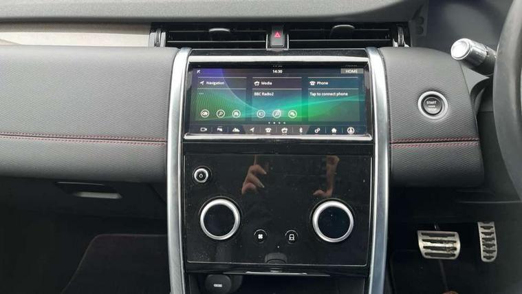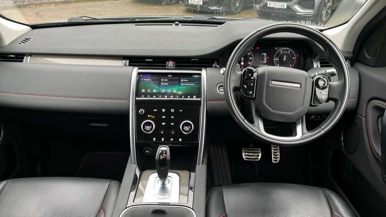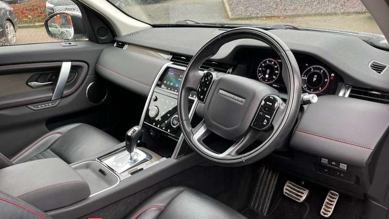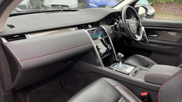 Android Auto, Apple CarPlay, Blind spot assist, Connected navigation pro, Driver condition monitor, InControl remote premium, Interactive driver display, Lane keep assist, PAS, Powered tailgate/boot lid, Service interval indicator, Traffic sign recognition with adaptive speed limiter, Trip computer, All terrain progress control, Coil suspension system, Diesel particulate filter, Terrain Response 2, Bluetooth connectivity including audio streaming, Digital Audio Broadcast radio-DAB, Steering wheel mounted audio controls, Automatic headlight levelling, Door mirror memory, Electric front/rear windows, Power fold, auto-dimming, heated door mirrors with approach lights, Rain sensing windscreen wipers, Rear wiper, Black gearshift paddles, Bright metal pedals, Front passenger isofix child seat attachment, Illuminated vanity mirrors, Rear headrests, Third row dual adjustable individual seats, Tilt/reach adjustable steering wheel, Online pack - Discovery sport, 3 point seatbelts on all seats, ABS, Brake hold function, Collision mitigation braking system, Cornering brake control (CBC), Driver/Front Passenger airbags, Drivers knee airbag, Electronic brake force distribution, Electronic parking brake, ESP + traction control, Hill descent control, Hill launch assist, Pedestrian airbag system, Roll stability control, Side and curtain airbags for front and 2nd row seats, Tyre pressure monitoring system, Battery Back Up System (BBUS) with tilt sensor, Intrusion sensor, Locking wheel nuts, Centre stack rails in noble chrome,