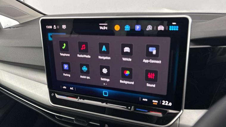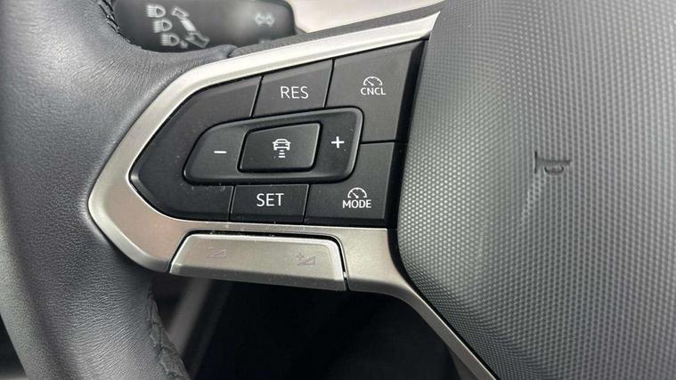Activated carbon canister, Adaptive cruise control (ACC) with speed limiter and front assist (reacting to vehicles pedestrians and cyclists), Advanced driver attention and drowsiness monitor, Driver alert system, Dynamic road sign display, E-Sim card for online connectivity, eCall emergency call system, Multi-color Digital cockpit pro, selection of different info profile possible, Multifunction camera for distance control, Navigation system, Oncoming vehicle braking when turning including swerve support, Power assisted speed sensitive steering, Preparation for light assist system, Speedo, rev counter, electronic odometer, trip, service interval display, exterior temperature and fuel gauge, Voice assistant and voice enhancer with chat GPT, Warning signal and warning light for front and rear seatbelts not fastened, We connect plus preparation, We connect preparation, Wireless app connect, Petrol Particulate Filter, Start-stop system with battery regeneration (recuperation - energy recovery during braking), XDS electronic differential lock for improved traction and handling, 2 USB C ports in front, 2 USB charging sockets on the centre console in the rear charging capacity upto 45W, Comfort telephony + wireless charging, without wireless aerial connection, Digital radio reception (DAB), Diversity antenna for FM reception, Infotainment system with 12.9" display, 3rd brake light, Auto headlights, Automatic headlamp activation with Coming home and Leaving home feature, Body colour door handles, Body colour door mirrors, Chrome plated radiator grille inserts and light switch surrounds, Dynamic headlight range control, Exterior mirrors convex on the left and aspherical on the right, Front and rear electric windows, Heat insulating windshield made of laminated glass, LED daytime running lights, LED rear combination lights, Rear exhaust tailpipe, Rear fog light on one side and reversing lights on both sides, Rear side wing doors, Rear tinted glass 65% light absorbing from B pillar backwards, Rear windscreen washer and wiper with interval delay, Remote electrically foldable door mirrors, puddle lights and reverse activated passenger's door mirror, Standard bumpers, Welcome light with surround lighting, 12V socket in front centre console, 12V socket in luggage compartment, 3 rear head restraints, 3 seat bench in 2nd row, Front centre armrest, Front head restraints, Front passenger seat, ISOFIX anchors for child seats on outer rear bench seats and on front passanger seat compatible for i-Size, Leather gearshift handle, Luggage compartment lighting, Rear cupholder and loadthough, Soul black instrument panel, Split folding backrest with centre armrest and unsplit rear seat bench, Standard pedal cluster, Storm grey roof lining, Sun visors with illuminated vanity mirrors, 3 point height adj front seatbelts + pretensioners, 3 rear three point seatbelts, ABS, Autonomous emergency braking front assist with pedestrian and cyclist monitoring, Child locks on rear doors, Driver and front passenger airbag with front passenger airbag deactivation, Electronic parking brake with auto hold, ESC (Electronic Stability Control), Extended pedestrian protection measures, Rear disc brakes, Two tone horn, Tyre pressure monitoring system, Volkswagen roadside assistance, Anti theft wheel bolts, Preparation for alcohol interlock, Nature cross brushed decorative inserts for dashboard and front door panels,