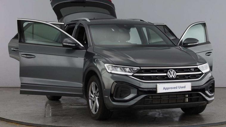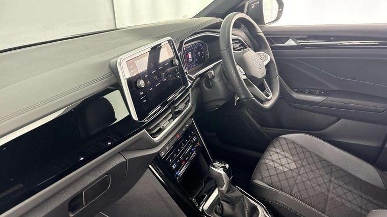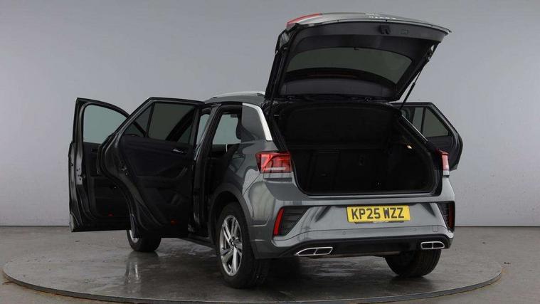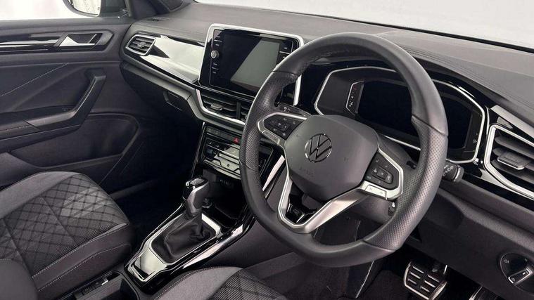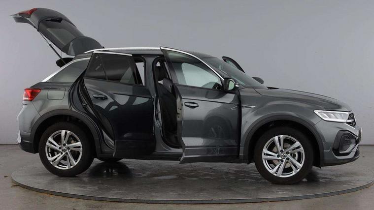 10.25" Digital cockpit pro, Advanced driver attention and drowsiness monitor, Emergency call service, Lane keeping system Lane Assist, Mobile phone interface, Modified key software - reduce switch off time for key status change to Long no motion, Online services, Park assist including front and rear parking sensors, Service interval indicator, Tailgate/trunk lid release from outside, Think blue trainer driver tips and journey analysis, Warning sound and light for front seatbelts unfastened, Wireless app connect, Battery regeneration during braking, Start/stop function with battery regeneration, DAB Digital radio, Diversity antenna for FM reception, Front and rear 6 speakers, Music playback - MP3, WMA and AAC files, Premium USB cable in choice of either Apple or Android smartphone compatibility, SD card slot, Simultaneous pairing of 2 compatible mobile devices, Title and cover art display, We Connect and We Connect Plus functionality, Auto dimming interior rear view mirror, Automatic hazard lights activation under emergency braking, Automatic headlight control with LED separate daytime running lights with coming/leaving home function, Body coloured exterior mirror housings and door handles, Electrically adjustable and heated door mirrors, Extended roof spoiler, Exterior mirrors aspherical on driver side, convex on front passenger side, External USB type C socket and charging sockets, Front windscreen wiper with intermittent wipe and 4 position delay, Heated rear window, LED 3rd brake light, LED rear combination lamps, LED rear number plate lights, Power windows with comfort operation and circuit breaker, Privacy glass for rear side windows and rear window, R-Line design body coloured bumpers, Rain sensor, Rear exhaust tailpipe, Rear fog light on one side and reversing lights on both sides, Rear side wing doors, Rear wash/wipe with intermittent wipe setting, Remote electrically foldable door mirrors, puddle lights and reverse activated passenger's door mirror, 12V power socket in centre console, 3 rear head restraints, 3 seat bench in 2nd row, 4 load lashing points in luggage compartment, Air care climatronic air conditoning system with active combination filter and 2-zone temperature control, Black roof lining, Chrome plated decorative trims, Chrome plated radiator grille inserts, air vent surrounds and light switch surrounds, Door and side trim panel with leatherette insert, Front + rear carpet mats, Front centre armrest, Front cupholders x 2, Front footwell illumination, Front reading light, Front scuff plates with R Line logo, Front seat back storage pockets, Glove compartment door with light, Instrument lighting, white adjustable panel illumination, Interior ambient lighting and surround lighting, Interior light delay, Isofix child seat preparation, Leather gearshift handle, Load-through provision with cup holder when folded down ('Unsplit rear seat bench, split folding backrest, with centre armrest), Luggage compartment lighting, Single front passenger seat, Stainless steel pedals, Storage compartment in left and right luggage area, Storage compartment in rear doors, Storage compartments in driver and front passenger doors, Sunvisors with illuminated vanity mirrors, Variable boot floor, height adjustable and removable, Driver assistance pack without proactive passenger protection - T-Roc, 3 point height adj front seatbelts + pretensioners, 3 point seatbelts in outer rear with ECE label, ABS, Child locks on rear doors, City emergency braking and pedestrian monitoring, Driver and front passenger airbag with front passenger airbag deactivation, Driver and front passenger safety-optimised head restraints, Drivers seatbelt reminder, Electronic parking brake, Electronic Stability Control (ESC) inc EDL (Electronic Differential Lock) and ASR (Traction Control), Front and rear passengers curtain airbag system including front side airbags, Hill start assist, Predictive pedestrian protection, Rear disc brakes, Two tone horn, Tyre pressure loss indicator, Volkswagen roadside assistance, Piano black decorative inserts in dashboard and front door trim panels, Trims for alloy wheels,