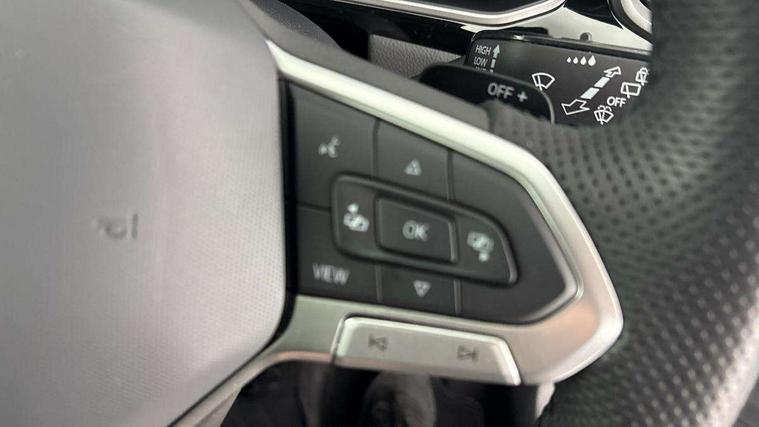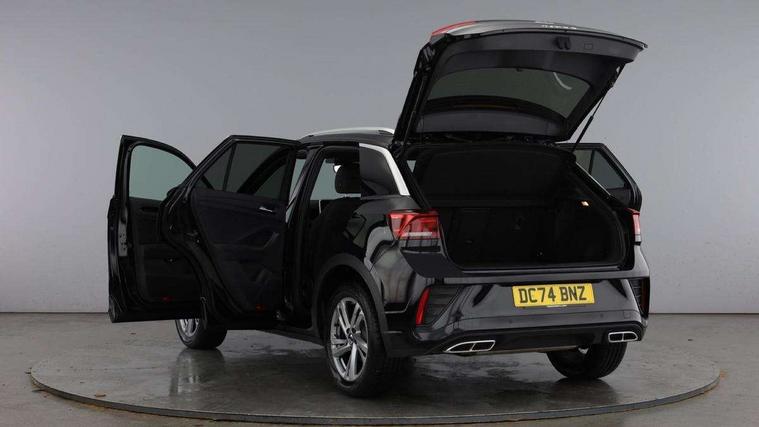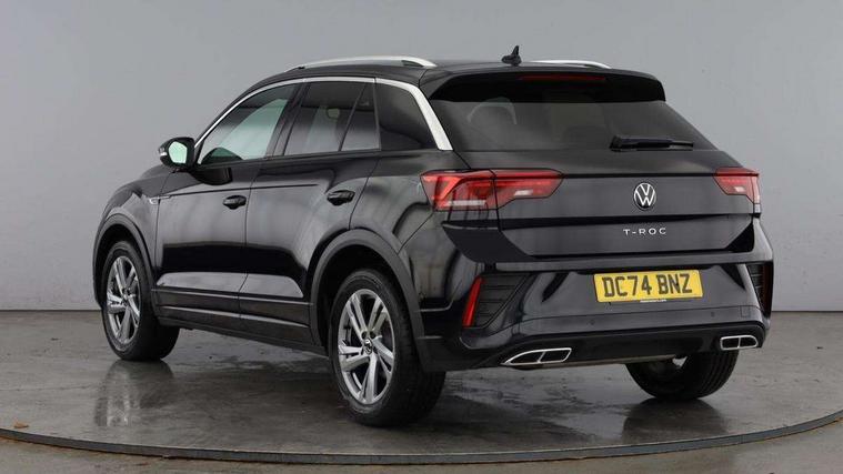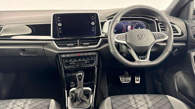 10.25" Digital cockpit pro, Advanced driver attention and drowsiness monitor, Emergency call service, Lane keeping system Lane Assist, Mobile phone interface, Modified key software - reduce switch off time for key status change to Long no motion, Online services, Park assist including front and rear parking sensors, Service interval indicator, Tailgate/trunk lid release from outside, Think blue trainer driver tips and journey analysis, Warning sound and light for front seatbelts unfastened, Wireless app connect, Battery regeneration during braking, Start/stop function with battery regeneration, DAB Digital radio, Diversity antenna for FM reception, Front and rear 6 speakers, Music playback - MP3, WMA and AAC files, Premium USB cable in choice of either Apple or Android smartphone compatibility, SD card slot, Simultaneous pairing of 2 compatible mobile devices, Title and cover art display, We Connect and We Connect Plus functionality, Auto dimming interior rear view mirror, Automatic hazard lights activation under emergency braking, Automatic headlight control with LED separate daytime running lights with coming/leaving home function, Body coloured exterior mirror housings and door handles, Electrically adjustable and heated door mirrors, Extended roof spoiler, Exterior mirrors aspherical on driver side, convex on front passenger side, External USB type C socket and charging sockets, Front windscreen wiper with intermittent wipe and 4 position delay, Heated rear window, LED 3rd brake light, LED rear combination lamps, LED rear number plate lights, Power windows with comfort operation and circuit breaker, Privacy glass for rear side windows and rear window, R-Line design body coloured bumpers, Rain sensor, Rear exhaust tailpipe, Rear fog light on one side and reversing lights on both sides, Rear side wing doors, Rear wash/wipe with intermittent wipe setting, Remote electrically foldable door mirrors, puddle lights and reverse activated passenger's door mirror, 12V power socket in centre console, 3 rear head restraints, 3 seat bench in 2nd row, 4 load lashing points in luggage compartment, Air care climatronic air conditoning system with active combination filter and 2-zone temperature control, Black roof lining, Chrome plated decorative trims, Chrome plated radiator grille inserts, air vent surrounds and light switch surrounds, Door and side trim panel with leatherette insert, Front + rear carpet mats, Front centre armrest, Front cupholders x 2, Front footwell illumination, Front reading light, Front scuff plates with R Line logo, Front seat back storage pockets, Glove compartment door with light, Instrument lighting, white adjustable panel illumination, Interior ambient lighting and surround lighting, Interior light delay, Isofix child seat preparation, Leather gearshift handle, Load-through provision with cup holder when folded down ('Unsplit rear seat bench, split folding backrest, with centre armrest), Luggage compartment lighting, Single front passenger seat, Stainless steel pedals, Storage compartment in left and right luggage area, Storage compartment in rear doors, Storage compartments in driver and front passenger doors, Sunvisors with illuminated vanity mirrors, Variable boot floor, height adjustable and removable, Driver assistance pack without proactive passenger protection - T-Roc, 3 point height adj front seatbelts + pretensioners, 3 point seatbelts in outer rear with ECE label, ABS, Child locks on rear doors, City emergency braking and pedestrian monitoring, Driver and front passenger airbag with front passenger airbag deactivation, Driver and front passenger safety-optimised head restraints, Drivers seatbelt reminder, Electronic parking brake, Electronic Stability Control (ESC) inc EDL (Electronic Differential Lock) and ASR (Traction Control), Front and rear passengers curtain airbag system including front side airbags, Hill start assist, Predictive pedestrian protection, Rear disc brakes, Two tone horn, Tyre pressure loss indicator, Volkswagen roadside assistance, Piano black decorative inserts in dashboard and front door trim panels, Trims for alloy wheels,