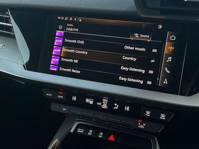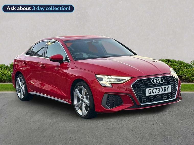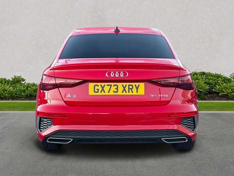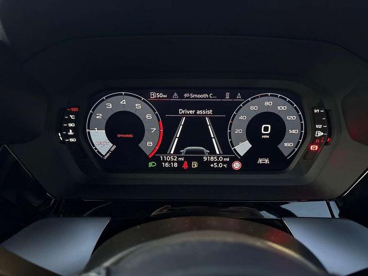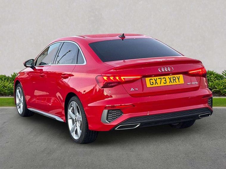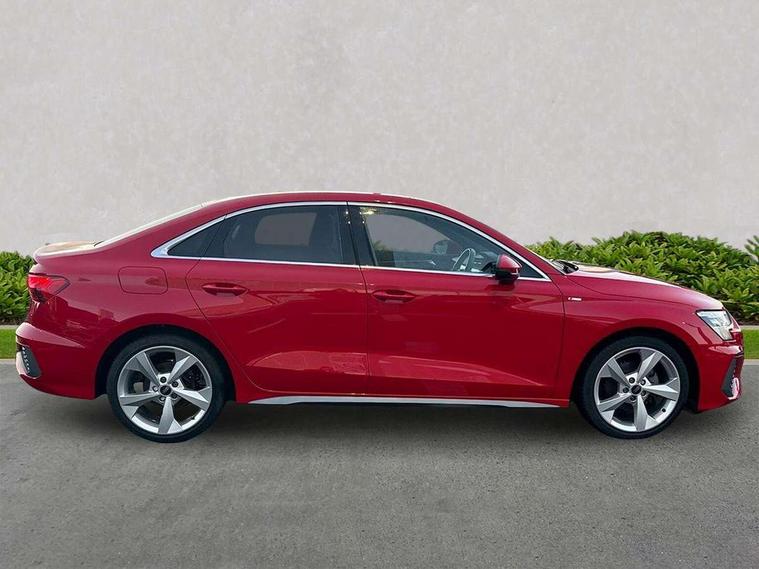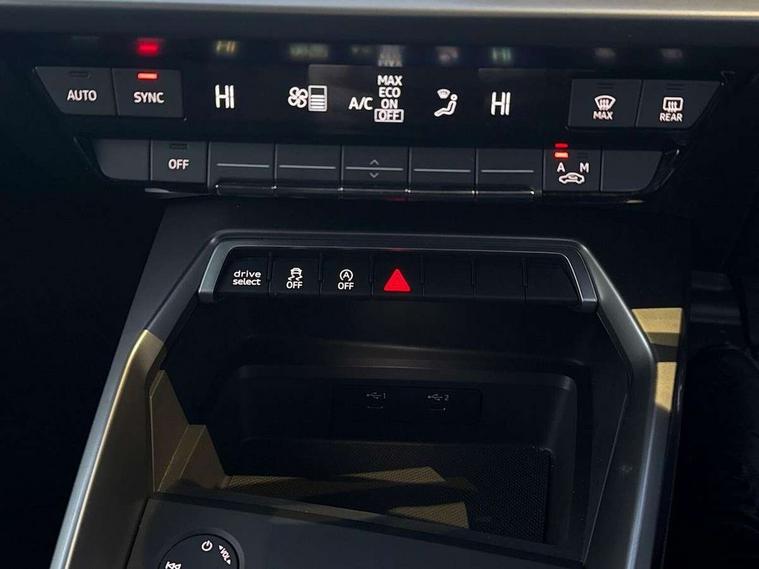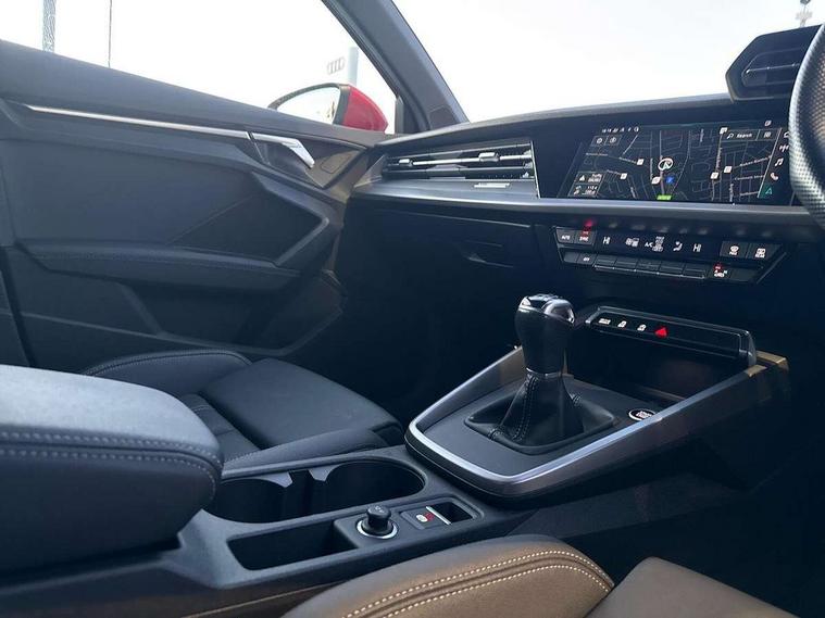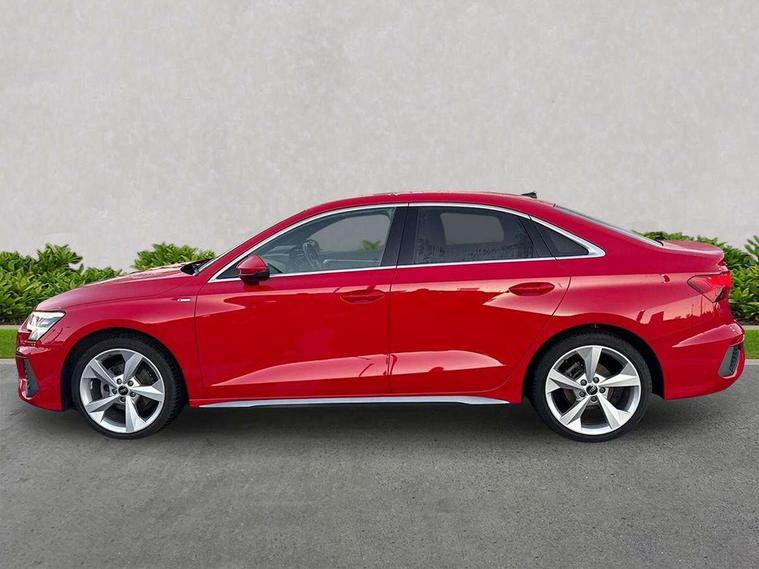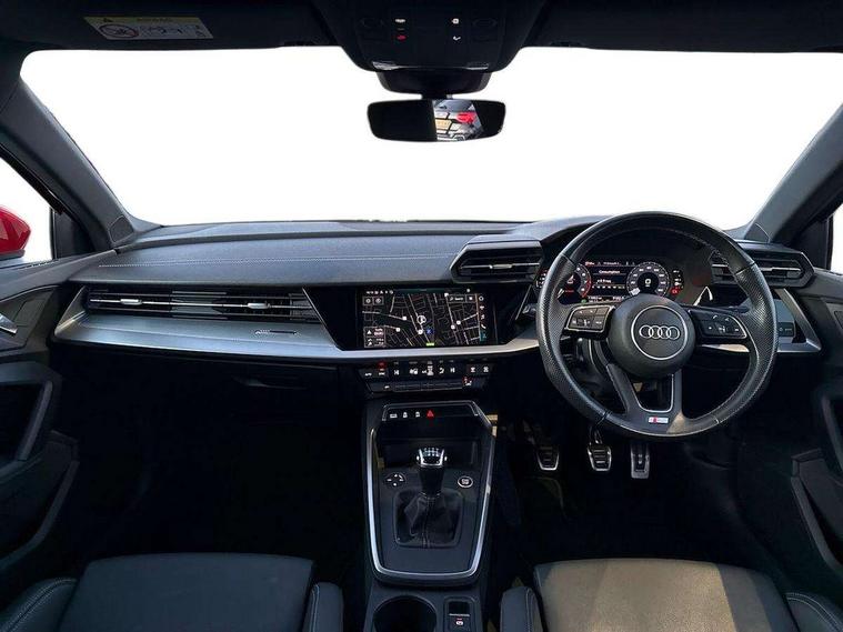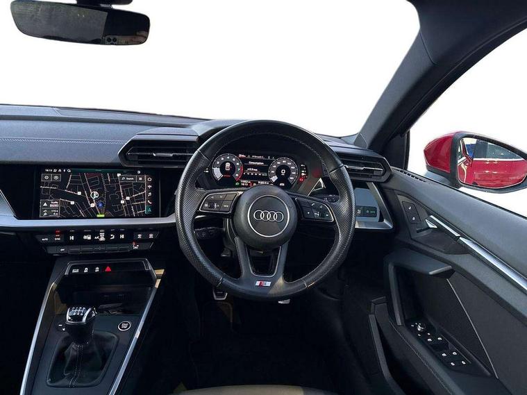 Audi drive select (Auto, Comfort, Dynamic and Individual), Audi smartphone interface, Audi Virtual Cockpit - 10.25" digital and colour instrument cluster, Automatic start/stop system with recuperation, Bluetooth interface, Camera based traffic sign recognition, Collision avoidance assistant, Cruise control + speed limiter, e-Call (emergency call), Electromechanical power speed sensitive steering, Lane departure warning system, MMI Navigation Plus with high resolution 10.1" colour touch screen display, Rear parking sensors, Service indicator, Trip computer, Voice control system with natural language interaction, Sports suspension, 2xUSB-C connection with data and charging functions, 6 passive loudspeakers, CD player, DAB Digital radio, 3rd brake light, Acoustic glass windscreen, Aluminium window trim, Auto dimming frameless rear view mirror, Body colour exterior mirrors, Electrically adjustable/heated/folding/auto dimming door mirrors with integrated LED indications + kerb view function for passenger side, Front electric windows, Illuminated door sills with aluminium inserts at the front with S logo, LED daytime running lights, LED headlights with LED rear lights and dynamic rear indicators, Light and rain sensors, Model and engine designation badges at rear, Privacy glass - dark tinted rear window, rear door and side windows, Rear boot, Rear electric windows, Rear side wing doors, S line bumpers, S roof spoiler, 12V socket and storage compartment in front centre console, 3 seat bench in 2nd row, 3 spoke leather multifunction steering wheel, 4 way electrically adjustable lumbar support for driver and front passenger, 60/40 split folding rear seat bench, Black cloth headlining, Dual zone electronic climate control, Front and rear centre armrest in artificial leather, Front and rear headrests, Front/rear floor mats, Height and reach adjustable steering wheel, Interior lighting - glove compartment light and right hand side, Luggage compartment floor covering, Manual boot compartment lid, Manually adjustable front seats, Seat side bolsters, Single front passenger seat, Stainless steel pedals and front footrest in black, Twin leather upholstery with front sports seats S embossed logo, Aluminium interior elements pack - A3, LED interior lighting pack - A3 Saloon, S line styling pack - A3 Saloon, 3x3 point rear seat belts, Driver and front passenger airbag with passenger airbag deactivation, Electronic Stabilisation Control (ESC) including ABS, ASR and EDL, First aid kit with warning triangle and 2 safety vests, Front side airbags with head airbags and interaction airbag, Pre-sense front with pedestrian and cyclist detection, Seatbelt monitoring, Tyre pressure loss indicator, Anti theft alarm, Anti-theft wheel bolts, Electronically operated child locks, Immobiliser, Remote control central locking, Aluminium air vent surrounds, Dark spectrum aluminium inlays, accent surfaces in the dashboard and centre console in platinum grey silk effect paint finish,
