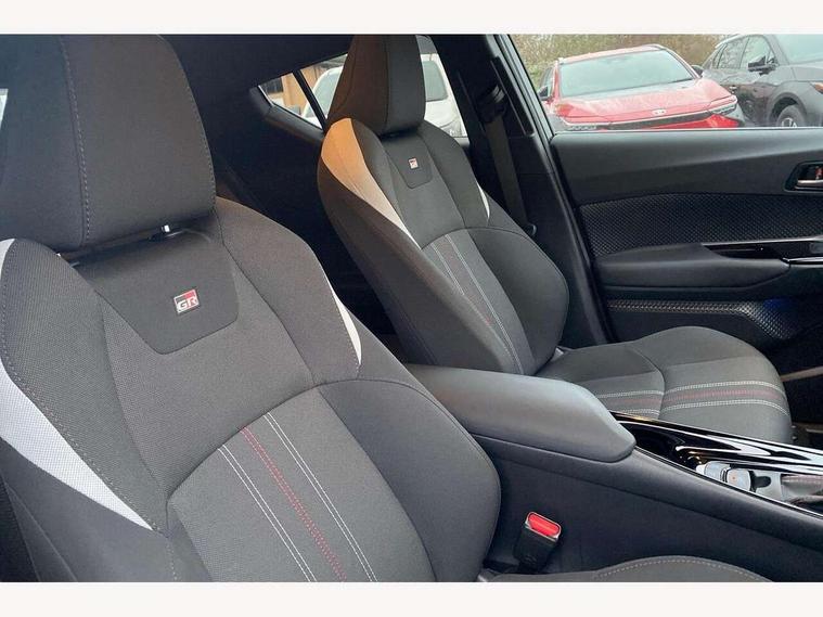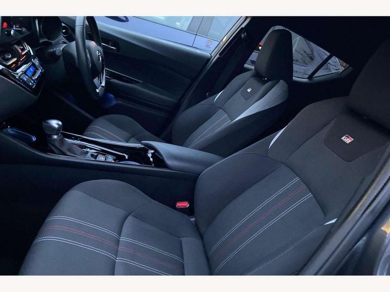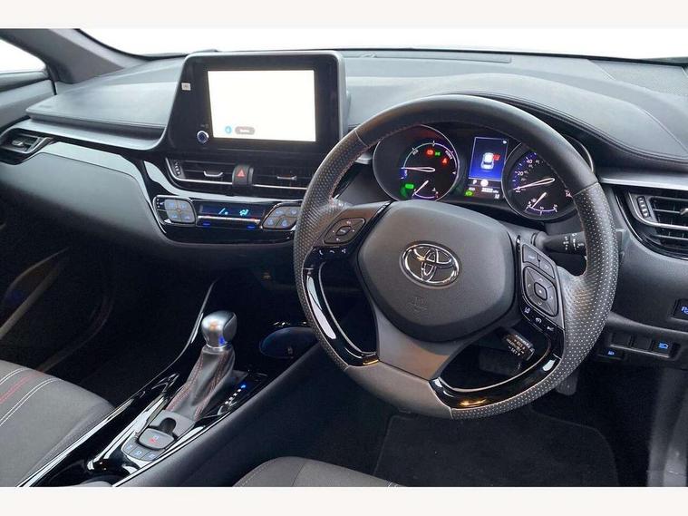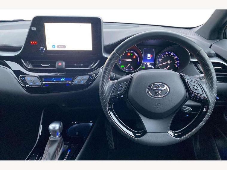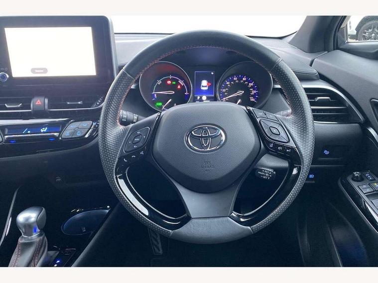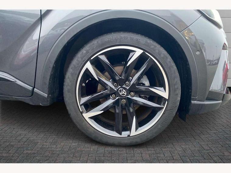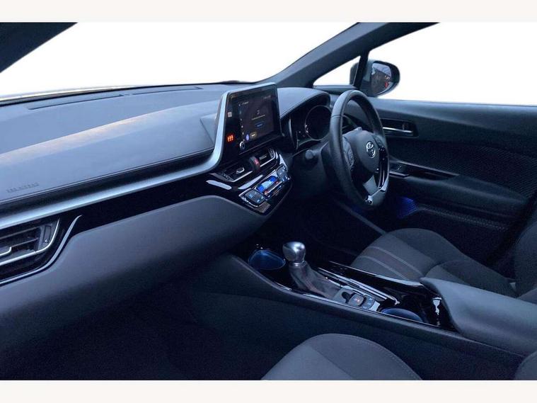 4.2" coloured TFT screen for multi-information display, Adaptive cruise control, Bluetooth connectivity, E-call, Electric power steering, Hybrid system indicator, Lane departure alert with steering control, Lane trace assist, Push button tailgate release, Remote boot door release in cabin, Remote boot door release in key, Reversing camera, Road sign assist - RSA, Simple Intelligent parking assist, Smart voice assist, Touch 2 Go navigation system, Trip computer, Voice recognition, Wireless smartphone integration, Vehicle Stability Control (VSC), 6 speakers, AM/FM radio, DAB Radio (Digital Audio Broadcasting), Toyota touch 2 multimedia system with 8" display, USB connector, Wi-fi connectivity, Adaptive front light system, Adaptive LED Headlights, Anti-jam protection on power windows, Auto high beam, Auto up and down function on all power windows, Automatic headlight levelling, Automatic headlights, Automatic headlights cut-off, Black and body coloured rear bumper, Black upper front grille, Body colour door handles, Body colour door mirrors, Body coloured front bumper, Boot door release with push button, Chrome front lower bumper, Electric heated door mirrors, Follow me home headlights, Front and rear power windows, Front spoiler lip in black, Headlight cut off reminder, Honeycomb lower front grille, LED daytime running lights, LED fog lights, LED front light guide, LED High mounted stop light, LED rear brake lights, LED rear combination lights, Noise reduction layer on front windows and windscreen, Power adjustable door mirrors, Privacy glass, Rain sensor, Rear sequential indicators, Rear side wing doors, Rear spoiler, Rear tailgate, Rear window defogger, Rear window wiper, Shark fin antenna, UV-filter on driver and passenger windows, UV-filter on rear windows, 12v power outlet - front, 3 rear headrests, 3 seat bench in 2nd row, 3 spoke perforated leather steering wheel, 60/40 split folding rear seat, Adjustable rear headrests, Adjustable speed limiter switch on steering wheel, Assist grips front and centre pillar, Audio and telephone switches on steering wheel, Black front door assist grips, Blue ambient lighting on front cup holders, Blue ambient lighting on front doors, Boot light, Chrome interior door handles, Cloth upholstery, Driver and front passenger personal light, Driver and front passenger Whiplash Injury Lessening seats, Driver and passenger seatback pockets, Dual zone automatic air conditioning, Floor mats, Front cupholders, Front head restraints, Front sports seats, Glovebox with internal light, Hard tonneau cover, Heated driver and front passenger seats, Hooks for luggage holding net, Humidifying Nanoe air purifier, Illuminated entry system, Isofix attachments on outer rear seats, Leather gearshift, Light on driver sun visor, Light on passenger sun visor, Manual telescopic steering wheel, Manual tilt steering wheel, Manually height adjustable driver seat, Manually height adjustable front passenger seat, Manually reclining driver seat, Manually reclining front passenger seat, Manually sliding driver seat, Manually sliding front passenger seat, Microphone on front personal light, Mirror on driver sun visor, Mirror on passenger sun visor, Multimedia switches on steering wheel, Pollen filter, Power adjustable lumbar support on driver seat, Shopping bag hooks, Single front passenger seat, Slow opening on lower glovebox, Voice recognition switch on steering wheel, Tech with parking sensor pack - C-HR, 16 Disk front wheel brake, 3x3 point rear seatbelts, ABS+EBD+Brake assist, Electronic parking brake, Front and rear seatbelt reminder, Front passenger airbag on/off switch, Hill start assist control (HAC), Pre collision system with pedestrian detection, Pre-tensioners and force limiters, Rear door child safety locks, SRS Airbags - Driver + Front passenger, front side, front and rear curtain and driver's knee airbags, Toyota safety sense, Tyre pressure monitoring system, Tyre pressure warning system, Acoustic vehicle alert system (AVAS), Glass-breaking alarm sensors, Immobiliser, Intrusion alarm, Intrusion sensor, Motion sensor alarm, Power door locks, Power passenger window lock, Remote central locking, Black lower dashboard, Black upper dashboard, Piano black console, Silver deco line on upper dashboard, 19" Black machined alloy wheels, Tyre repair kit,
