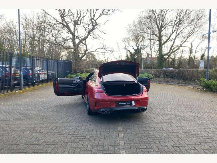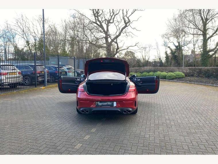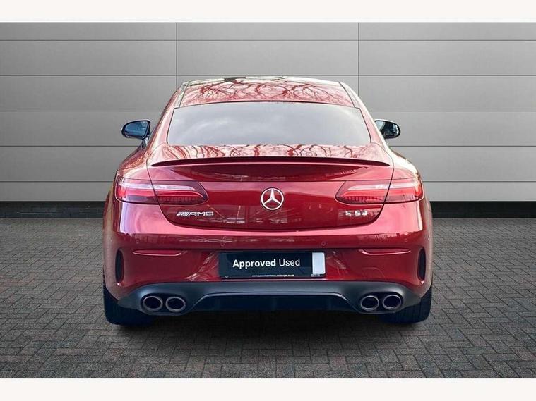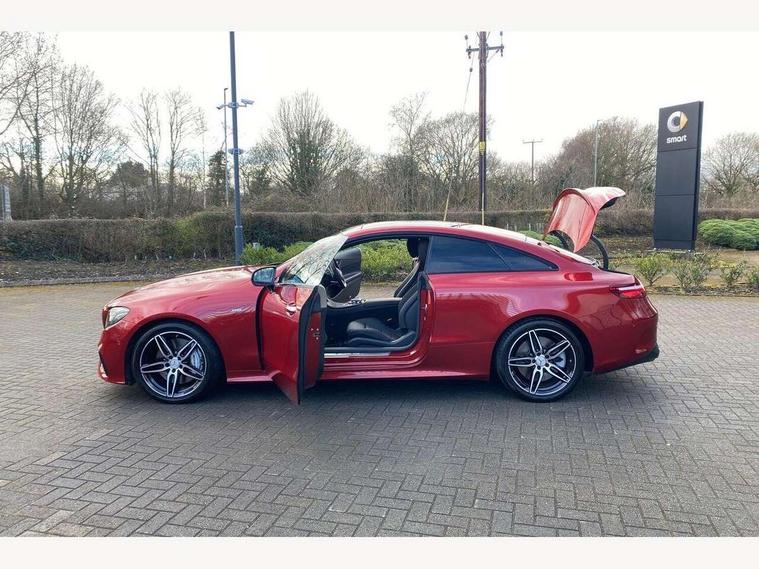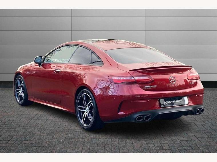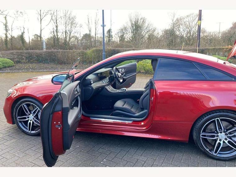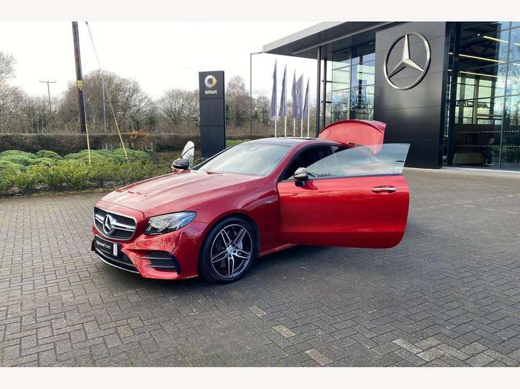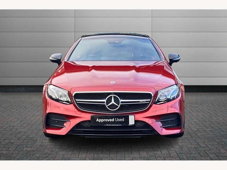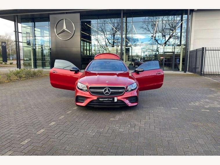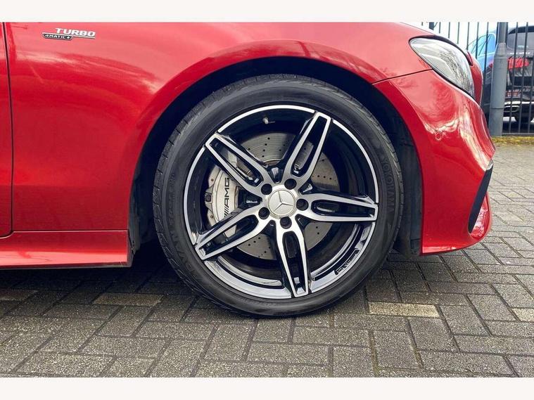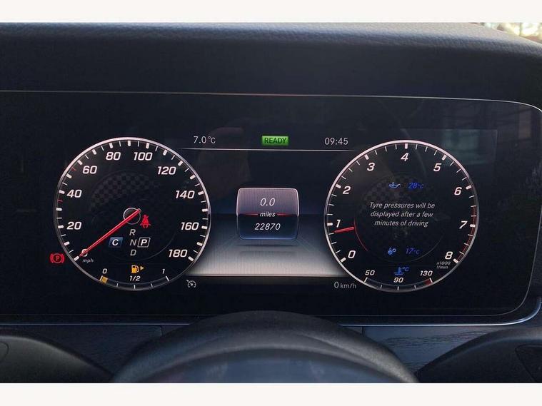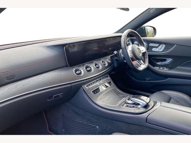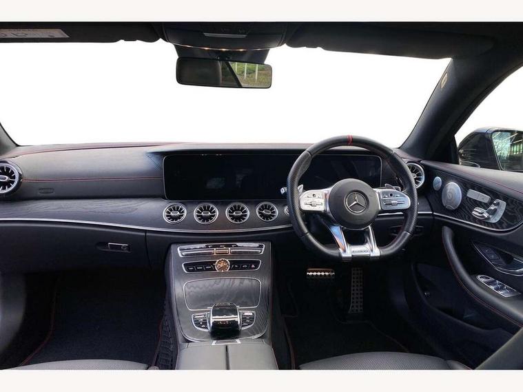 360 degree parking camera, Active parking assist including front and rear parking sensors, AMG DYNAMIC SELECT with a choice of driving modes (ECO, Comfort, sport, sport+ and Individual), Analogue clock, Attention assist, Blind spot assist, Bluetooth interface for hands free telephone, Brake wear warning display, Cockpit display 12.3" widescreen digital instrument cluster, Collision prevention assist plus, COMAND online HDD navigation with Radio/Media interface, linguatronic + smartphone integration/Apple CarPlay/Android Auto and 12.3" Cockpit display, Direct steering, ECO start/stop function, Engine start/stop button, Instrument cluster with AMG menu including RACETIMER and AMG start-up display, Mercedes connect me, Multi function trip computer, Outside temperature display, Remote boot release, Service indicator (ASSYST), Status display for rear seat belts in instrument cluster, Touchpad with control wheel, Traffic sign assist, Wireless charging, 66 litre fuel tank, AMG ride control+ sports suspension based on Air body control air suspension with Adaptive damping system, EQ Boost starter alternator, 2 USB ports in centre console, DAB Digital radio, Smartphone integration via Android Auto/Apple CarPlay, Media Interface, USB and Bluetooth interface and touchpad with control wheel, Adaptive brake lights, AMG bodystyling front and rear aprons, side skirts, AMG boot lid spoiler in body colour, AMG front, rear apron and side skirts, Badging BITURBO 4MATIC+ lettering on front wings, Body colour door handles, Body coloured bumpers, Chrome pins diamond radiator grille with integrated stars, Electric windows with one touch opening/closing and obstruction sensors, Exterior mirrors heated and electronically adjustable, Illuminated front door sill panels with "AMG" lettering, Magic Vision Control heated windscreen wiper system, Multibeam LED Intelligent Light System with Adaptive Highbeam Assist, Pre-installation for roof rail systems, Privacy glass Includes rear side windows and rear windscreen, Rain sensing windscreen wipers, Rear LED lights, Top surround of side windows in polished aluminium, Visible two twin pipe exhaust system integrated into the bumper, 3-spoke flat bottom steering wheel in silver chrome trim with "AMG" lettering, aluminium gearshift paddles, 12 o'clock mark and Touch Control buttons, 4 way adjustable front head restraints and 2 way rear head restraints, 40:20:40 split folding rear seats, Aluminium gear shift paddles, AMG sports seats, Artico man-made leather upper dashboard and beltlines with contrast stitching, Automatic child seat recognition sensor, Automatic two zone climate control, Bag hook in luggage compartment, Belt feeder driver and front passenger seat belt automatically positioned within easier reach, Black roof lining, Central stowage compartment with USB socket for use with Android Auto and Apple CarPlay, Centre armrest and door handle illumination, Chrome door pins, Easy entry seats, Electric height/reach adjustable steering column, Floor mats with AMG lettering, Front and rear door pockets, Front centre armrest with stowage compartment, Front footwell lights, Glasses compartment in overhead control panel, Glove compartment - lockable, air conditioned and illuminated, Heated front seats, Interior lighting - 64 colour Ambient lighting, Interior rear light/integral reading lights, Isofix rear child seat fastenings, Multi function steering wheel, Nappa leather upholstery, Rear centre armrest with 2 cupholders + storage, Seat occupancy sensor for front passenger seat, Sports pedals in brushed stainless steel with black rubber studs, Steering column electrically adjustable for height and reach, Steering wheel gearshift paddles, Steering wheel touch control buttons for audio and onboard settings, Storage net in luggage compartment, Sunvisors with illuminated vanity mirrors, Twin front cupholders, Memory pack - E Class, Mirror pack - E Class, Stowage pack - E Class, Active bonnet, Active brake assist, Adaptive brake system, Adaptive driver and front passenger airbags, Anti-lock braking system (ABS), Crash sensor (auto door unlocking), Drivers knee airbag, Electric parking brake, Electronic Stability Programme, Front and rear window airbags, Front seatbelt pretensioners, Front side airbags, Head airbags, Hill hold function, Perforated front brake discs and anodised silver brake calipers with "AMG" lettering, Red seat belts, Seatbelt warning, Three point rear seat belts, Tyre pressure monitoring system, Warning triangle and first aid kit, Alarm system/interior protection/immobiliser, Central locking with interior switch, automatic locking and crash sensor with emergency opening function, Chrome surround in electric key, Keyless entry go starting function, Black open pore ash wood, Open pore black ash wood centre console, TIREFIT with tyre inflation compressor,