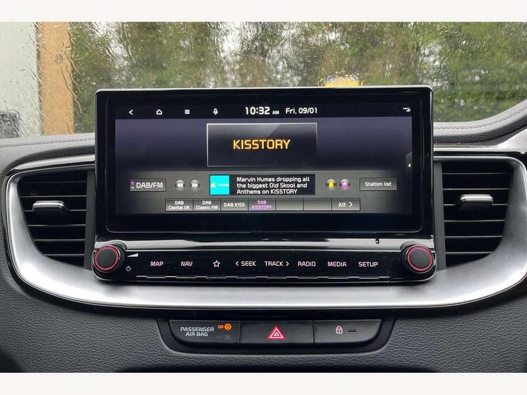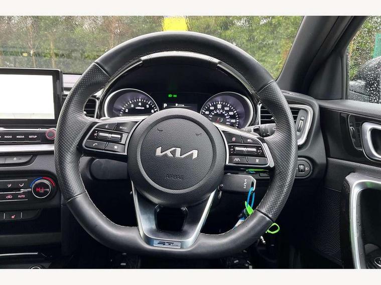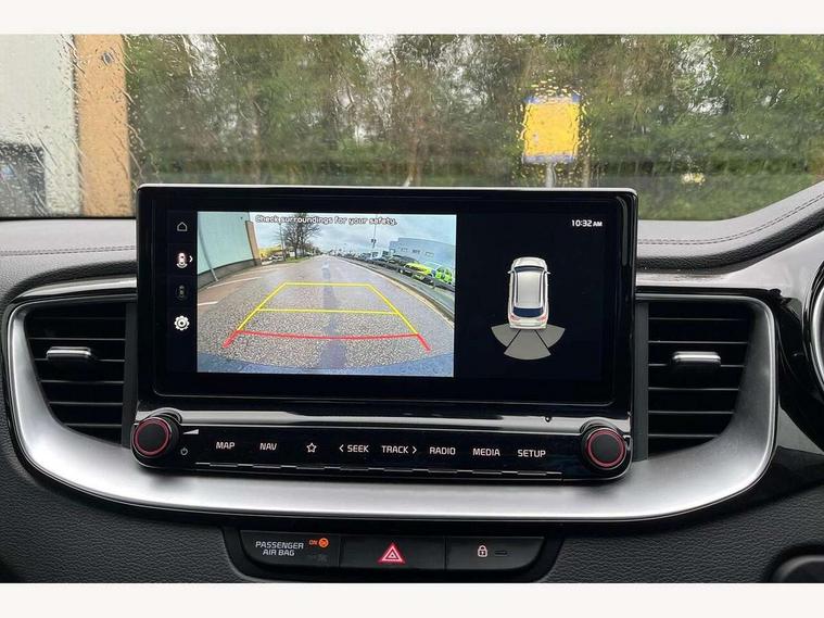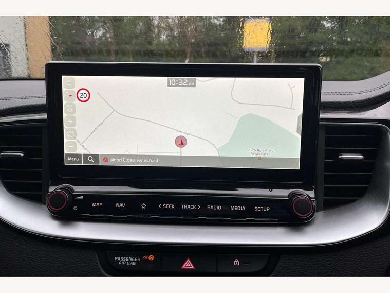 10.25" touchscreen satellite navigation, 4.2" supervision colour cluster display, Apple car play/Android Auto with voice control, Bluetooth with Voice Recognition & Music Streaming, Drive mode select (Normal and Sport), Driver attention warning + (DAW) with leading vehicle departure warning, Emergency call service, Emergency stop signalling system, Forward Collision-Avoidance Assist (FCA) - City/Pedestrian/Cyclist, Kia connect UVO, Lane Following Assist (LFA), Lane keep assist, Manual speed limit assist, Motor driven power steering, Rear parking sensor, Reversing camera system with dynamic guidelines (Integrated into centre fascia screen), Smart cruise control with stop/go functionality, Trip computer, Intelligent Stop and Go, 6 speaker audio system, DAB Radio with MP3, Illuminated USB ports, Steering wheel mounted controls, USB Fast Charger in Front Centre Console, USB type A port, All-round Electric Windows with Front Auto Up & Down Function, Auto dimming rear view mirror, Automatic defog system, Automatic headlights control, Body colour bumpers, Body colour exterior door handles, Body coloured and dark chrome rear skid plate, Body coloured side sill mouldings, Dark chrome window surround, Electric adjustable/heated/folding door mirrors with LED Indicators, Heated rear window with timer, High beam assist, High gloss black and dark chrome radiator grille, High gloss black door mirrors, High Gloss Black rear spoiler - roof, LED daytime running lights, LED front fog lights, LED Headlights, LED High-mounted Brake Light, LED honeycomb rear light, LED rear combination lights, LED rear fog light, Privacy glass (rear side windows and tailgate), Rain sensing front wipers, Rear side wing doors, Rear wash/wipe, Satin chrome dual exhaust trim, Tinted glass, Wide view drivers door mirror, Windscreen Washer Level Warning, 1 x Front 12V socket, 12V power socket in luggage compartment, 3 seat bench in 2nd row, 3 x passenger assist grips, 60/40 split folding rear seat, All-round height adjustable headrests, Aluminium pedals, Black headlining, Centre console storage box/armrest, Cloth/faux leather upholstery, Cupholders in centre console, Cupholders in rear armrest, Dash illumination dimmer switch, Door courtesy lamps, Driver & Front Passenger Sunvisors with Vanity Mirror Illumination & Ticket Holder, Driver + front passenger electric lumbar support, Driver's seat height adjuster, Dual Height Luggage Area Floor, Dual zone automatic air conditioning, Faux leather door centre trim, Front and rear door storage, Front cabin map light with sunglasses case, Front Passenger Seat Height Adjuster, Front seat back pockets, Heated front seats, Heated steering wheel, Interior door lock/unlock function, ISOFIX Child seat top tethers and anchor fixings, Leather D-Cut steering wheel, Leather handbrake, Luggage area light, Luggage area parcel shelf, Luggage hooks, Rear centre armrest, Rear coat hooks, Single front passenger seat, Tilt/telescopic adjustable steering wheel, All round 3-point seatbelts, Anti-lock braking system (ABS), Brake assist system, Dual front side airbags, Dual horn, EBD - Electronic brakeforce distribution, Electronic parking brake, Electronic stability control (ESC) and vehicle stability management (VSM), Front passenger airbag cut-off switch, Height adjustable front seatbelts, Hill start assist control (HAC), Impact sensing auto door unlocking, Rear door child safety locks, Seatbelt reminder warning, Twin curtain airbags, Twin front airbags, Tyre pressure monitoring system, Alarm system, Engine Immobiliser & Deadlocks, Locking wheel nuts, Remote central door locking with fold away key, Speed sensitive auto door locking, Satin Chrome Fascia Trim, 17" GT-Line alloy wheels, Tyre mobility kit,