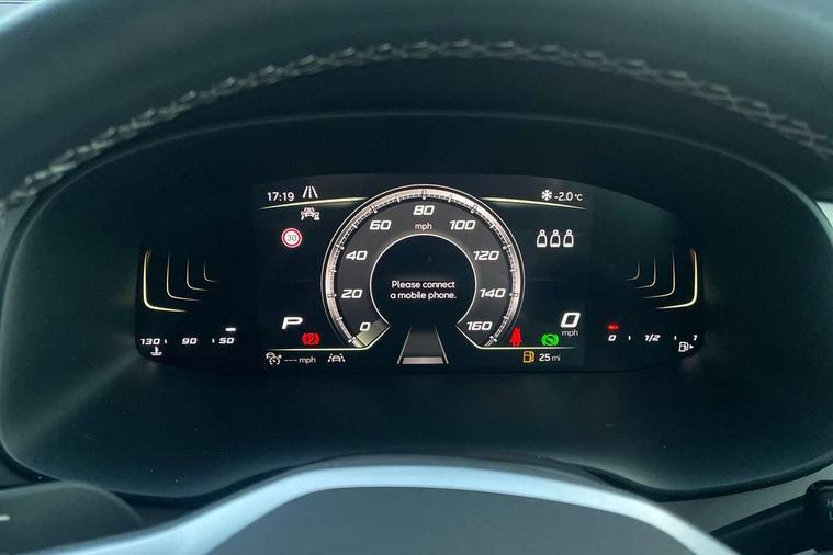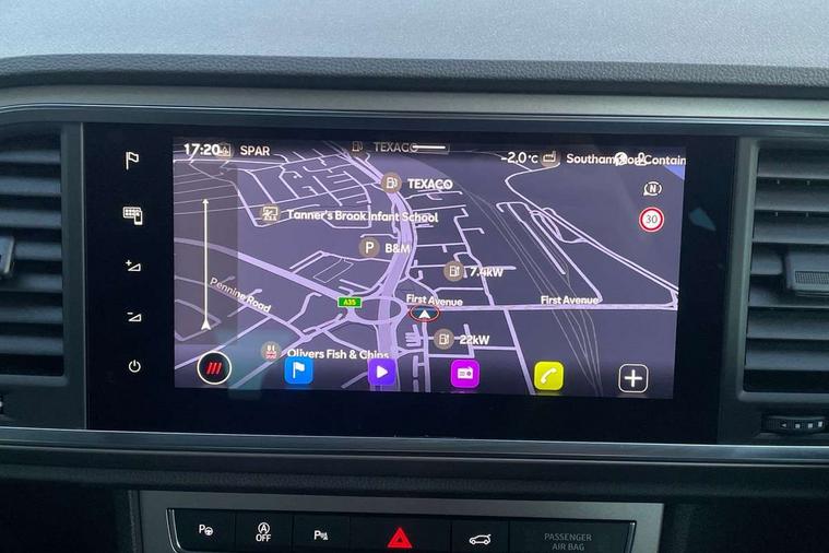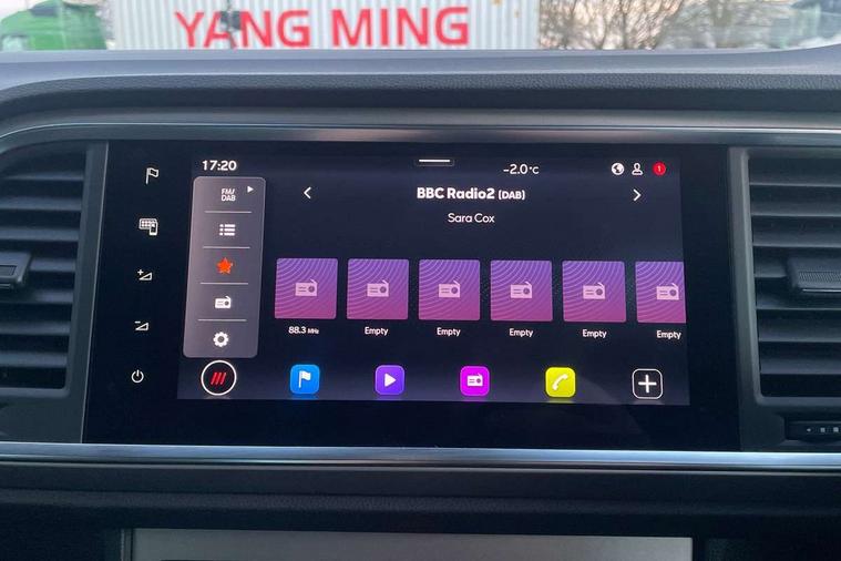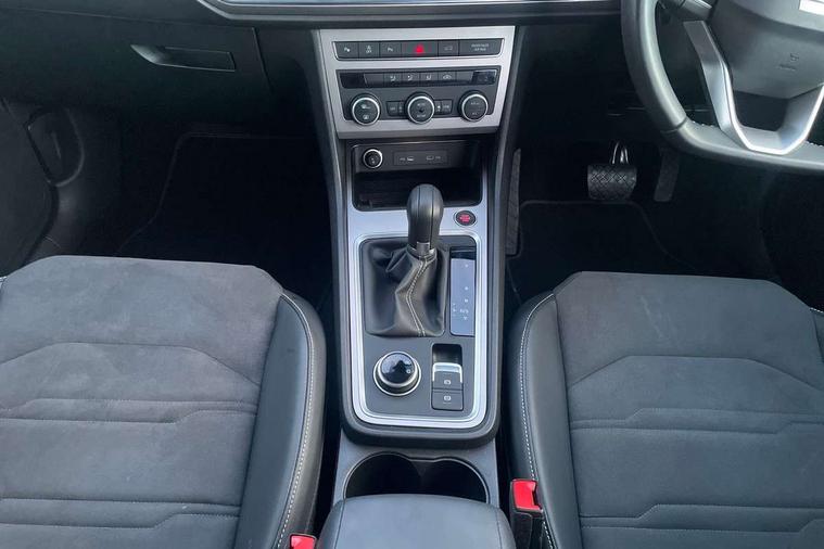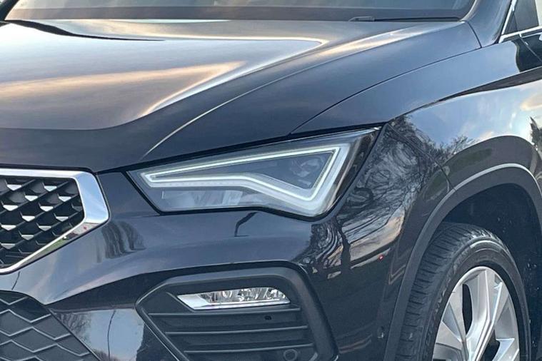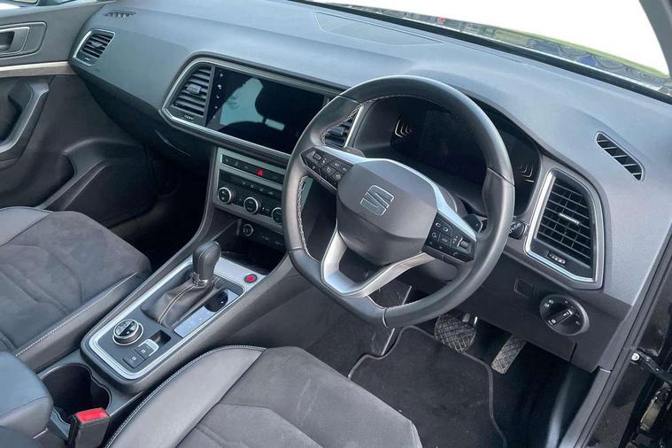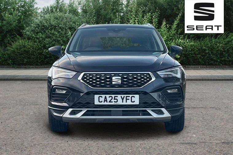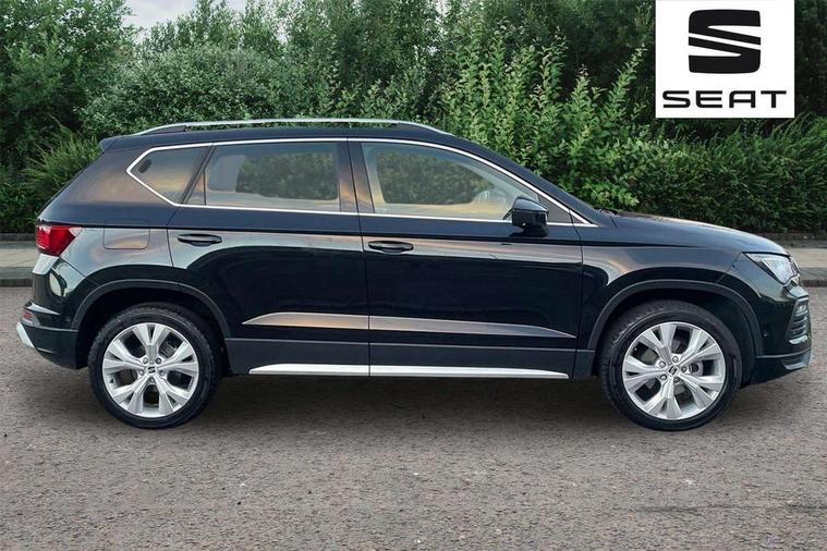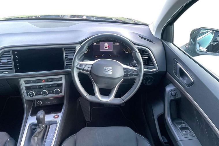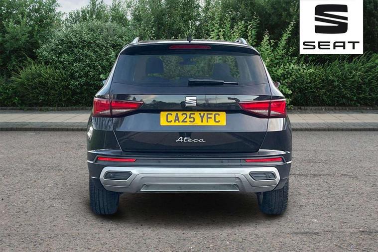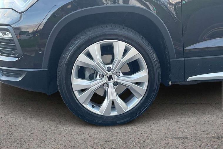 8" Digital cockpit, Colour multi-function on board computer display, E-call, Electric tailgate, Outside temperature gauge, Progressive power assisted steering, Rear view camera, SEAT drive profile with driving experience button - Normal, Sport, Eco and Individual mode, gearshift, steering and throttle response, Self parking functionality (includes front and rear parking sensors), Start/stop system, Trip computer, wired and wireless full link smartphone integration, Wireless phone charger, Steering wheel mounted audio/phone controls, Black wheel arch surrounds, Body colour bumpers, Chrome front grille frame, Chrome roof rails, Chrome side window trim, Dark tinted rear windows, Daytime running lights, Door mirrors with welcome light silhouette, Dynamic headlight range control with self adjusting whilst driving, Electric adjustable/heated/folding door mirrors, Front and rear electric windows, Front grille hot stamping, Full LED headlamps with lens and LED front fog lamps with cornering function, Heat reflecting windscreen, Illuminated aluminium front door sill, LED 3rd brake light, LED rear tail lights with dynamic indicators, Rear exhaust tailpipe, Rear fog lights, Rear side wing doors, Rear wash/wipe, Reflex silver side mouldings, Variable front intermittent wipers, 12V socket in front, 3 seat bench in 2nd row, 60/40 split folding rear seat, Dinamica upholstery with front comfort seats, Drawer under right front seat, Dual zone climate control, Front and rear head restraints, Front centre armrest, Front seat back storage pockets, Height adjustable driver and passenger seat with lumbar adjustment, ISOFIX points in outer rear seats with top tether anchorage points, Leather sports steering wheel and gear knob, Rear armrest and easy back seat release mechanism from boot, Single front passenger seat, Steering wheel mounted gearshift paddles, Convenience pack - Ateca, Interior lighting pack - Ateca, Navigation system pack with DAB - Ateca, Safety and driving pack (M) - Ateca, Safety and driving pack with attention and drowsiness assist - Ateca, 3x3 point rear seatbelts, ABS, Traction control system (TCS), Electronic stability control (ESC) and Electronic differential lock system (XDS), Airbags - Driver and front passenger airbag with deactivation, front side, two curtain and driver's knee airbags, Electric parking brake with auto hold function, Front and rear seatbelt reminder, Hill hold control, Manual rear child locks, Single tone horn, Tiredness recognition system, Tyre pressure monitoring system, Alarm, Keyless entry, Locking wheel bolts, Remote central locking, Chrome interior detailing, 18" Brillaint silver alloy wheels,