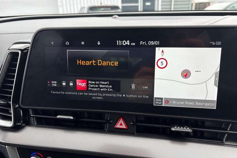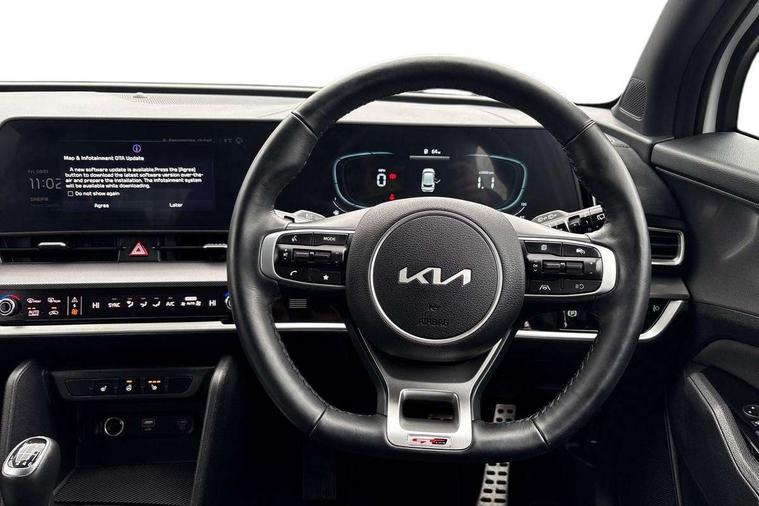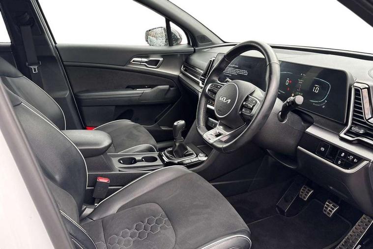 12.3" Touchscreen navigation system, 2 rear USB-C ports, 4.2" driver display screen, Apple car play/Android Auto, Cruise control + speed limiter, Drive mode selector, Driver attention warning, E-call, Emergency stop signalling system, Forward collision avoidance assist (FCA) - city/pedestrian/cyclist/junction covering, Front and rear parking sensors, Intelligent speed limit assist, Kia Connect (UVO), Lane Following Assist (LFA), Lane keep assist, Low washer fluid warning, Motor driven power steering, Rear view monitor, Reversing camera system integrated into centre fascia screen, Tailgate, Trip computer, Windscreen washer level indicator, 1x USB-C port in front, 6 speaker audio system, Bluetooth audio streaming, DAB Radio with MP3, Steering wheel mounted audio controls, USB C type charging ports on centre console, USB port for connection of a media device, All round electric windows with drivers and front passenger auto up/down function, Auto dimming rear view mirror, Automatic headlight control system, Automatic window defogger, Black and body coloured bumpers, Body colour exterior door handles, Body colour radiator upper garnish and door garnish, Electrically adjustable/heated/folding door mirrors with LED indicators, Front and rear chrome skid plates, Gloss black door mirrors, Gloss black radiator grille, Gloss black side sill and wheel arch body mouldings, Glossy black roof rack, GT-Line exterior styling, Heated rear window, High beam assist, Interior electrochromic mirror, LED daytime running lights, LED front fog lamps, LED headlamps (low and high beam - MFR type), LED High mounted stop light, LED rear combination lamp, Rain sensing wipers with aero blades, Rear fog lamp, Rear privacy glass, Rear side wing doors, Rear spoiler, Rear wiper, Satin finished beltline, Silver window surround, Tinted rear glass, Trailer stability assist, 12V power socket in front centre fascia and luggage compartment, 2nd row personal lamps, 3 seat bench in 2nd row, 3 x passenger assist grips, 40/20/40 split folding rear seat, All-round height adjustable headrests, Alloy pedals, Automatic air conditioning, Black headlining, Centre console storage box, Cupholders in rear armrest, Door courtesy lamps, Drink holder at centre armrest, Driver and front passenger side sunvisors with illuminated vanity mirrors, Driver's seat manual height adjust, Drivers seat power lumbar support, Front and rear door storage, Front cabin, rear & luggage compartment lights, Front passenger's seat manual height adjustment, Front seat and rear pockets, Gear shift indicator, Glovebox illumination, GT-Line Interior Styling, Heated front seats, Heated steering wheel, ISOFIX Child seat top tethers and anchor fixings outer rear seats, Leather steering wheel, Luggage area load cover, Luggage area parcel shelf, Luggage board, Luggage compartment under floor storage, Luggage net with hooks, Manual adjust steering wheel, Metal paint interior door handles, Overhead console lamp, Rear air conditioning, Rear cabin light, Rear coat hooks, Single front passenger seat, Suede leather upholstery, Ventilation ducts to rear compartment, Active front headrests, All round 3-point seatbelts, Anti-lock braking system (ABS), Dual front side airbags, Dual horn, Dynamic brake control, Electronic parking brake with auto hold function, Electronic stability control with downhill brake control, Front passenger airbag cut-off switch, Front seatbelt pretensioners + load limiters, Height adjustable front seatbelts, Hill start assist control (HAC), Impact sensing auto door unlocking, Multi collision brake assist, Rear airbags, Rear door child safety locks, Rear seat alert system, Seatbelt reminder warning, Traction control, Twin curtain airbags, Twin front airbags, Tyre pressure monitoring system, Vehicle stability management, Customisable automatic door locking, Customisable automatic door unlocking, Door deadlocks, Engine Start/Stop Button with Smart Entry System, Locking wheel nuts, Smart key with motion sensor, Speed sensitive auto door locking, Thatcham category 2 security alarm and immobiliser, Visible vehicle identification number, Aluminium pattern finish centre fascia and door garnish, 19" GT-Line alloy wheels, Tyre mobility kit,